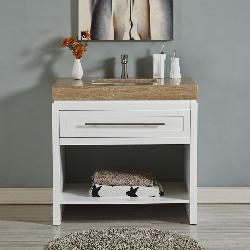 36" Single Sink Travertine Stone Top Cabinet with Ceramic Sink