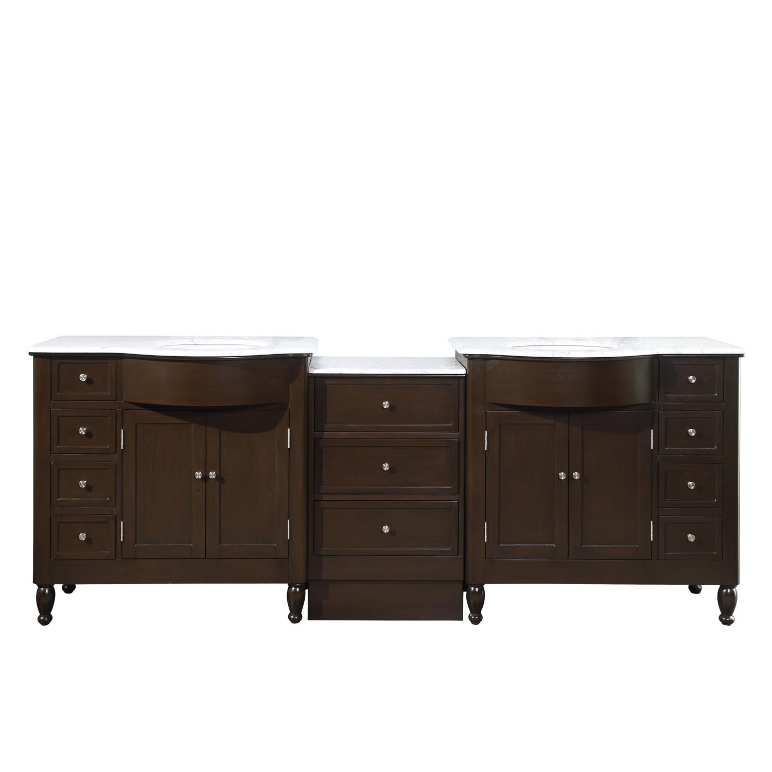 91" Double Sink Vanity Carrara White Marble Top Cabinet