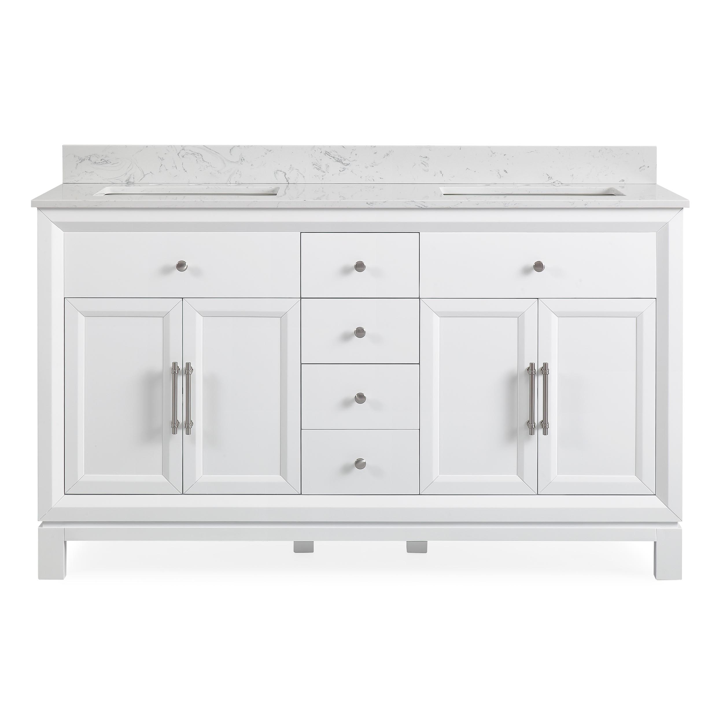 60" Double Sink Vanity White Cultured Marble Top Bathroom Cabinet