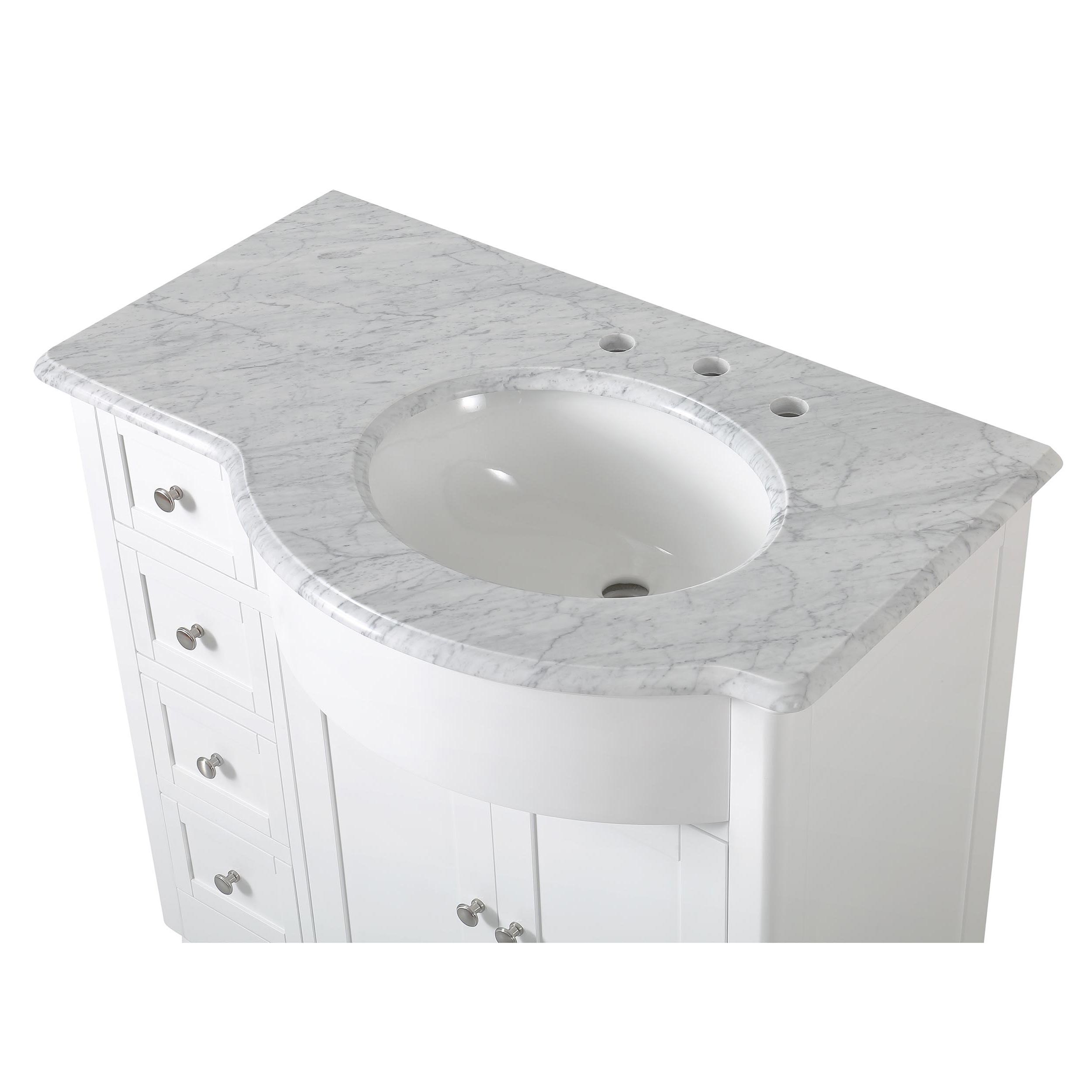 38" Single Right Sink Vanity Carrara White Marble Top Cabinet