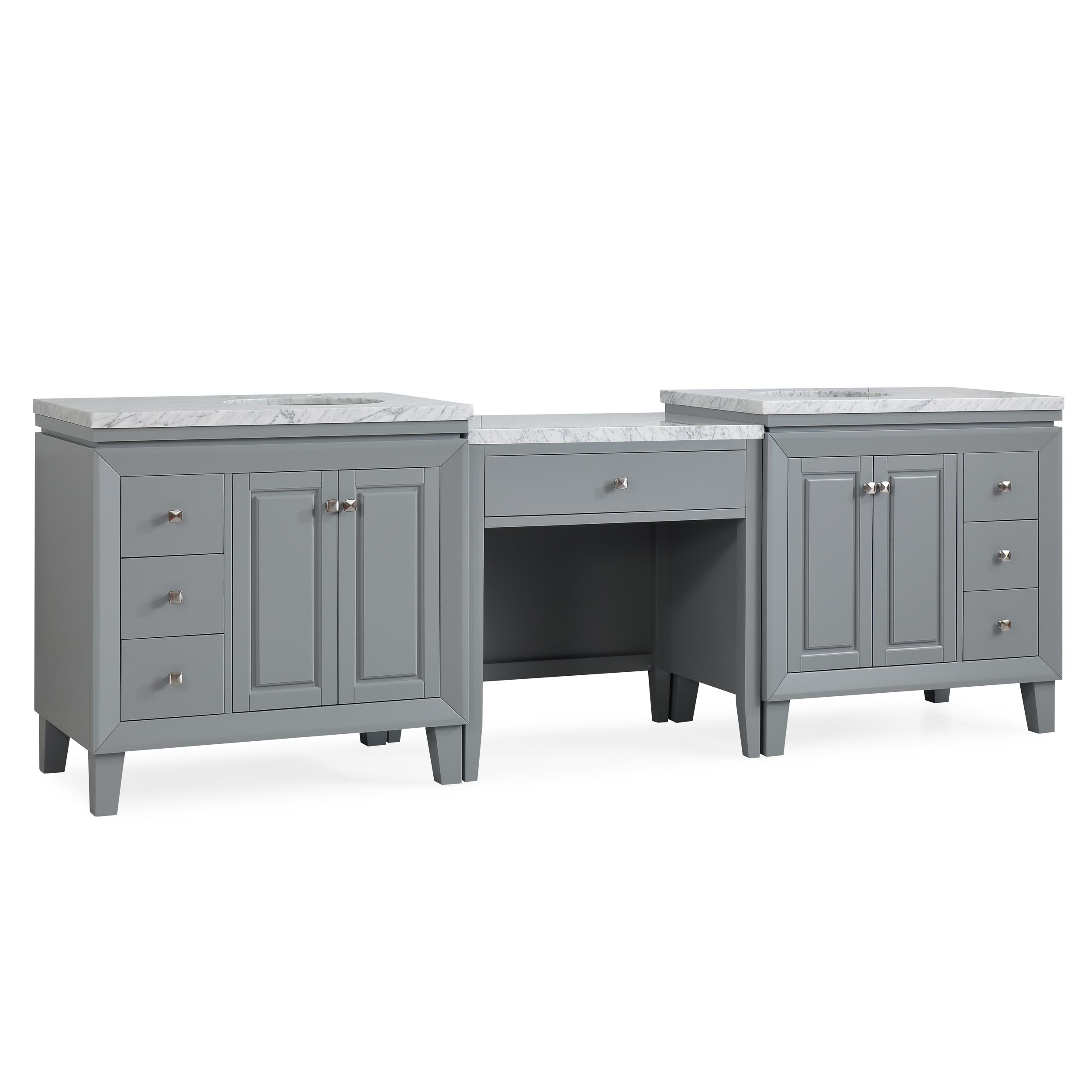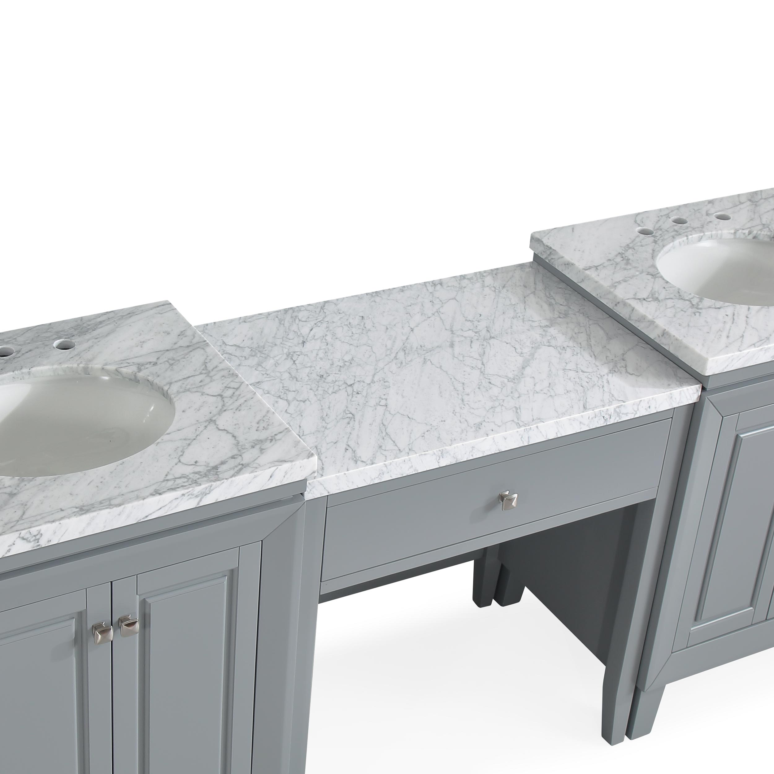 103" Double Sink Vanity Carrara White Marble Top Bathroom Cabinet