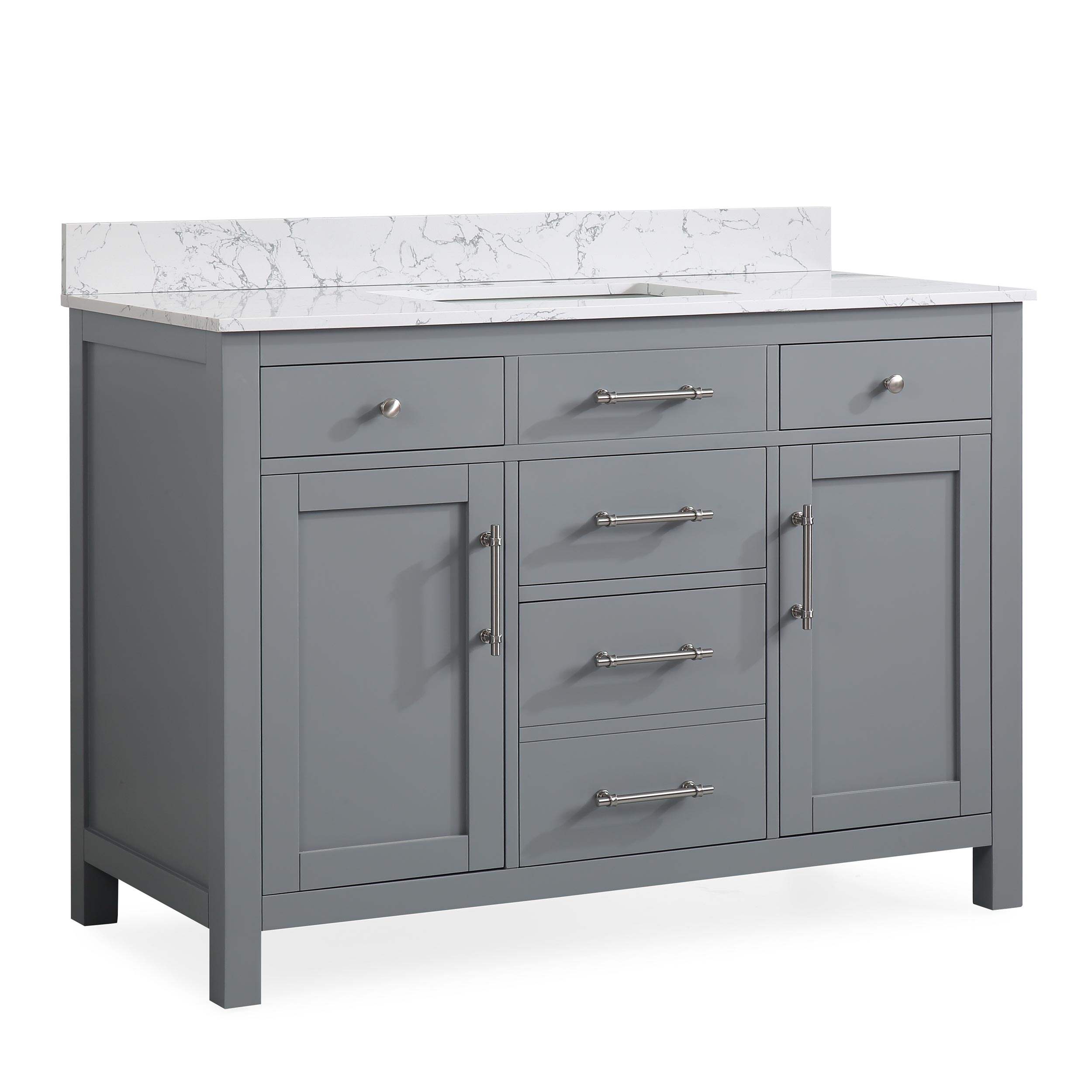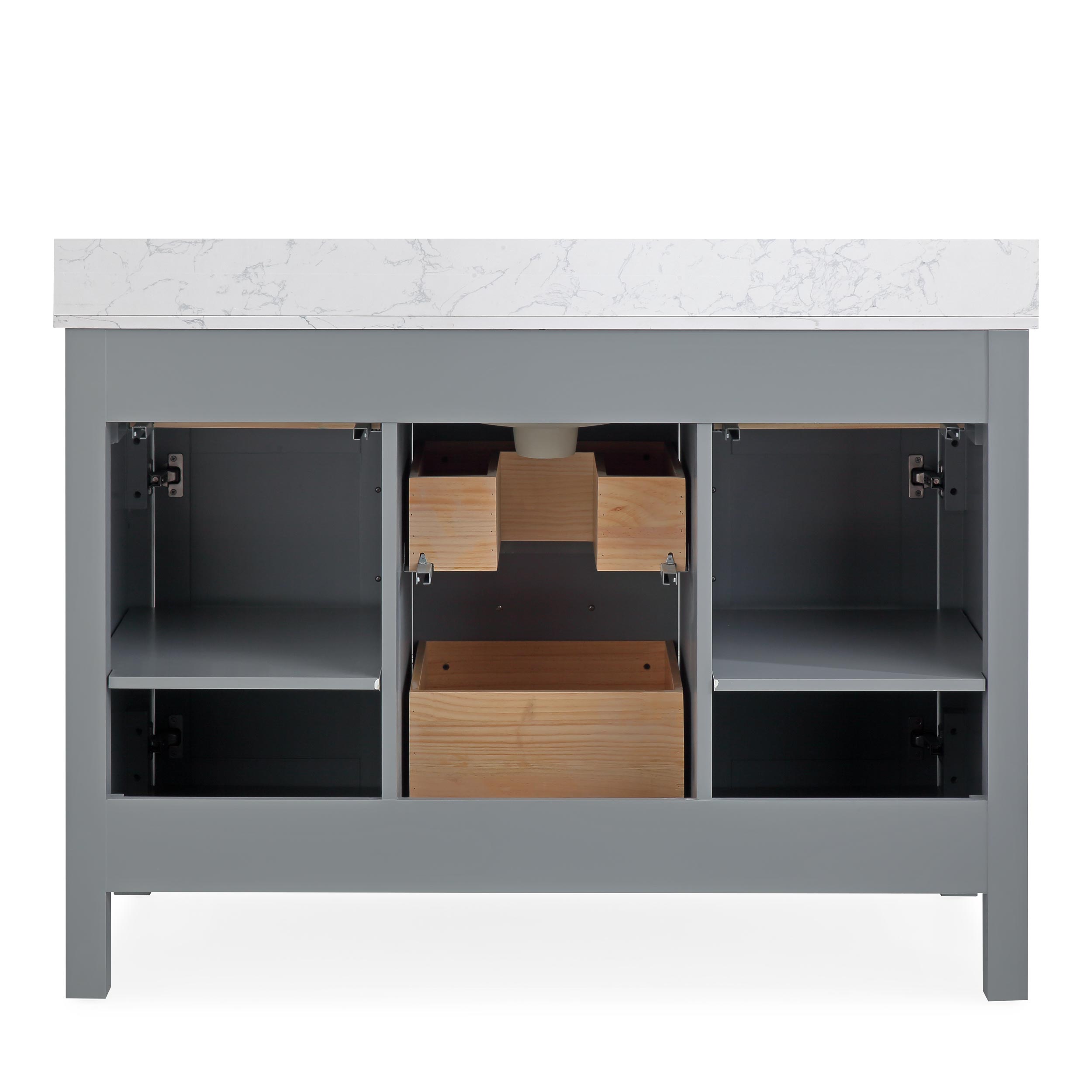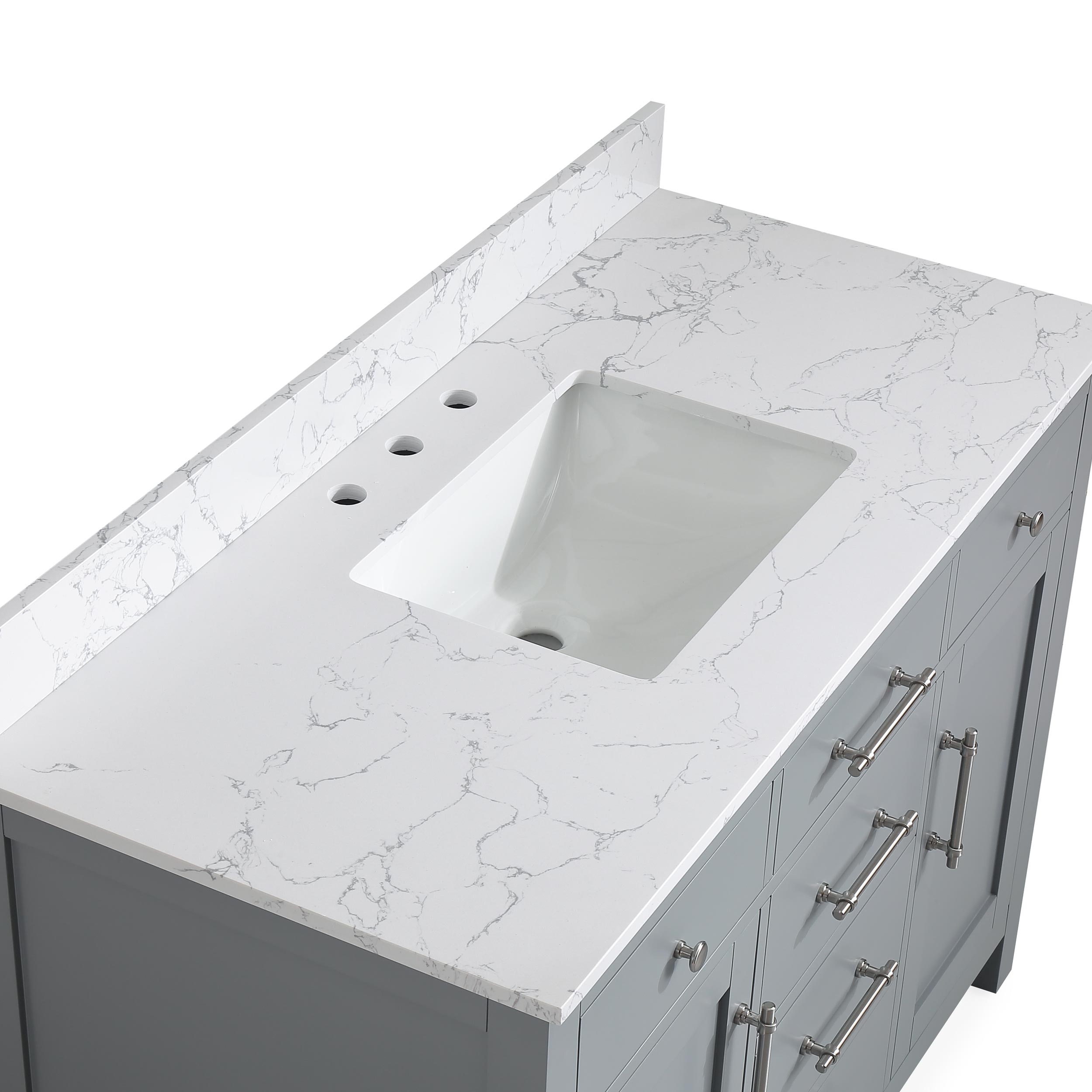 48" Gray Single Sink Bathroom Vanity Calacatta White Cultured Marble Top Cabinet