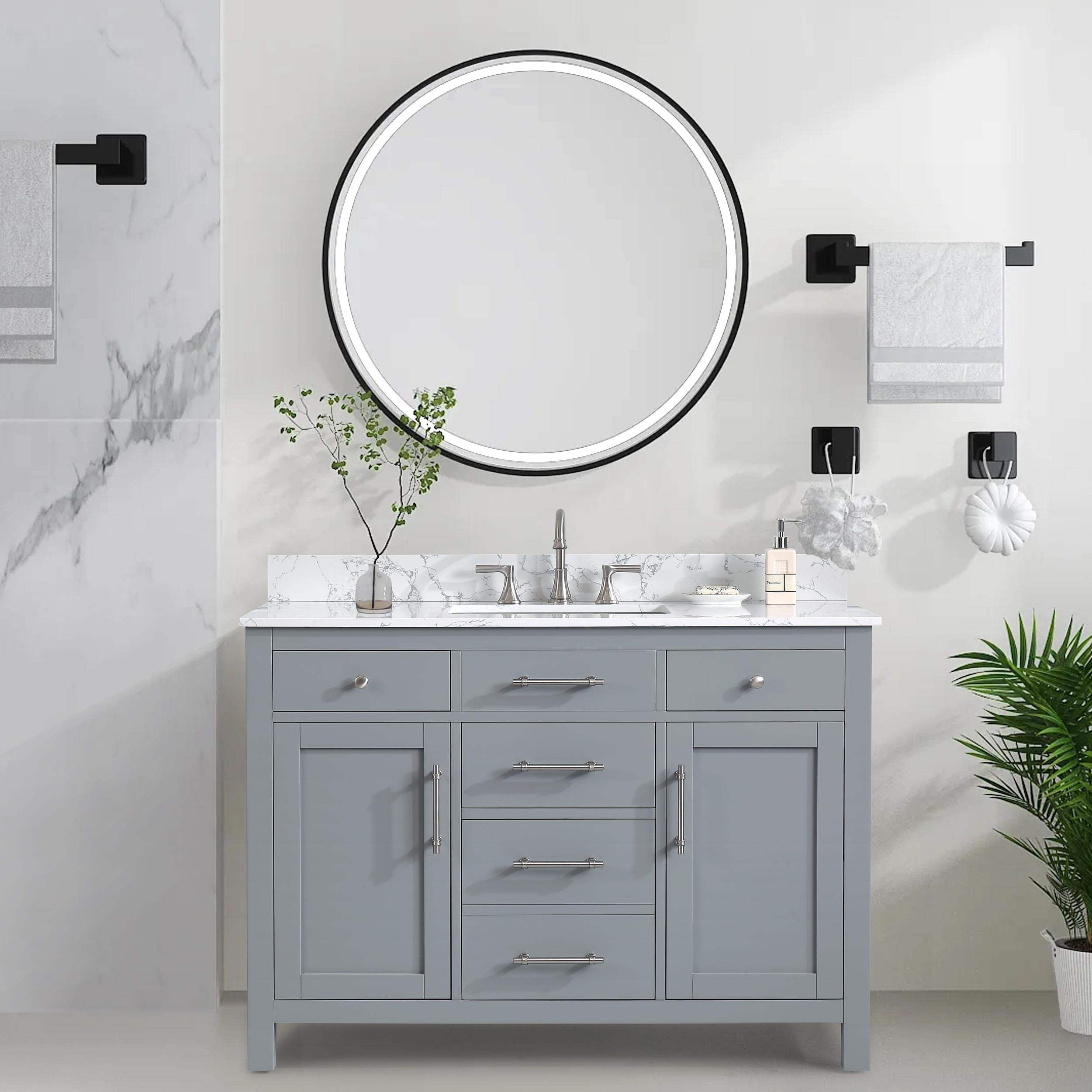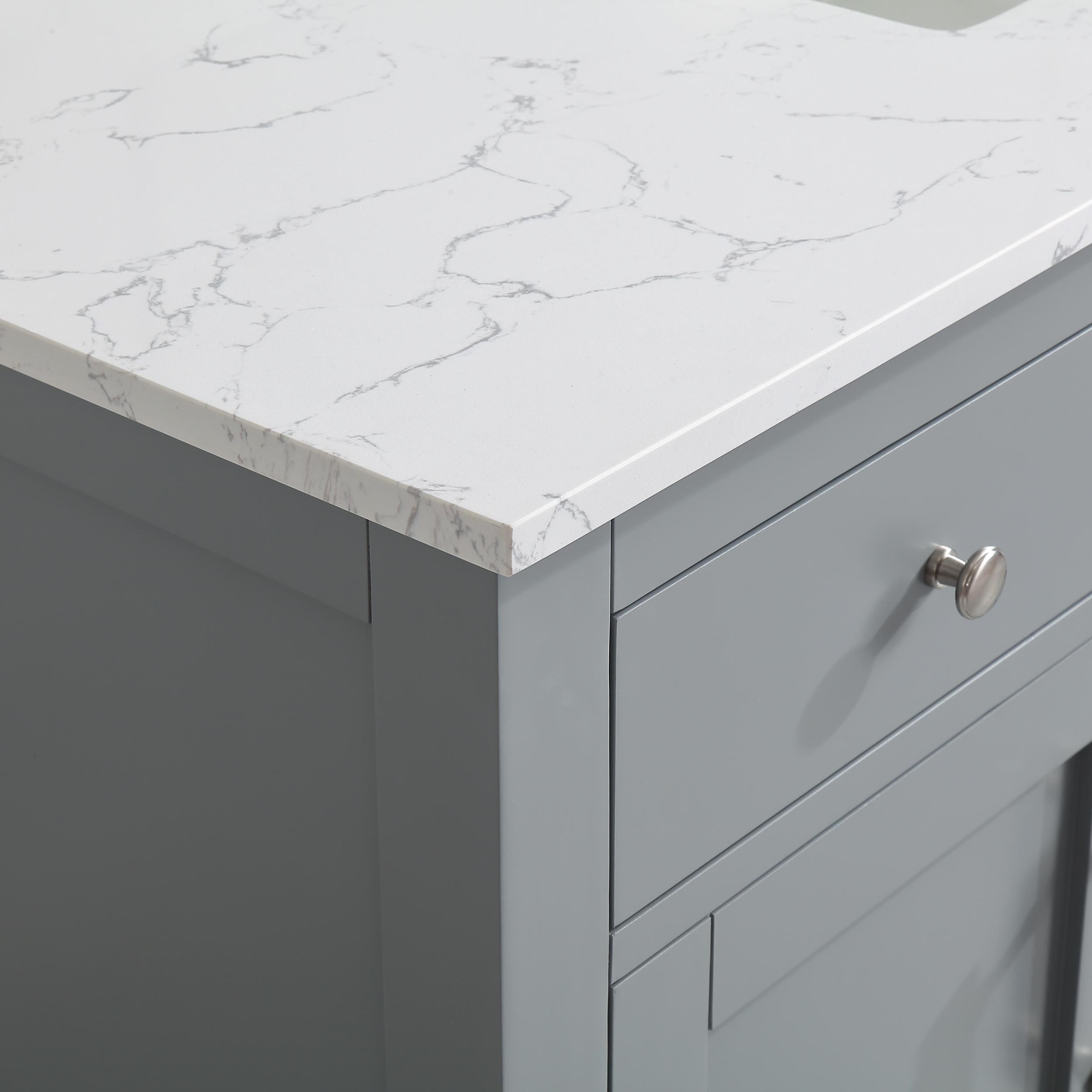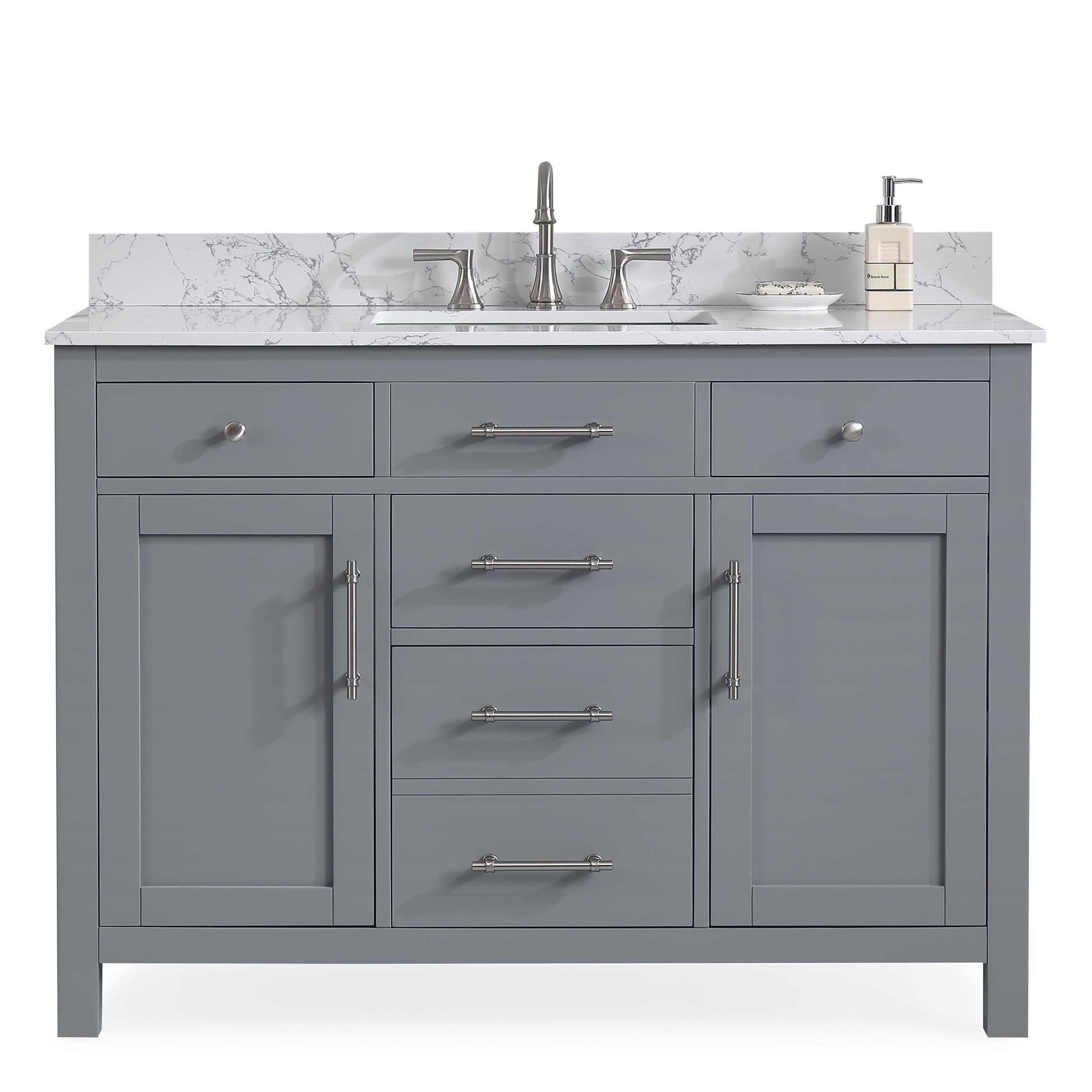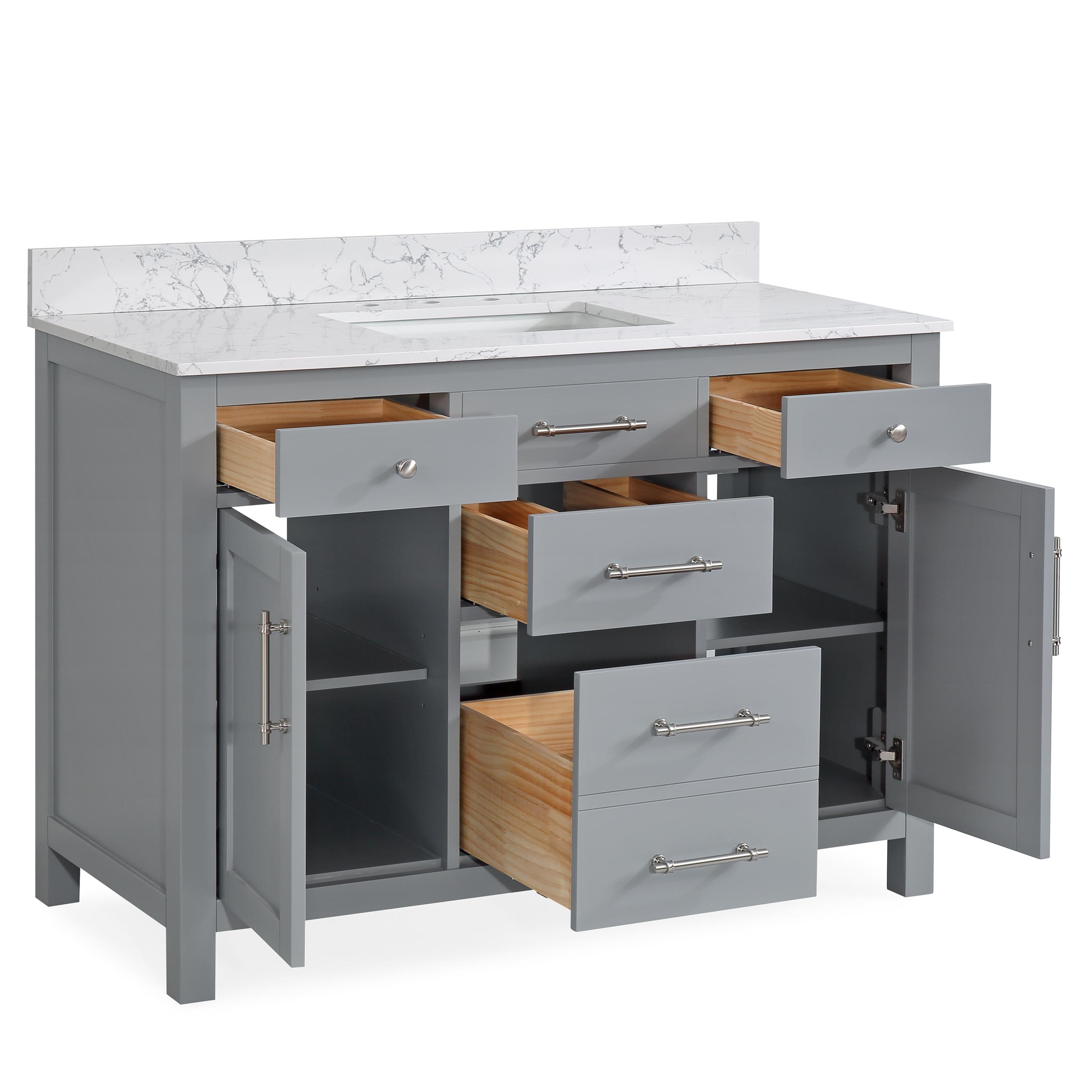 48" Gray Single Sink Bathroom Vanity Calacatta White Cultured Marble Top Cabinet