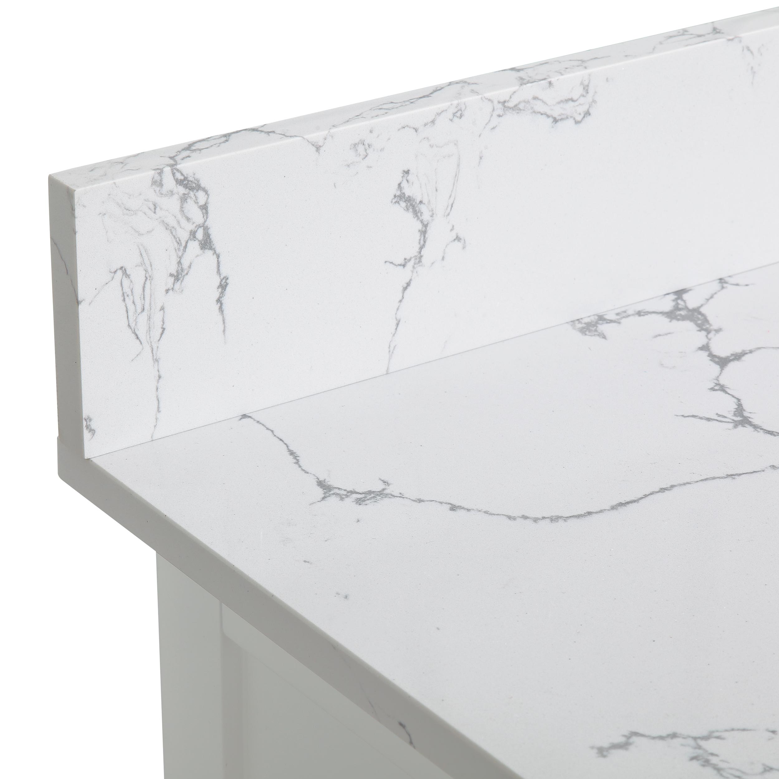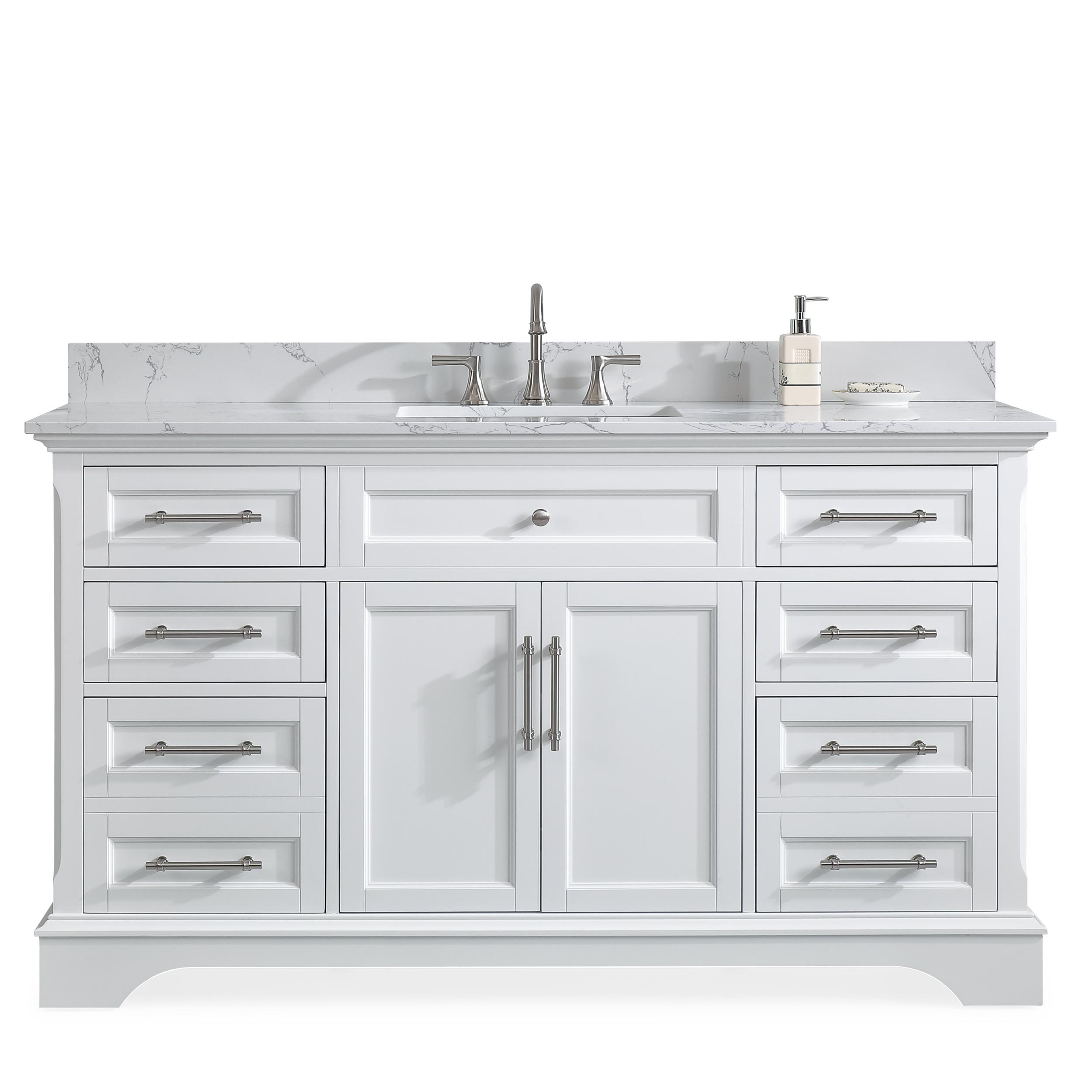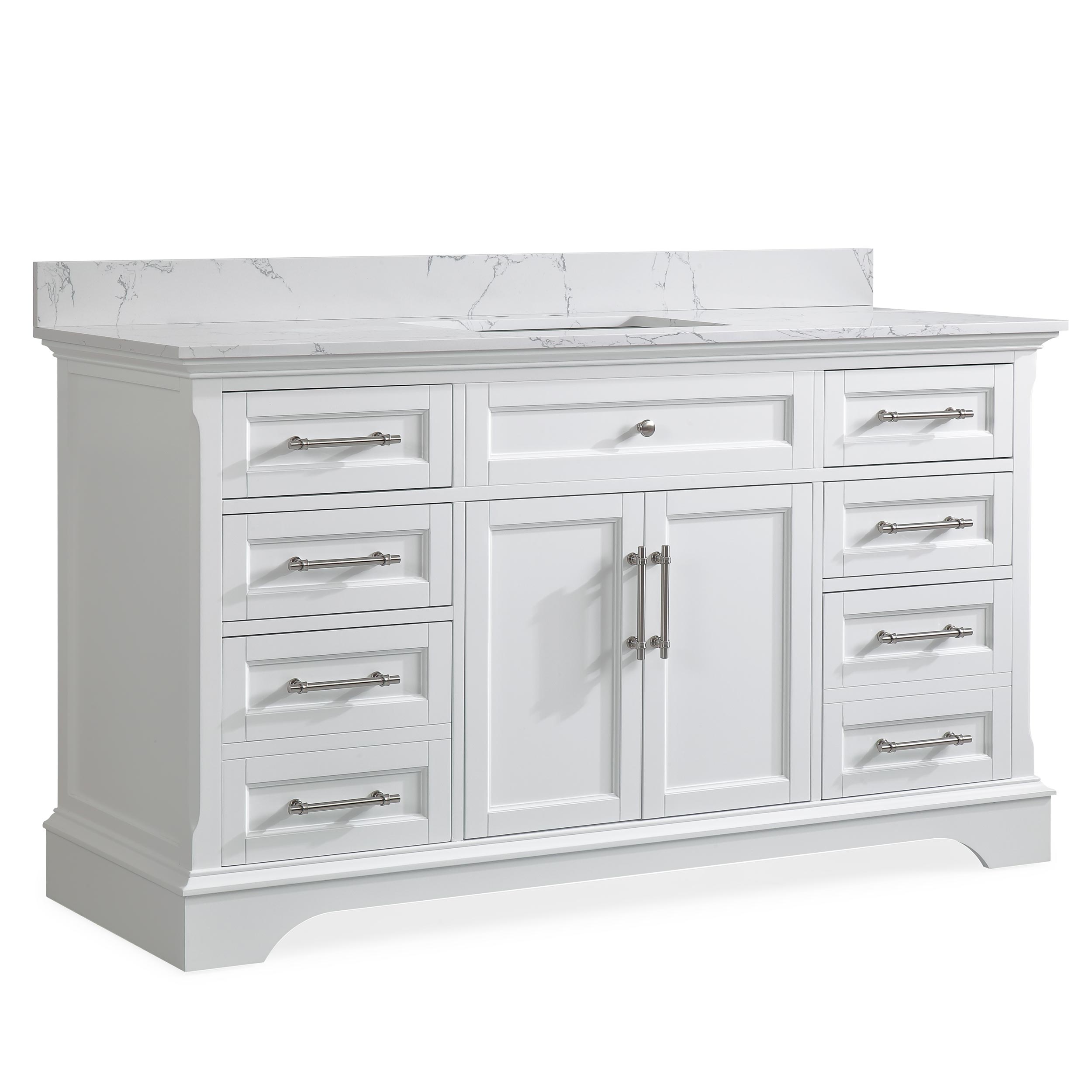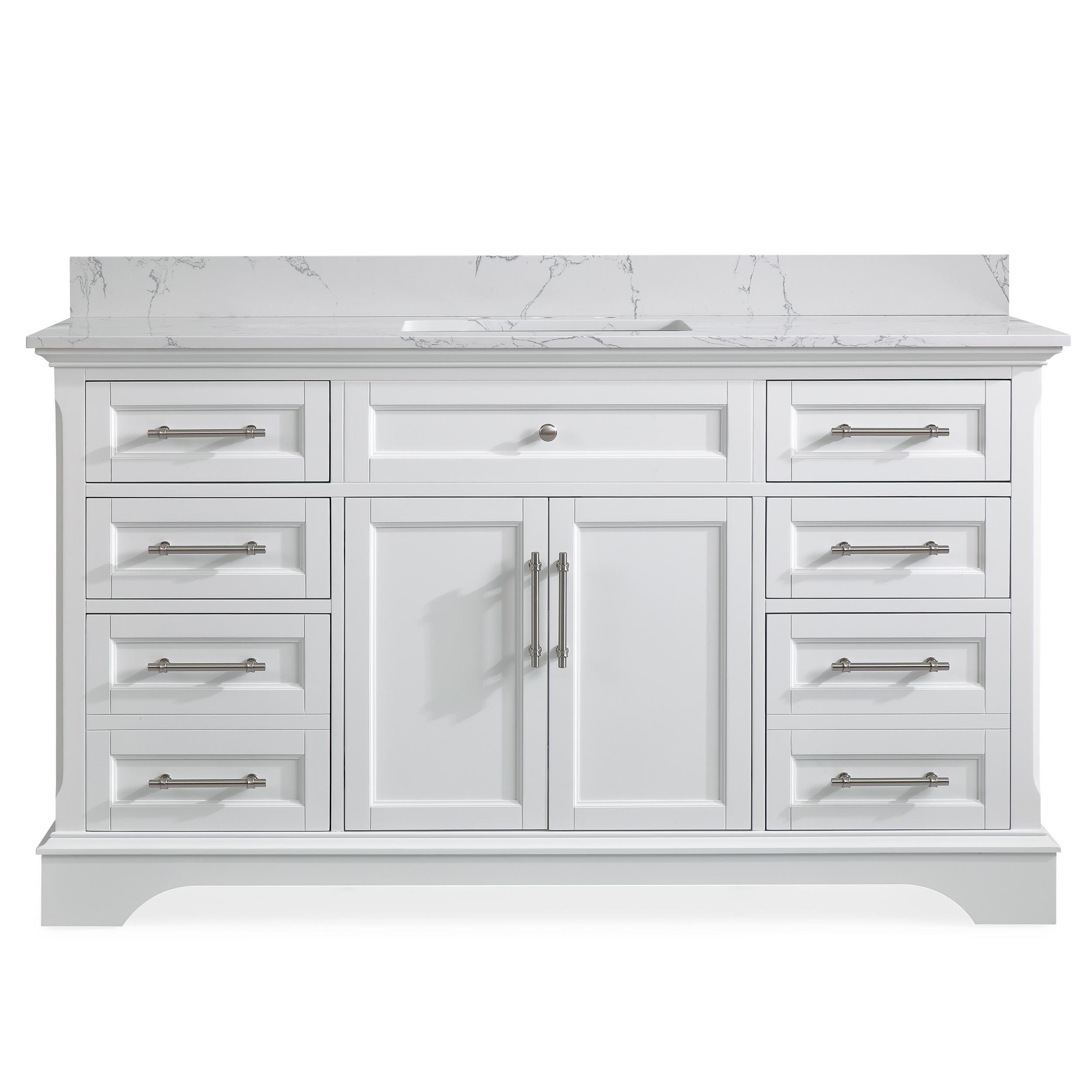 60" White Single Sink Bathroom Vanity Calacatta White Cultured Marble Top Cabine