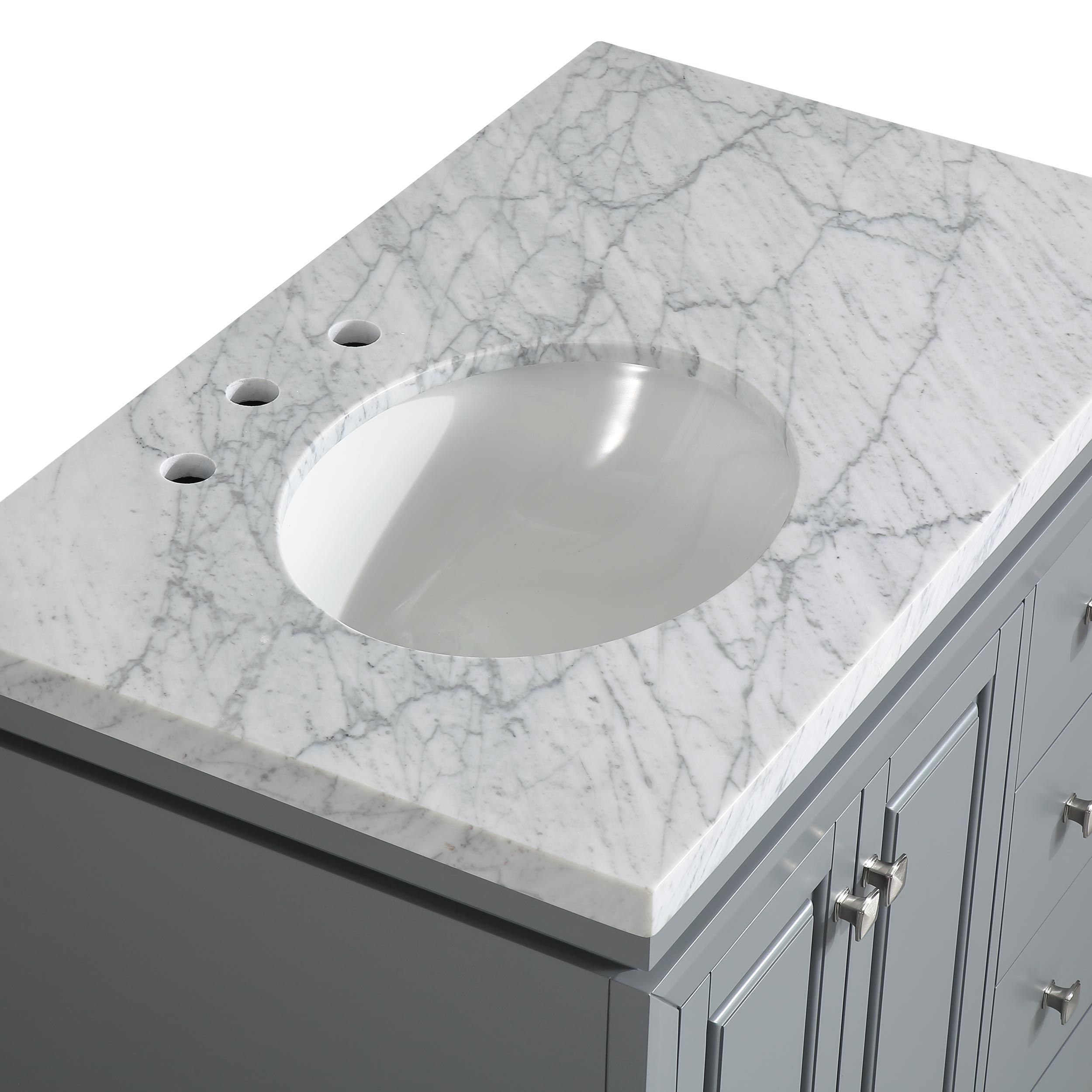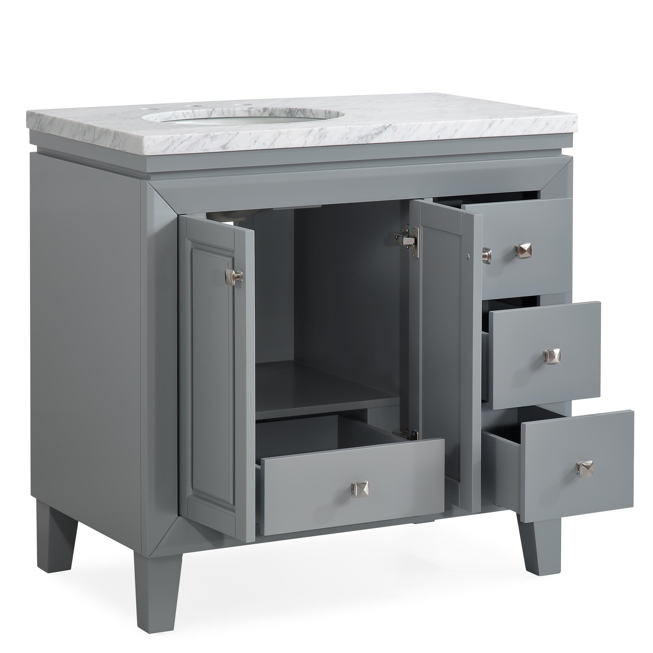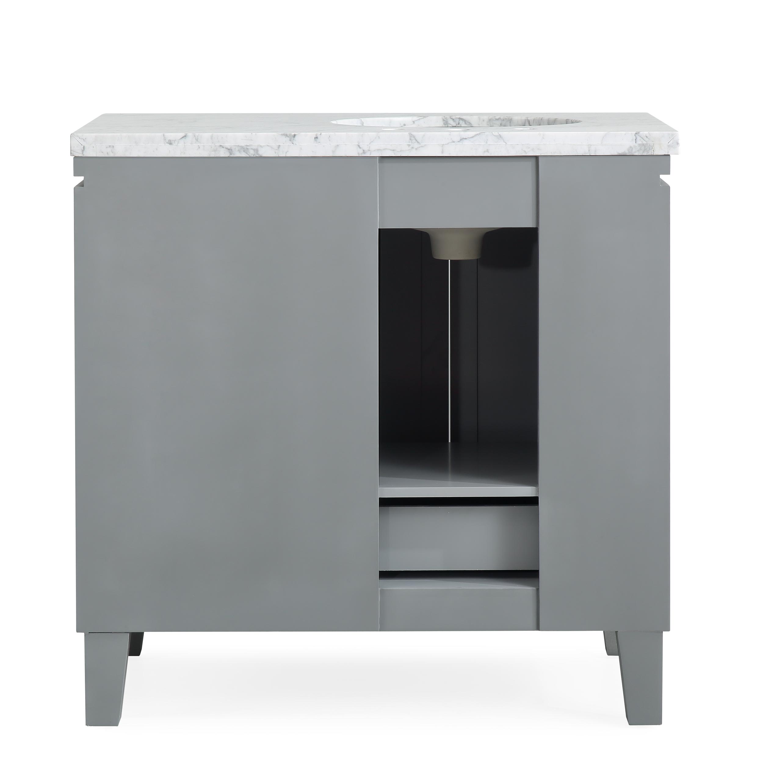 36" Single Sink Vanity Carrera White Marble Top Cabinet