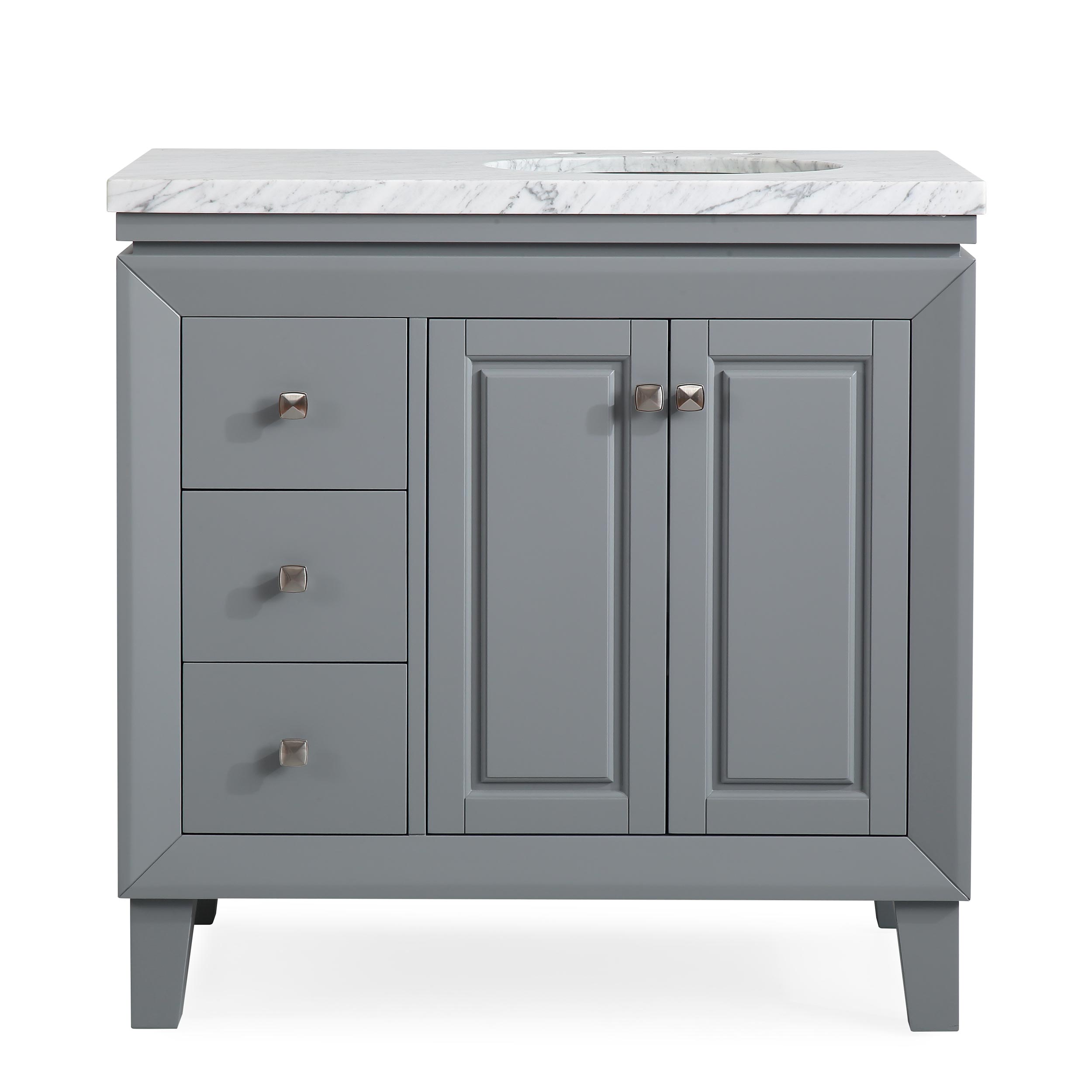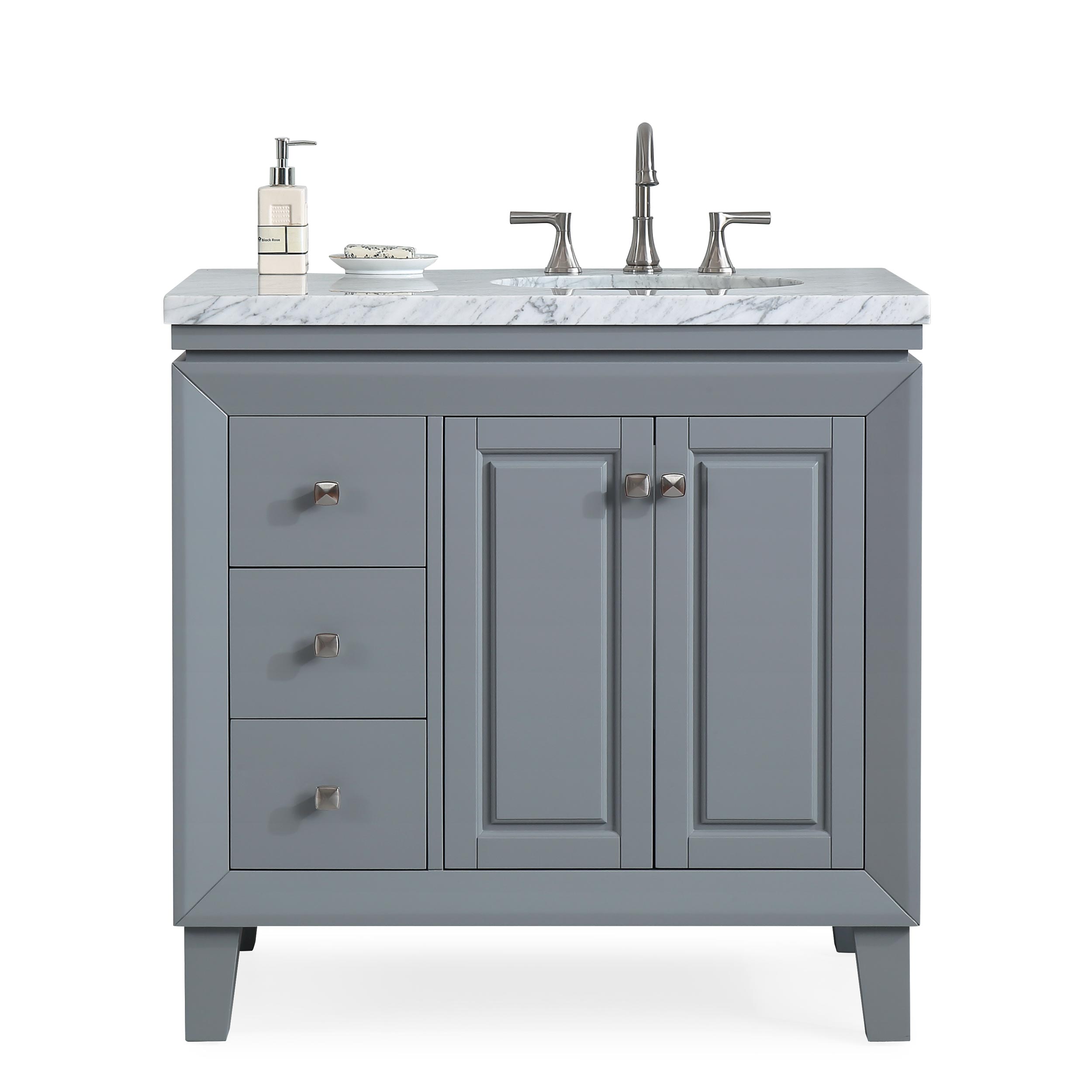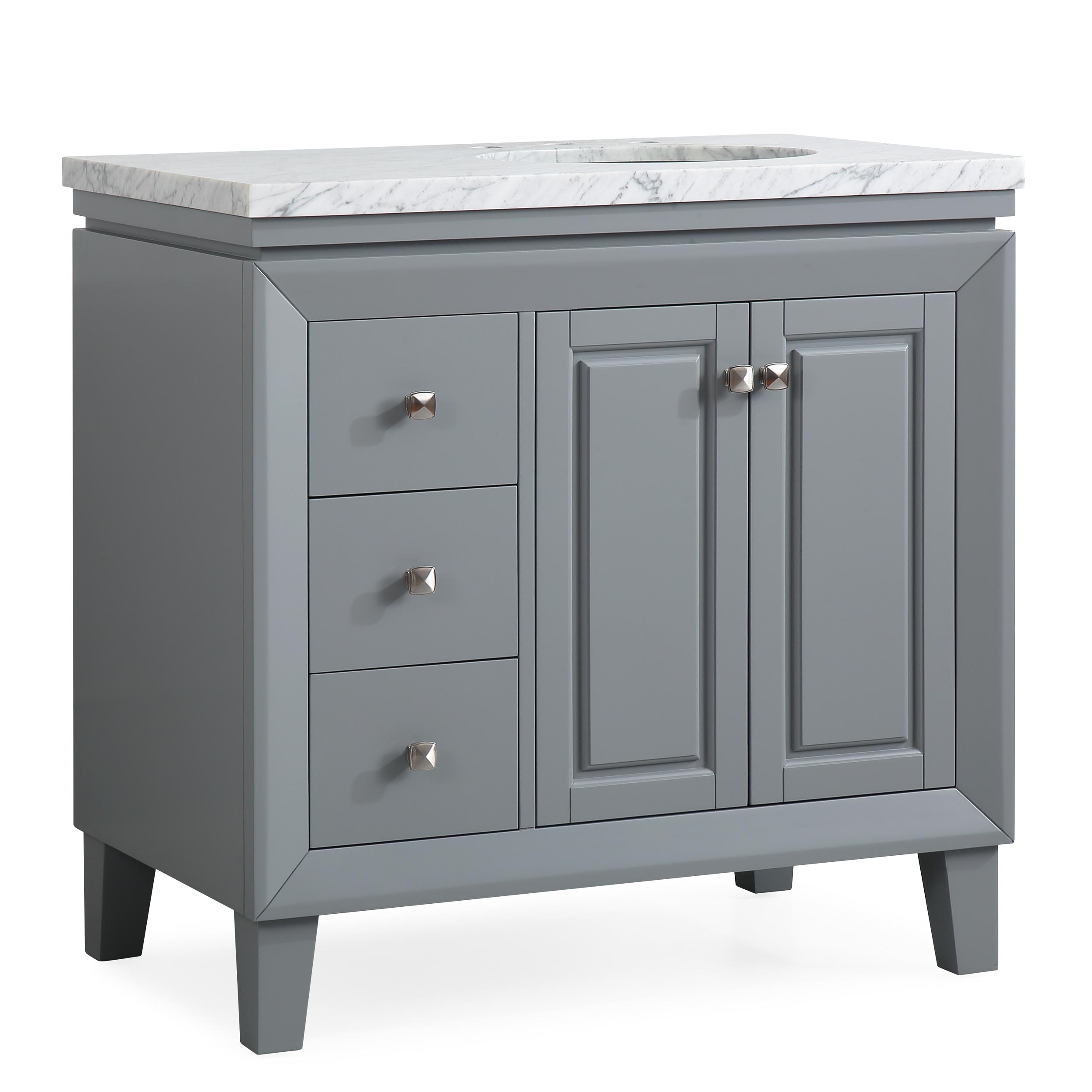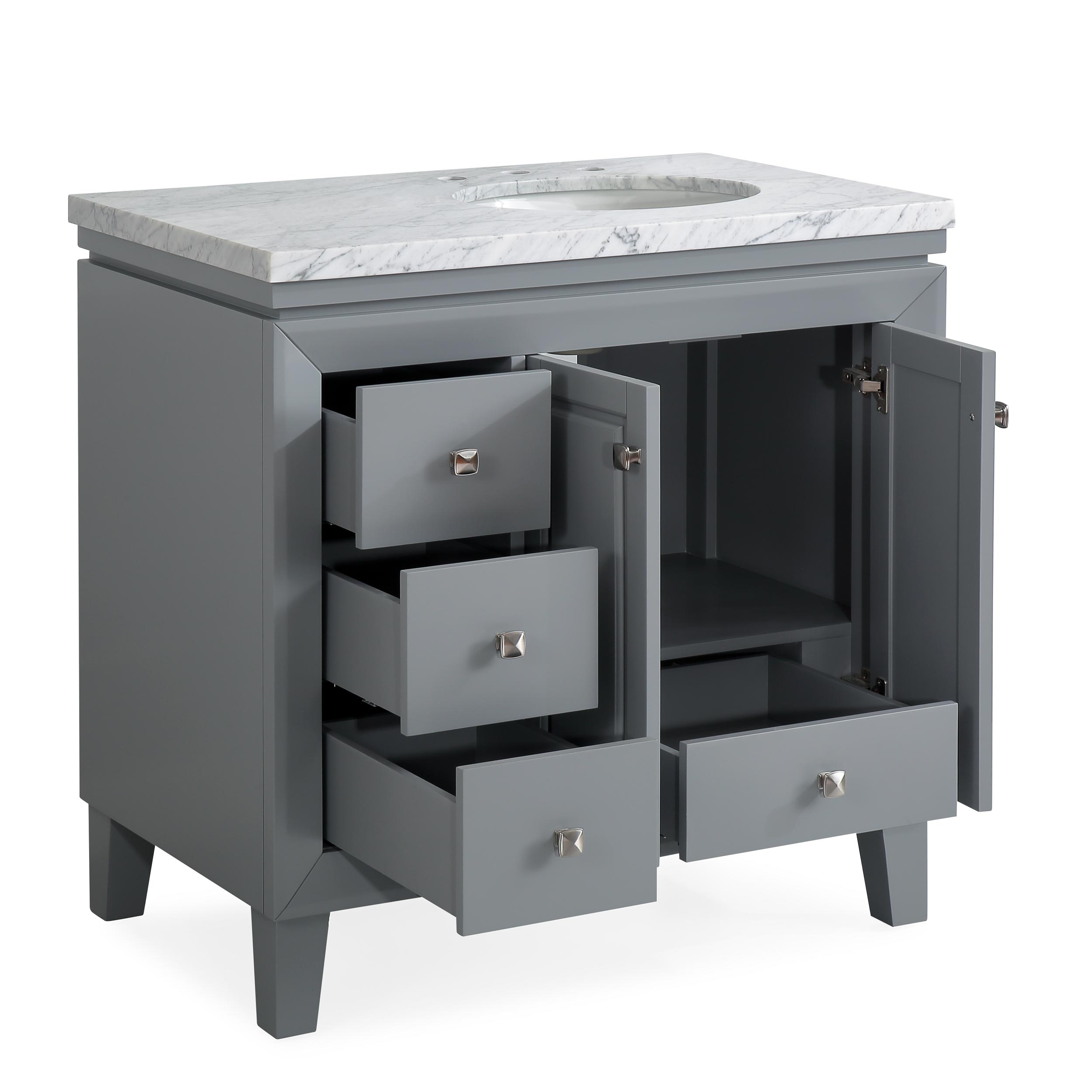 36" Single Sink Vanity Carrera White Marble Top Cabinet
