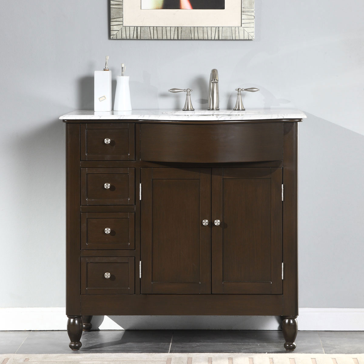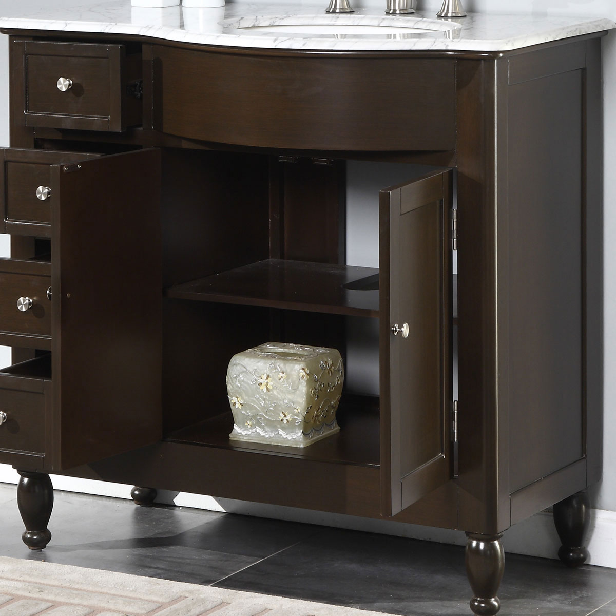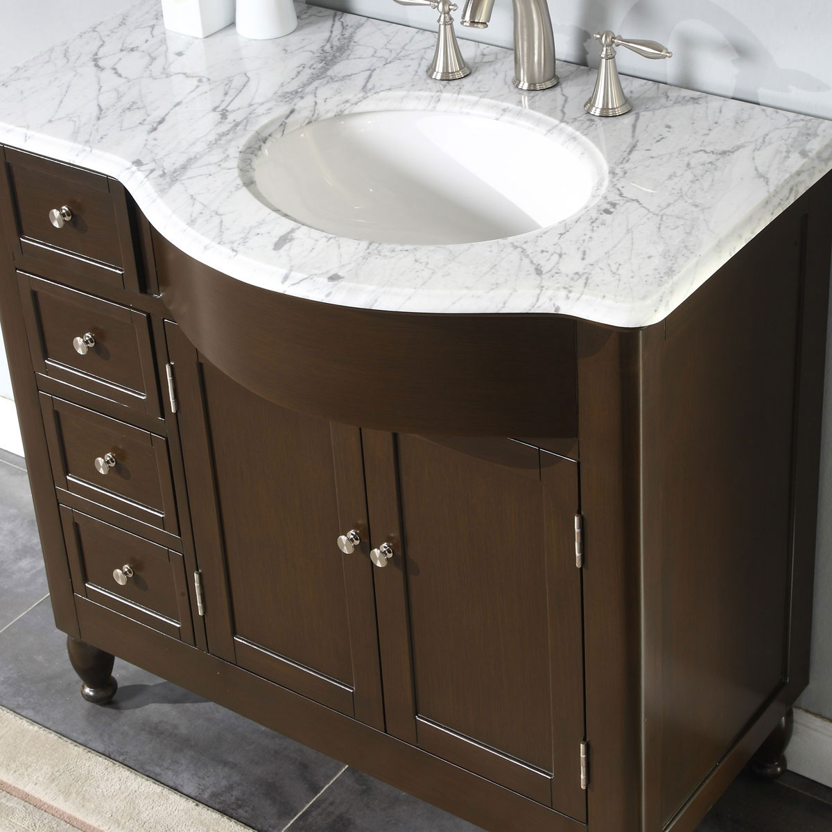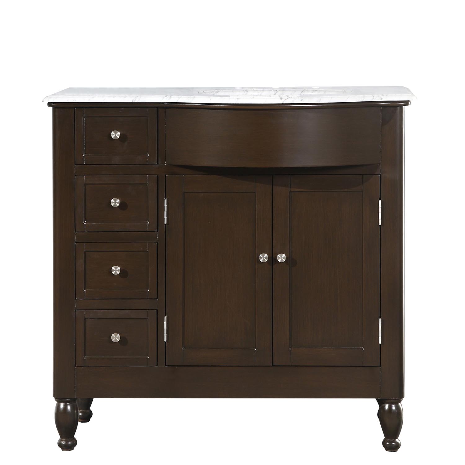 36" Single Sink Vanity Carrara White Marble Top Cabinet