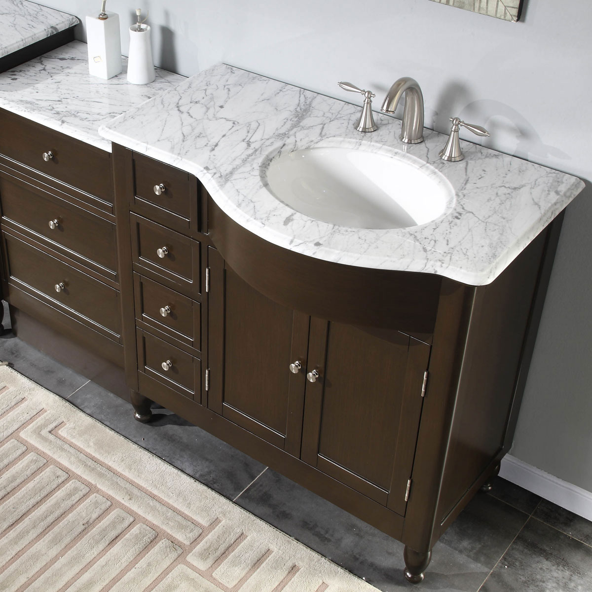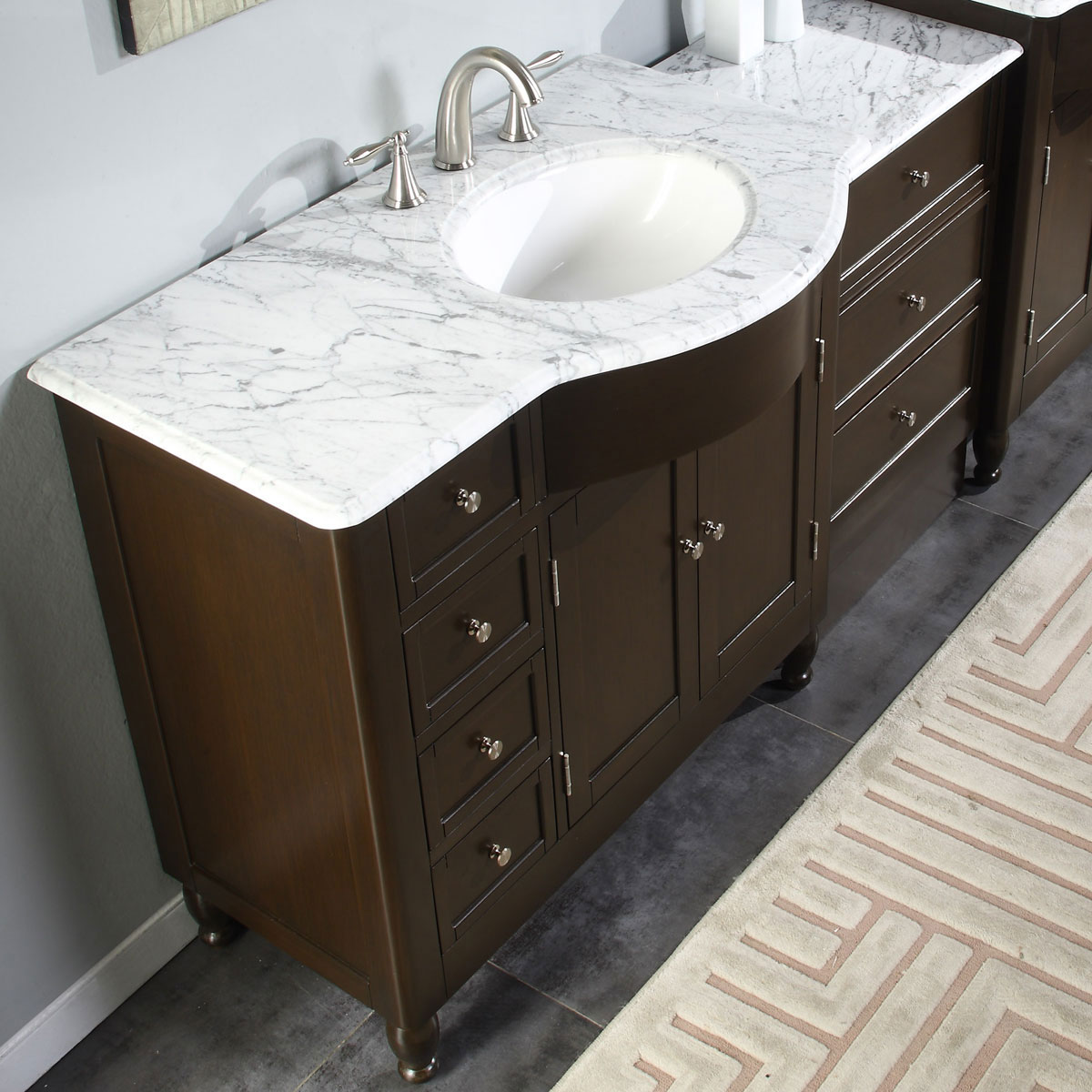 56" Single Sink Vanity Carrara White Marble Top Cabinet