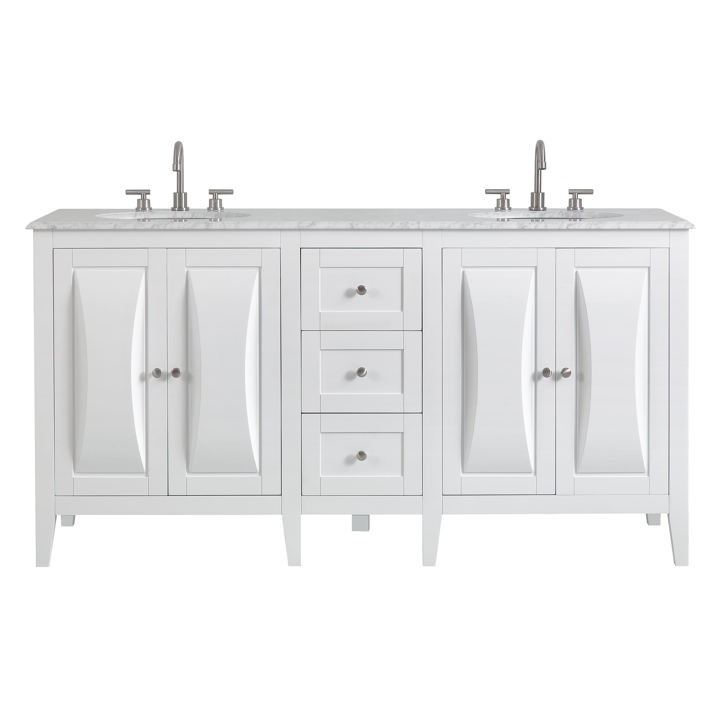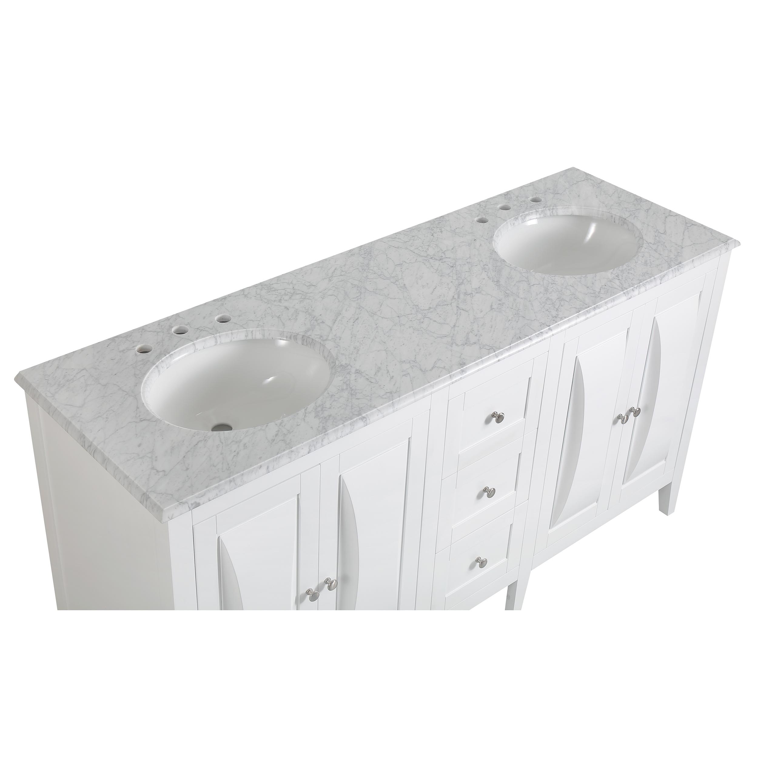 68" Double Sink Vanity Carrara White Marble Top Cabinet