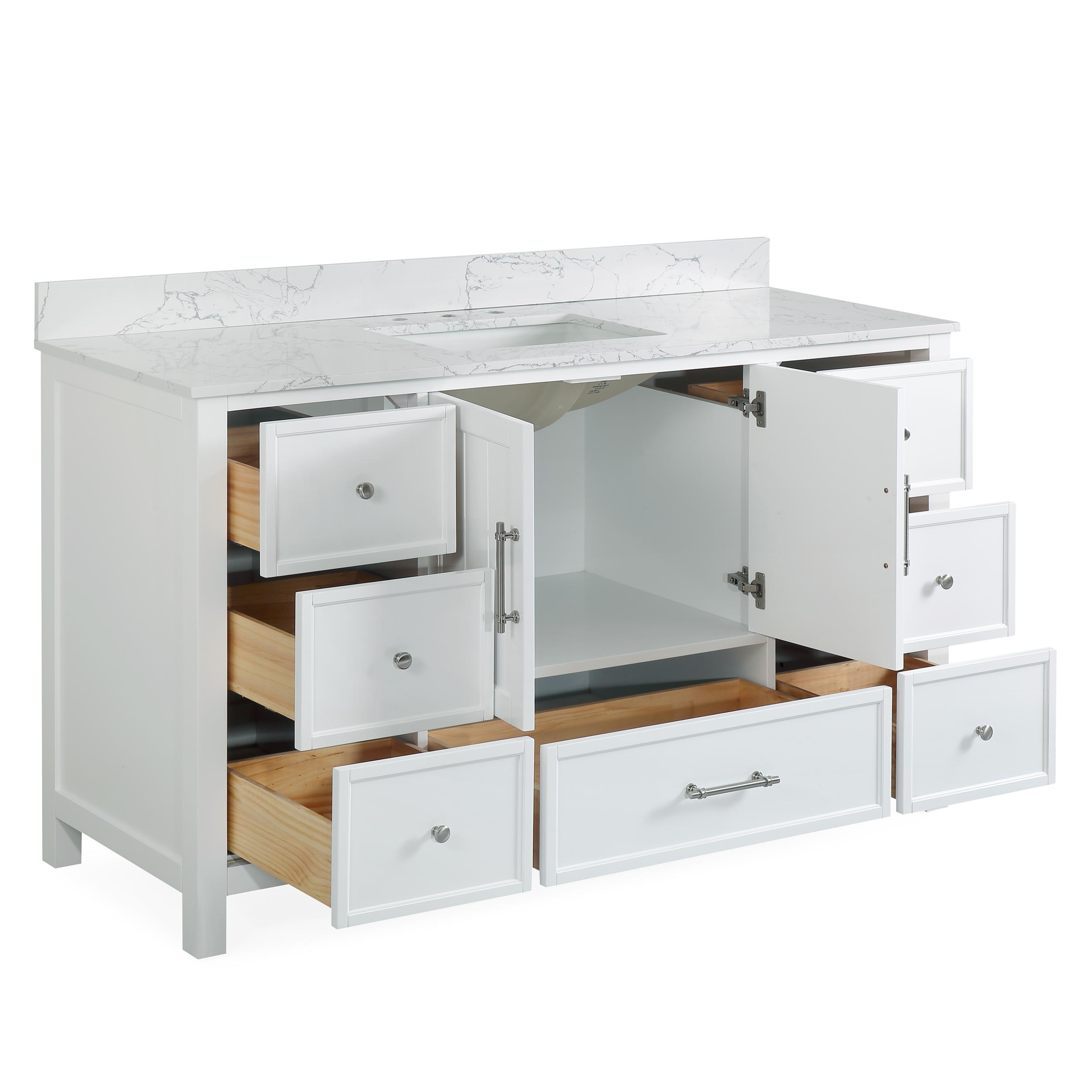 Made of Cultured Marble Top with Solid Wood Structure & CARB Ph2 Certified Panels