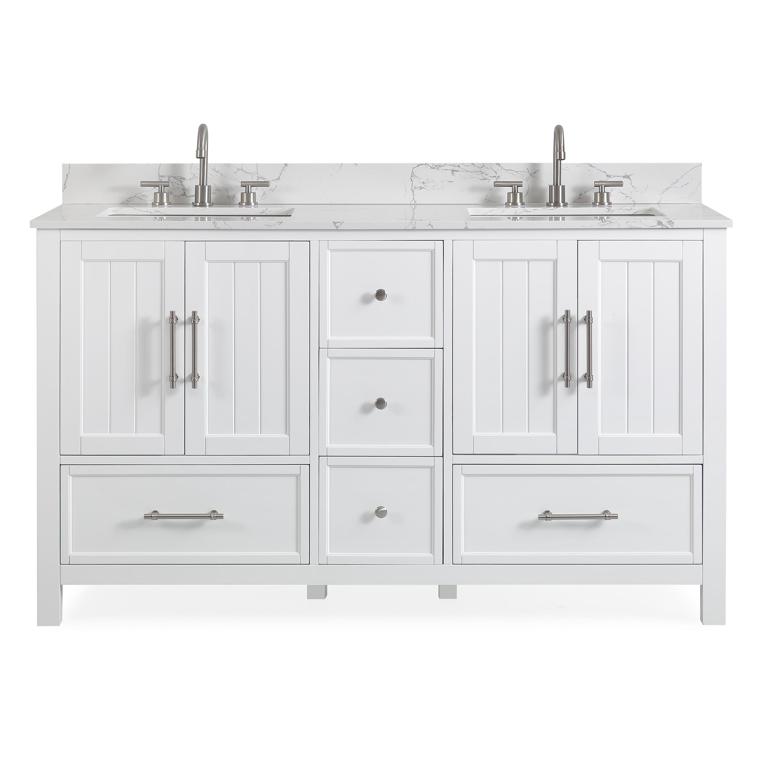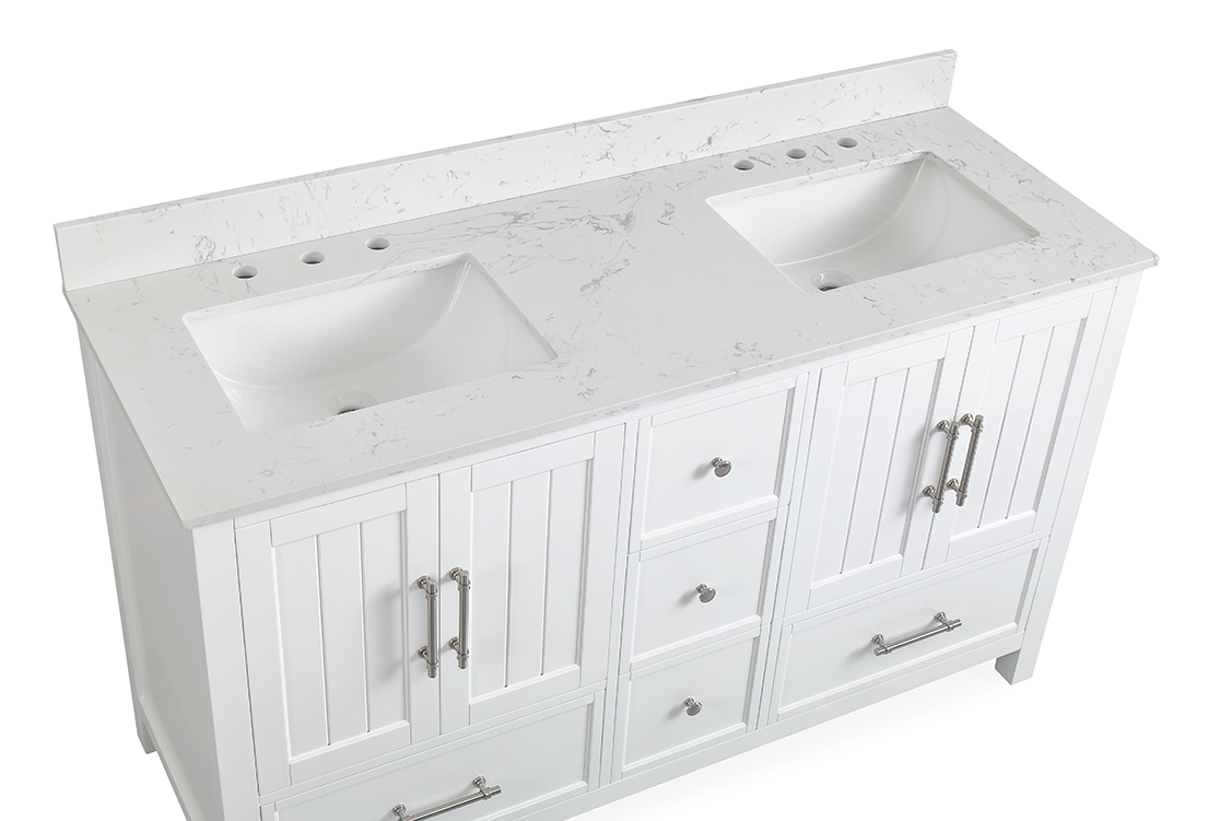 60" Double Sink Vanity White Cultured Marble Top Bathroom Cabinet