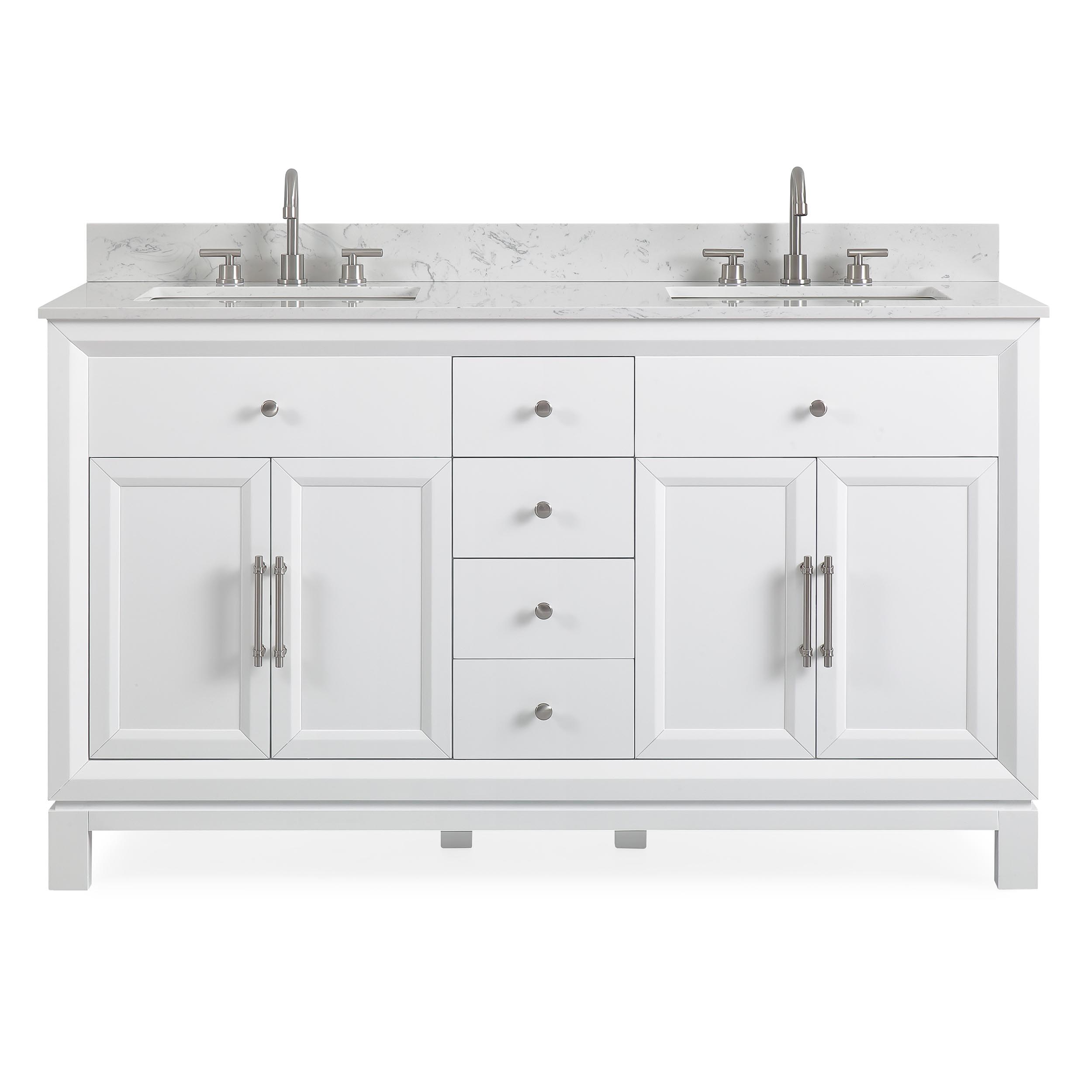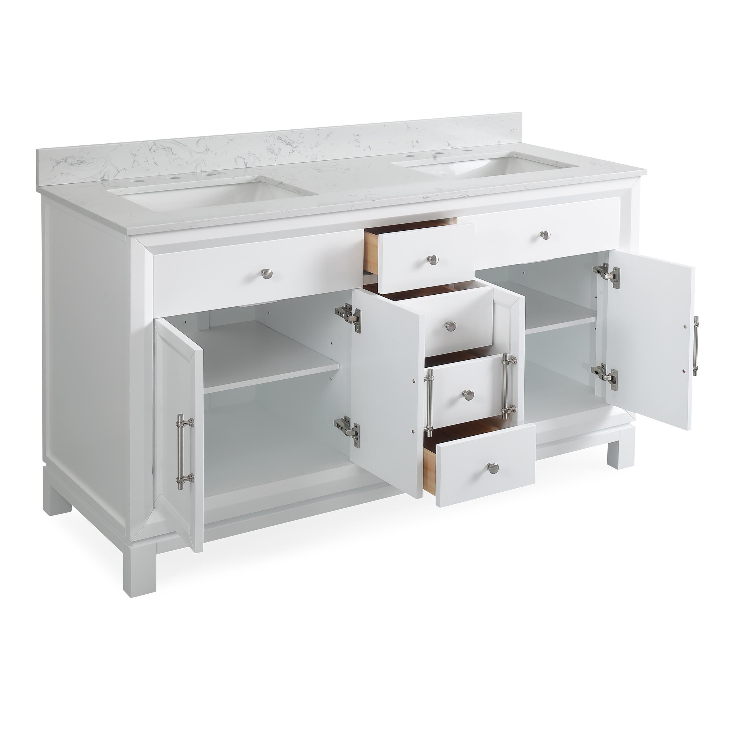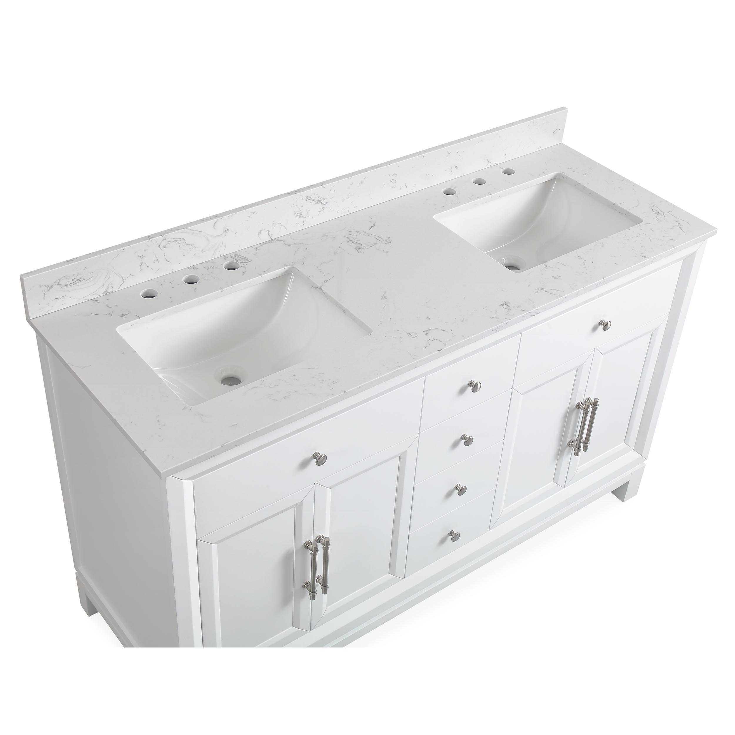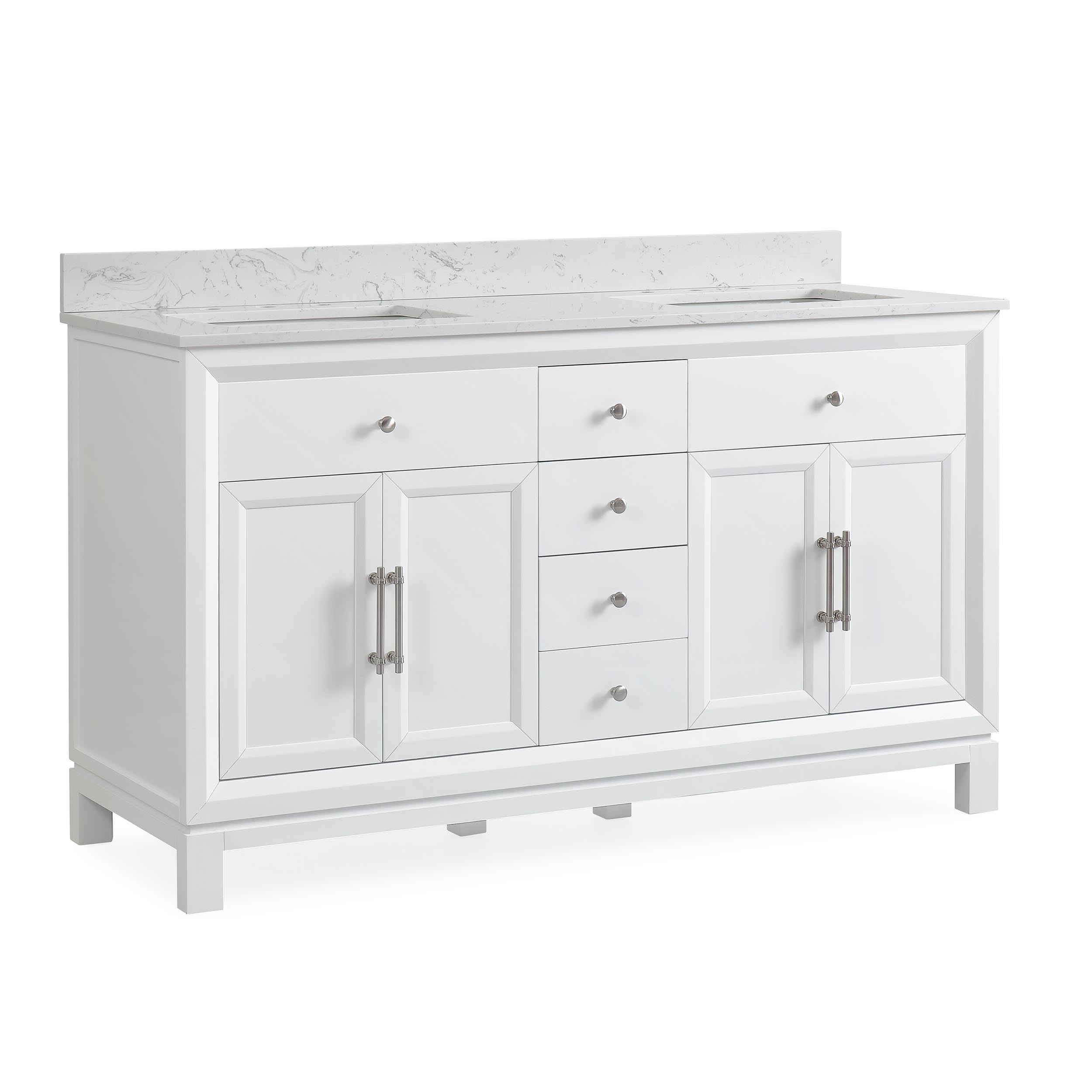 60" Double Sink Vanity White Cultured Marble Top Bathroom Cabinet