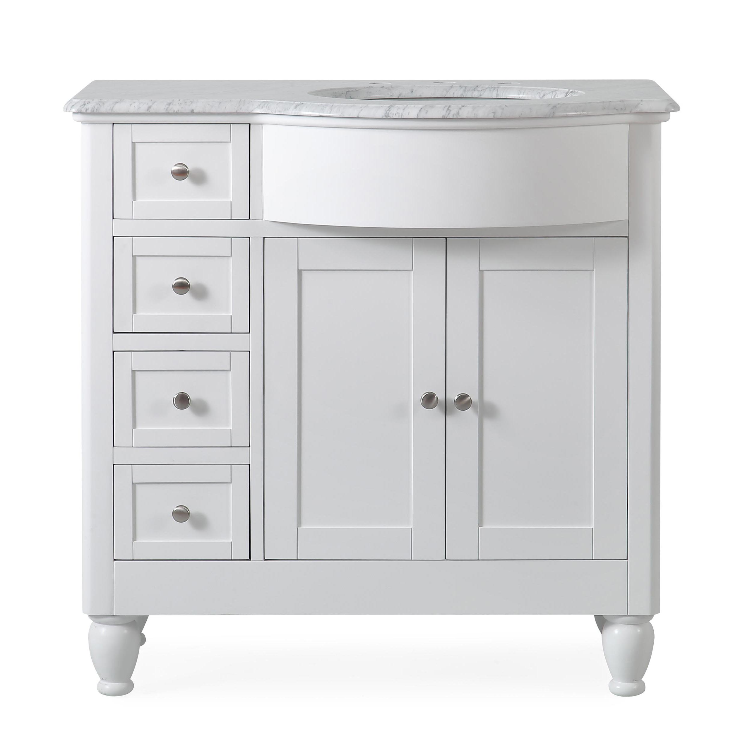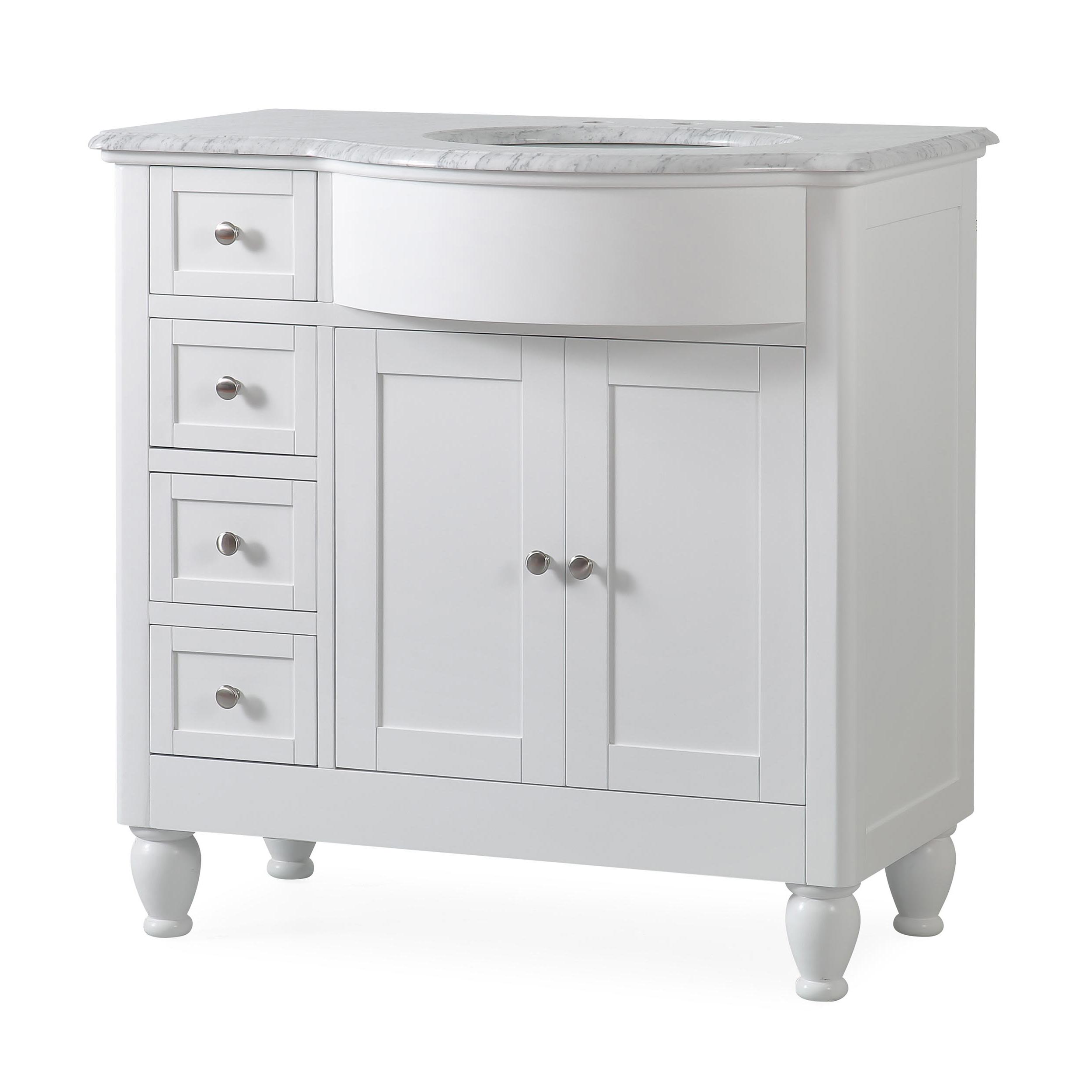38" Single Right Sink Vanity Carrara White Marble Top Cabinet