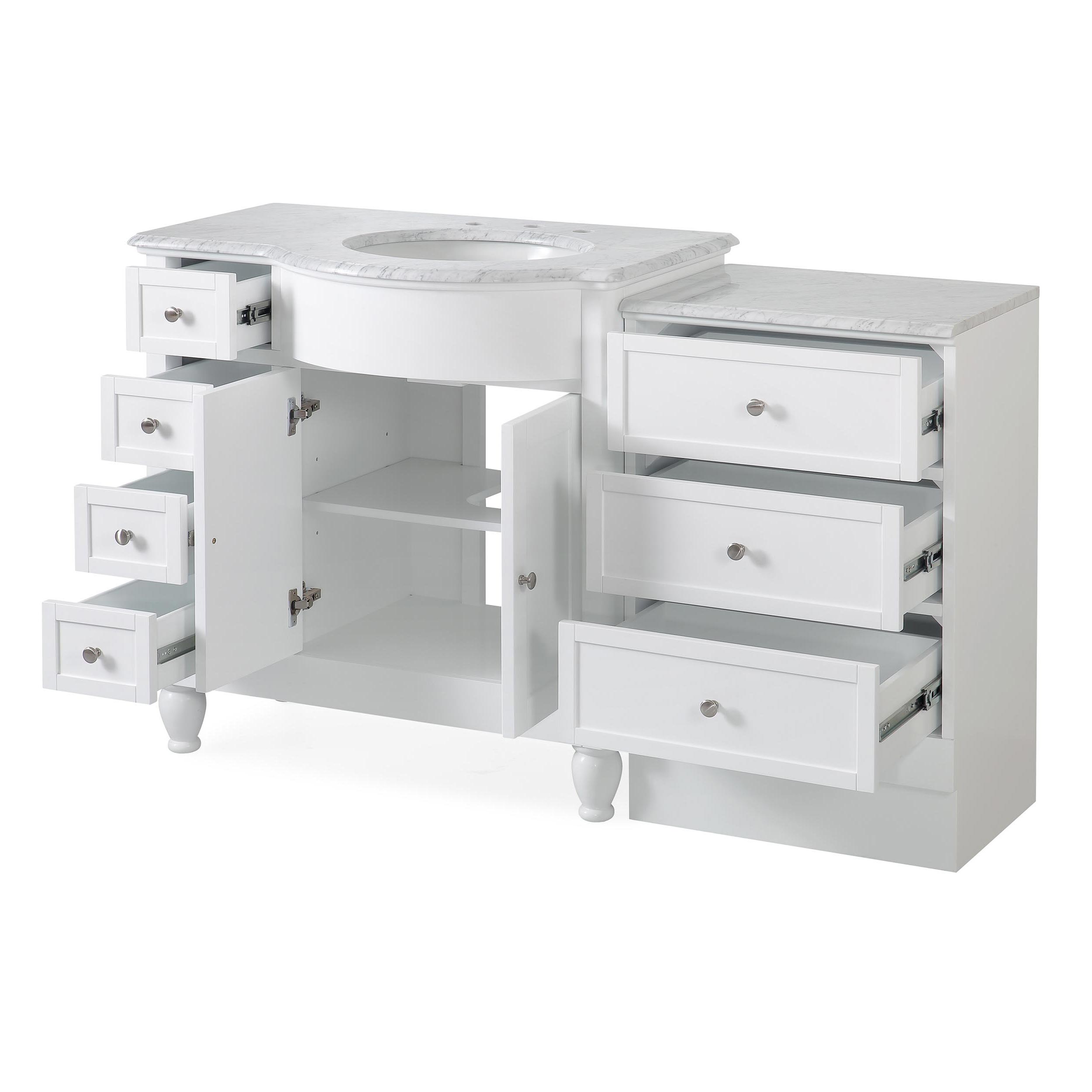 56" Single Right Sink Vanity Carrara White Marble Top Cabinet