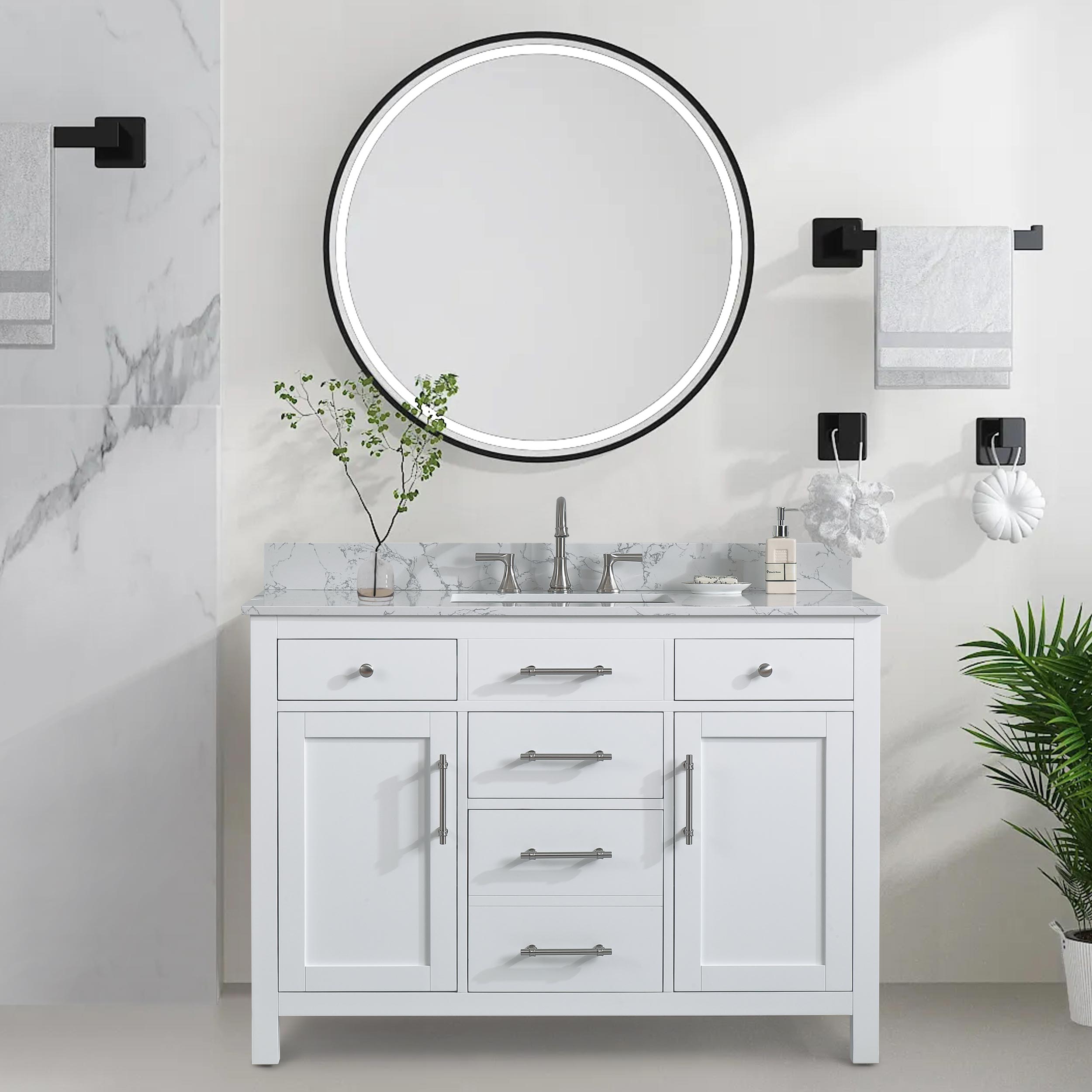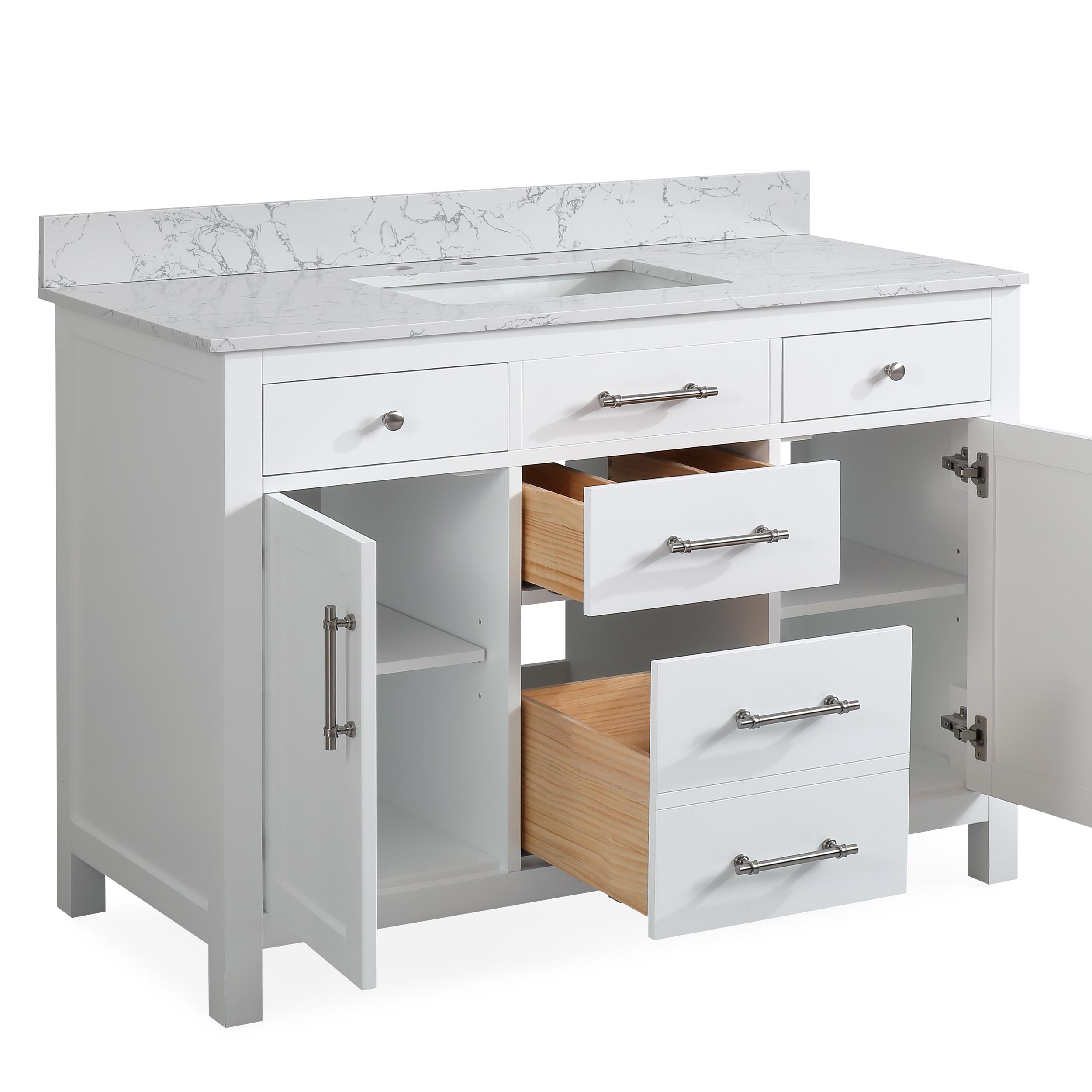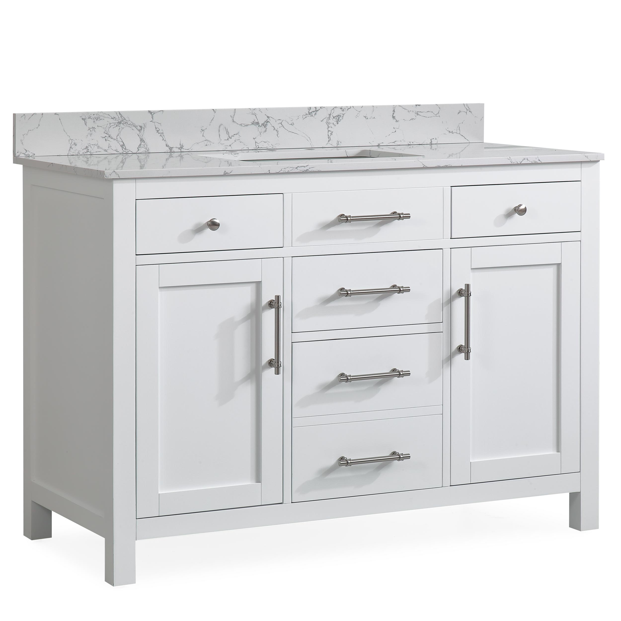 48" White Single Sink Bathroom Vanity Calacatta White Cultured Marble Top Cabine