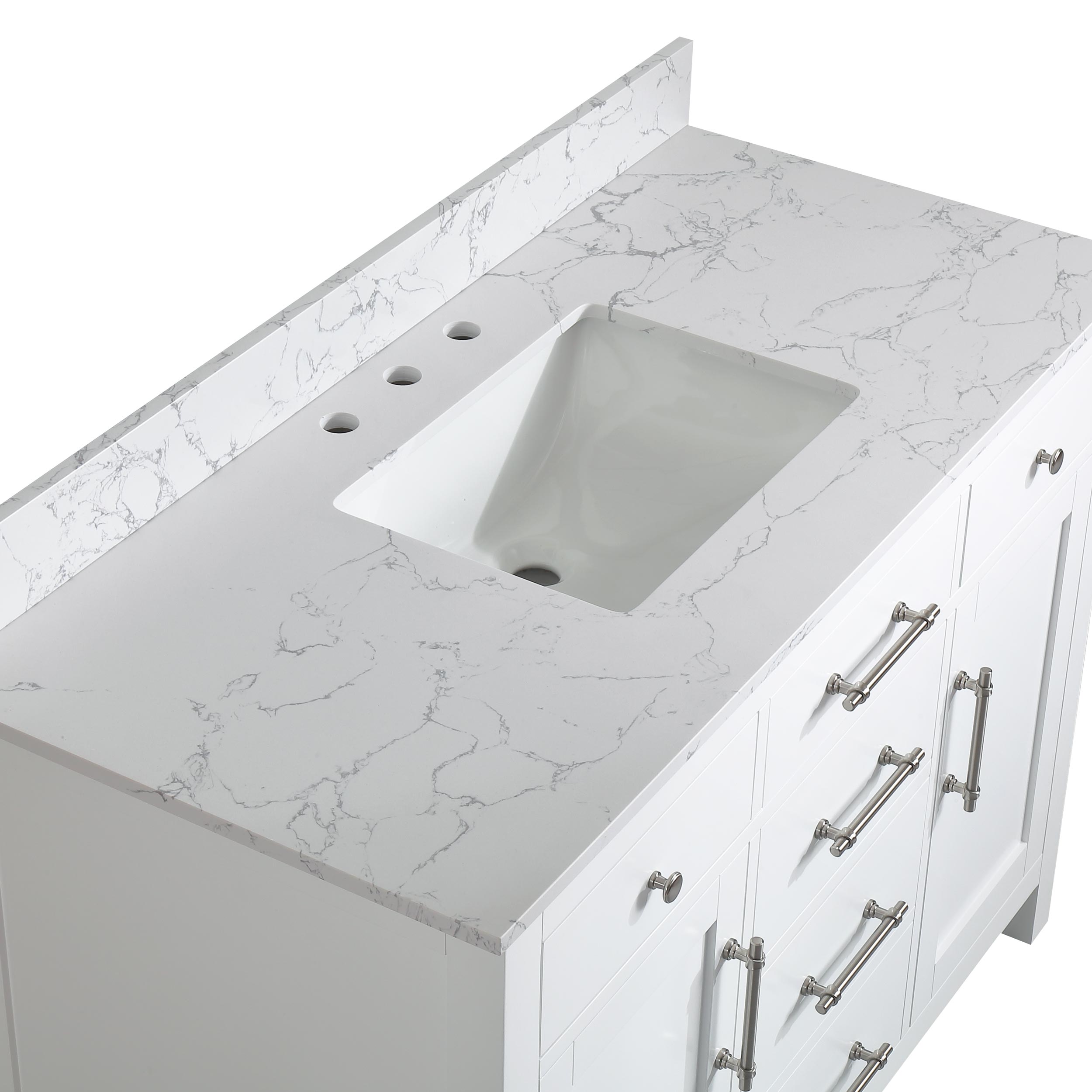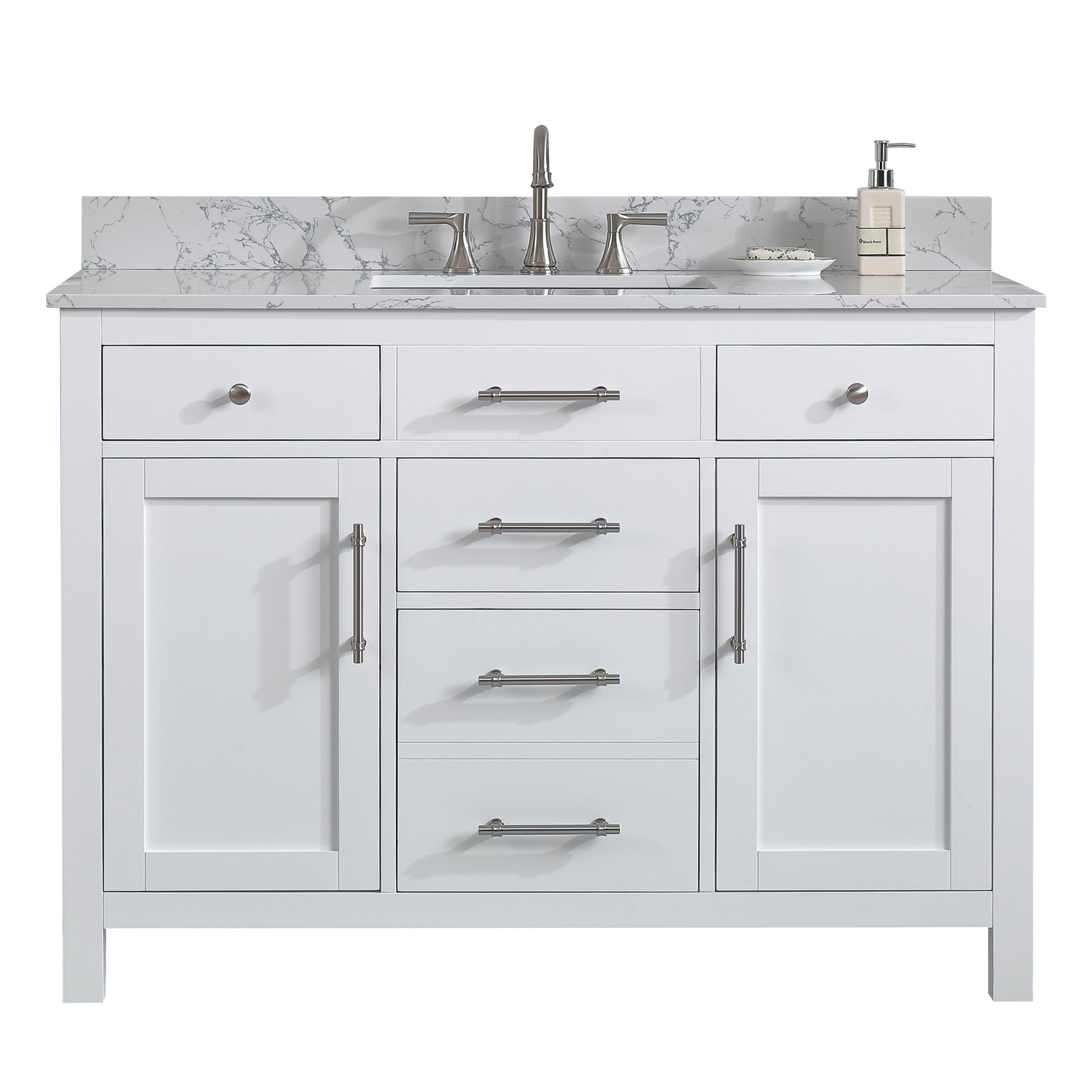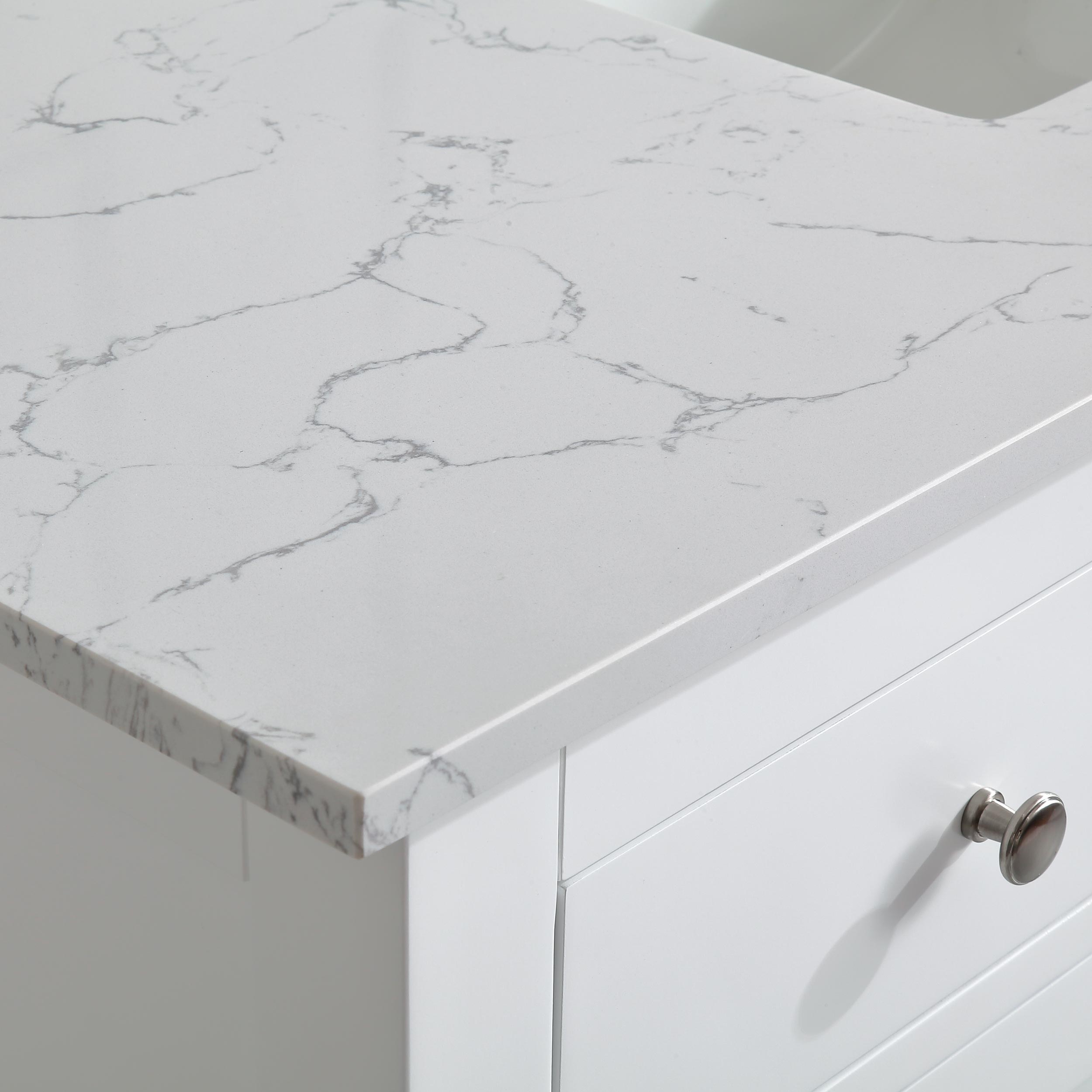 48" White Single Sink Bathroom Vanity Calacatta White Cultured Marble Top Cabine