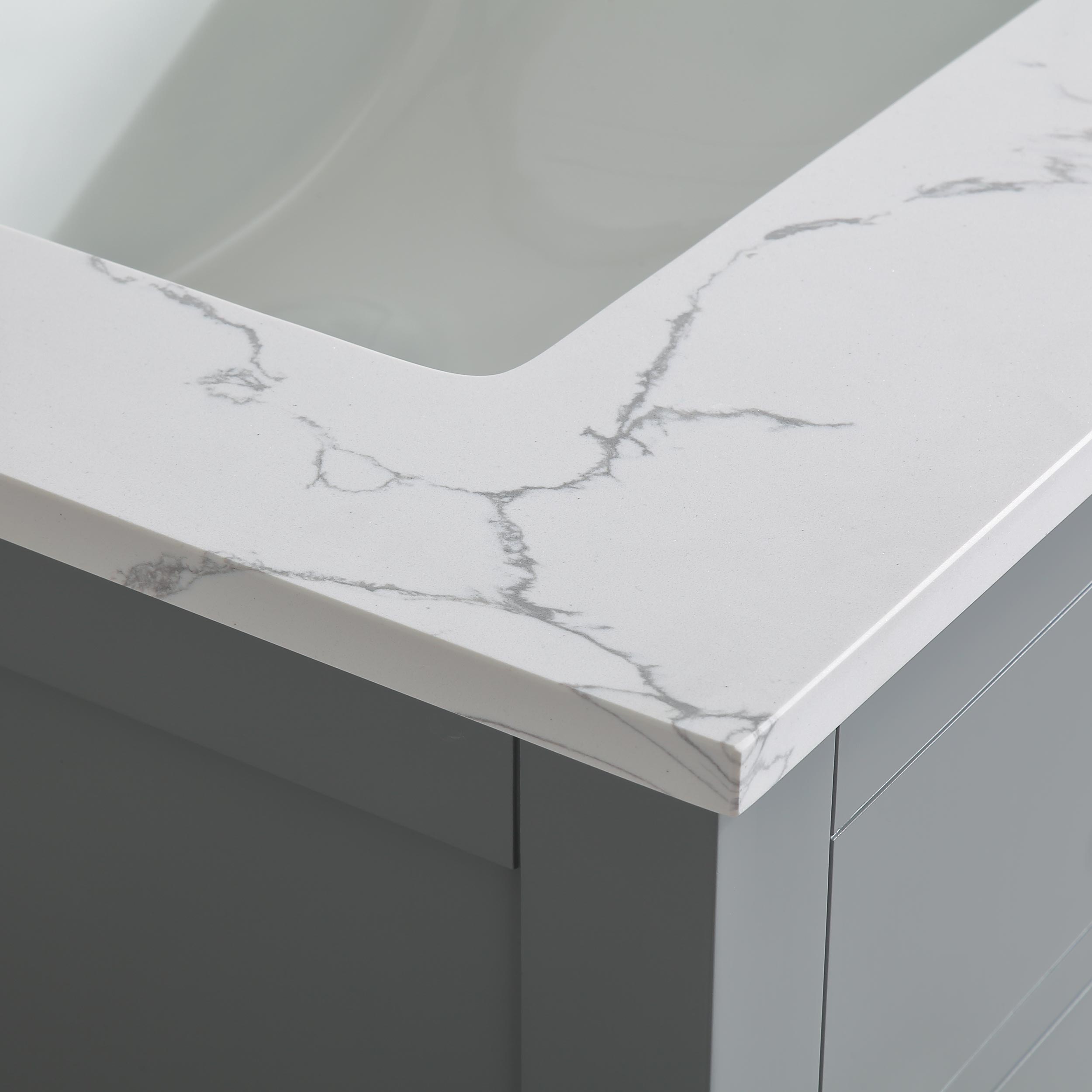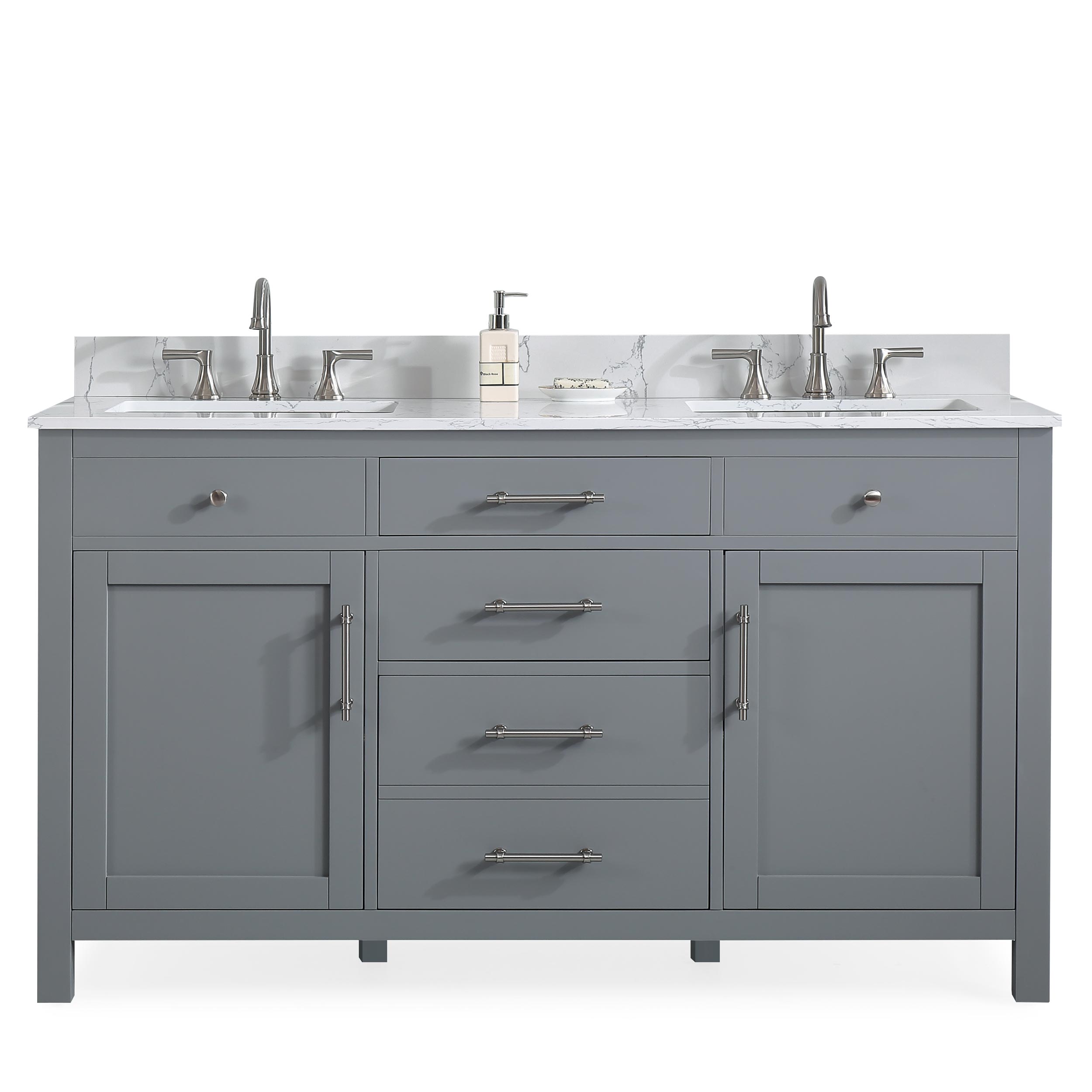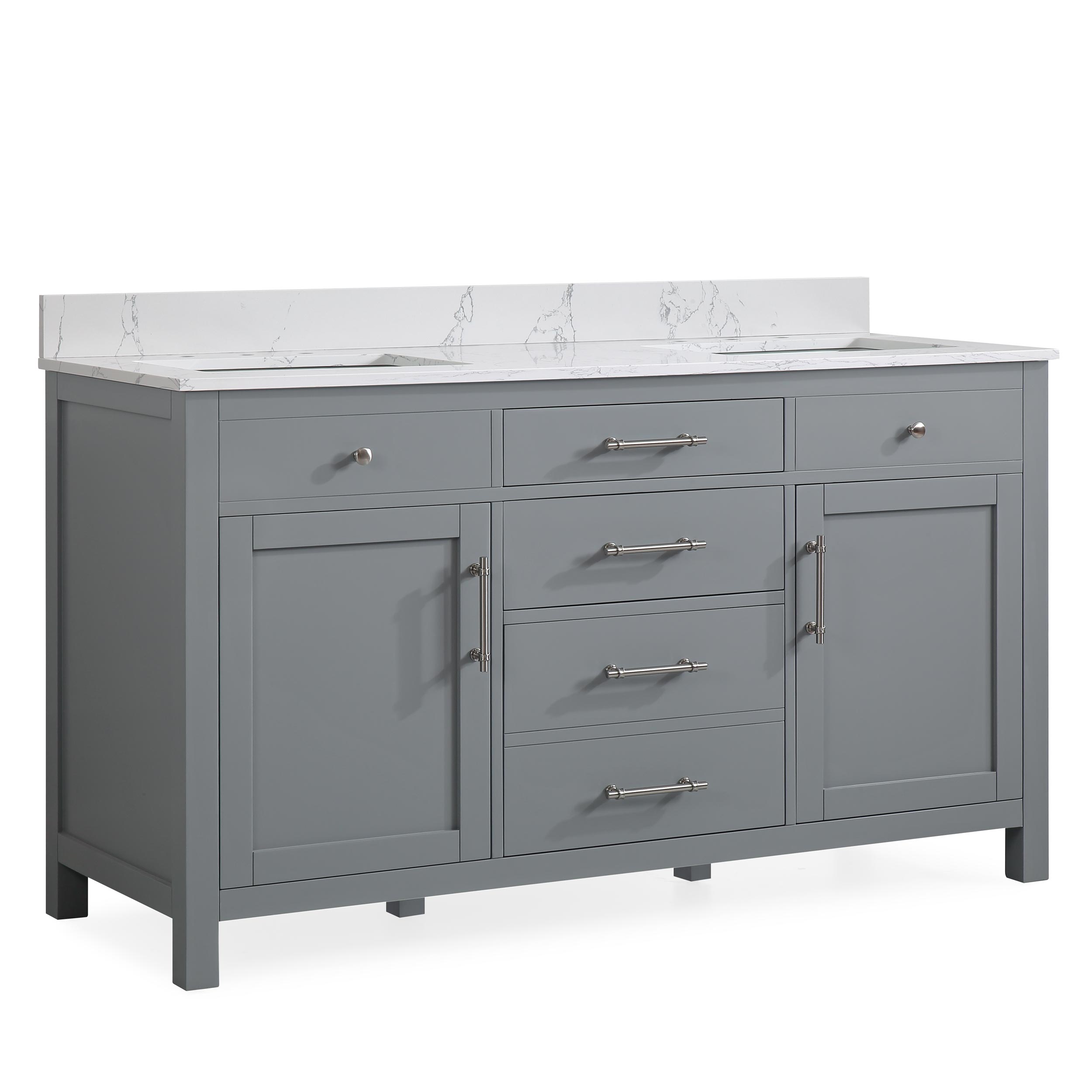 60" Gray Double Sink Bathroom Vanity Calacatta White Cultured Marble Top Cabinet