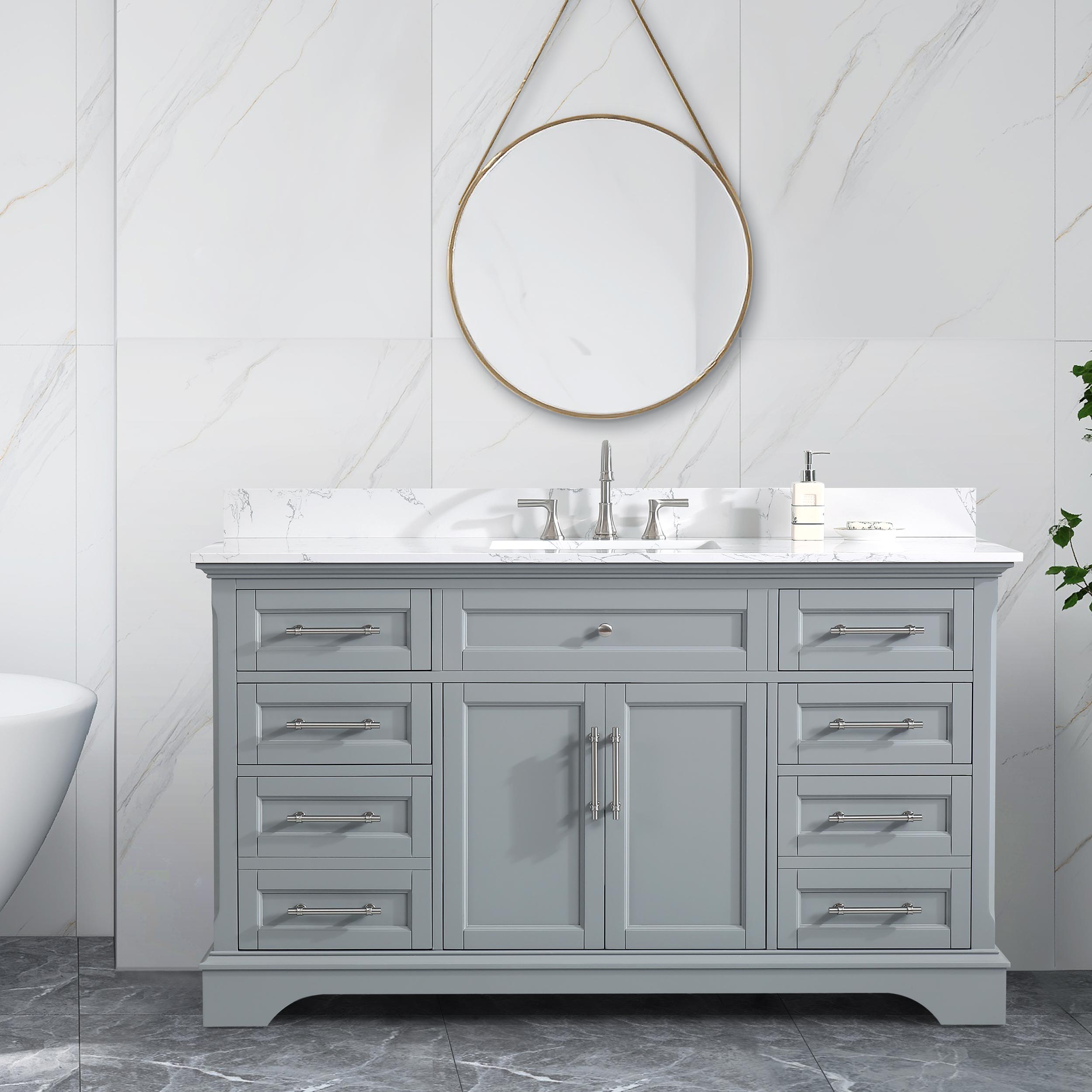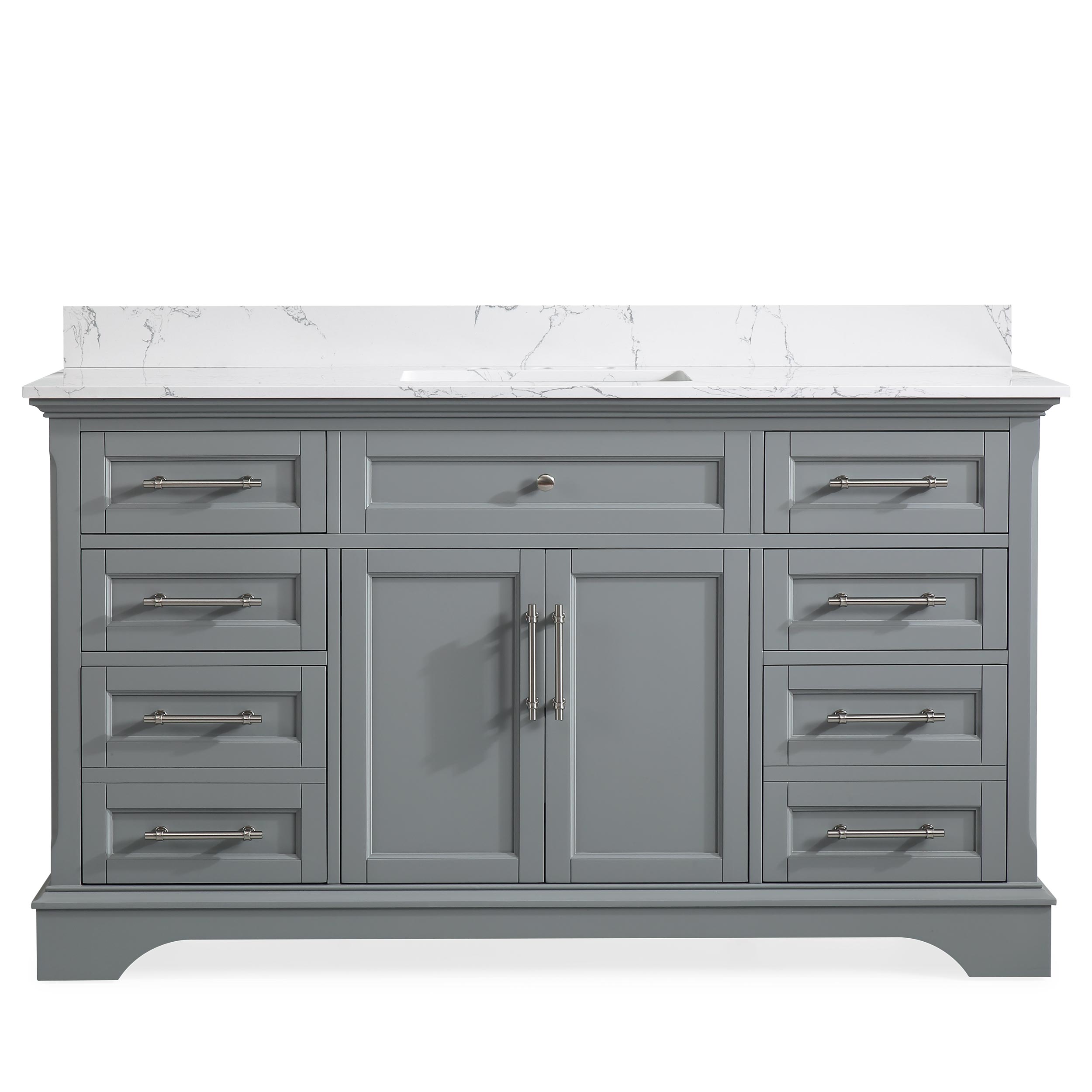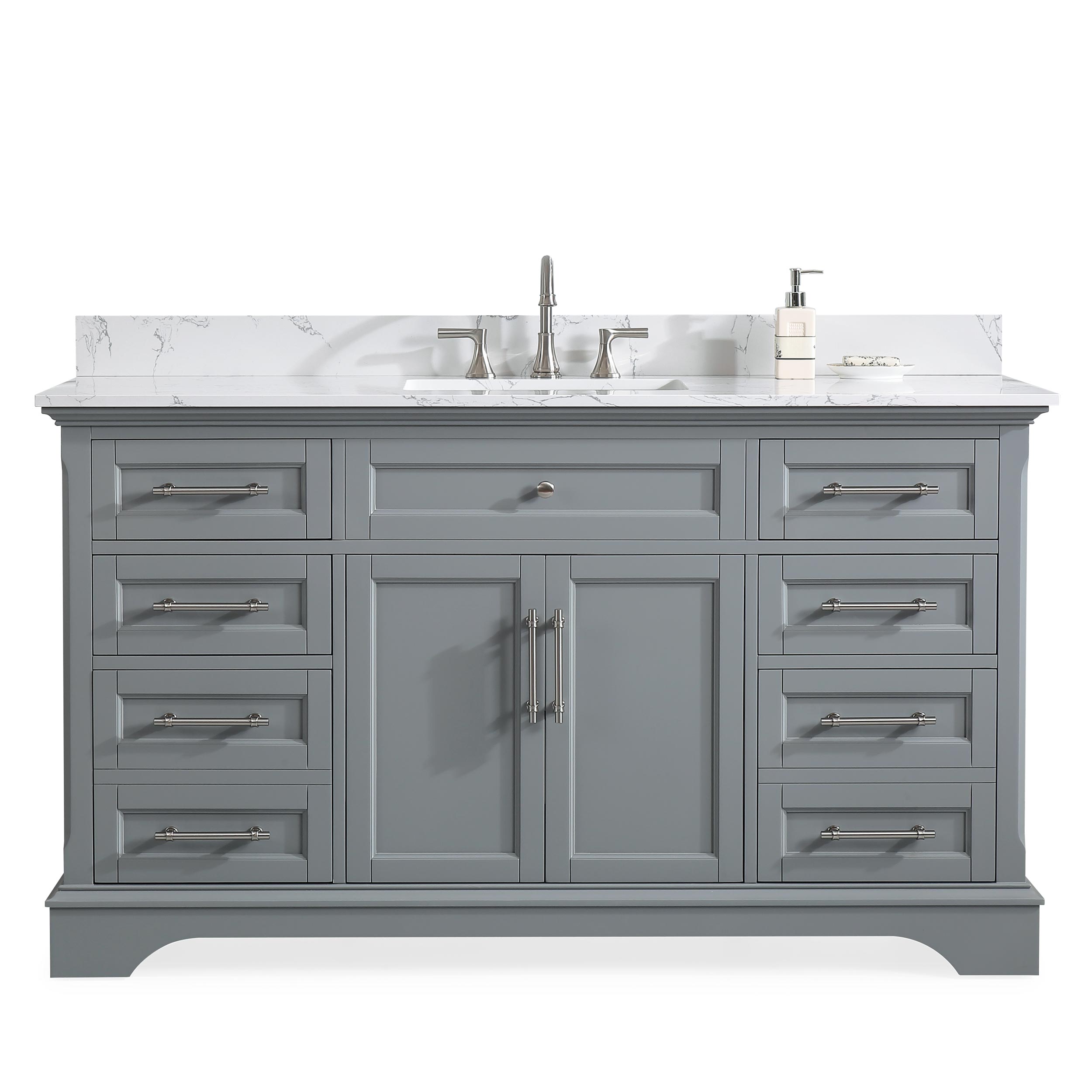 60" Gray Single Sink Bathroom Vanity Calacatta White Cultured Marble Top Cabinet