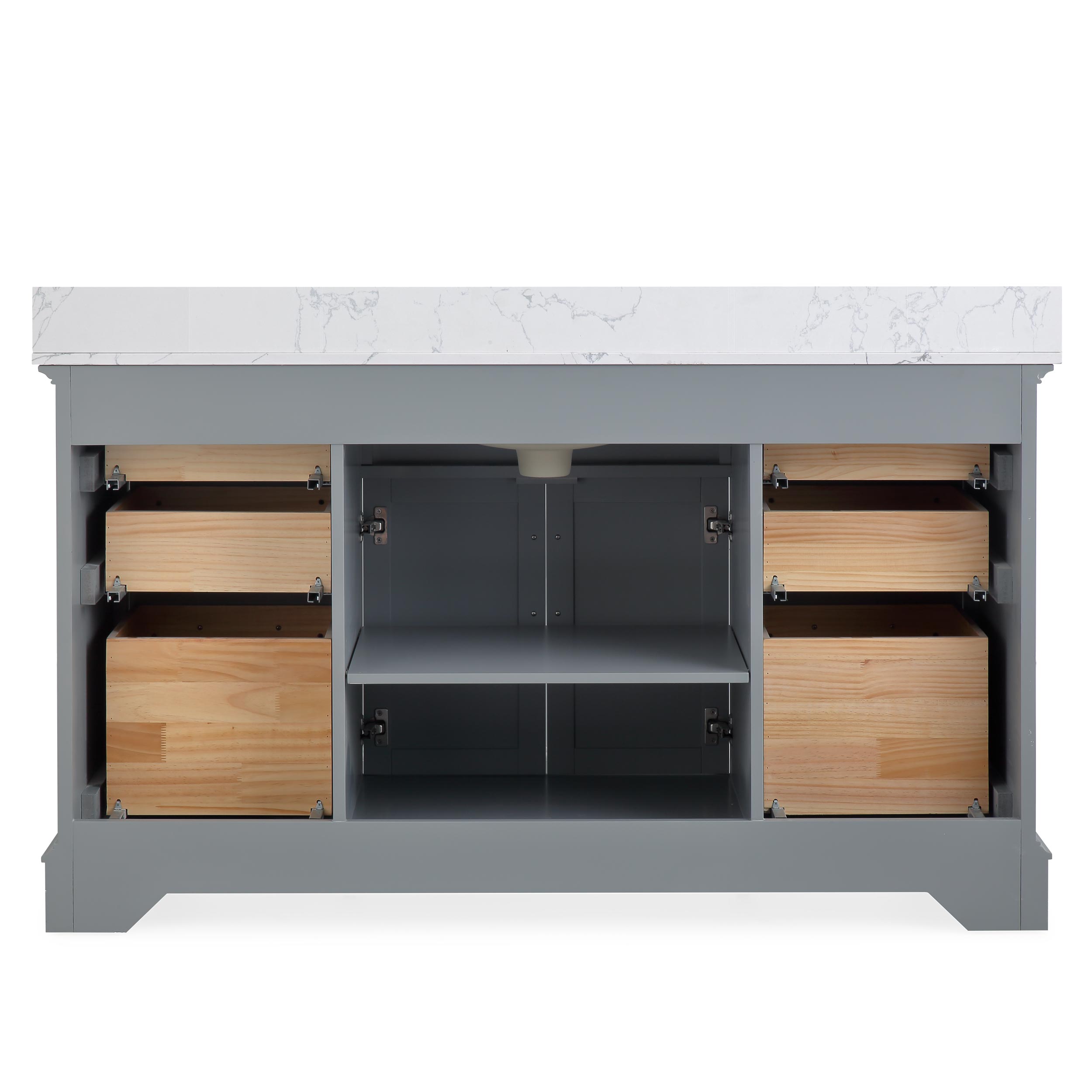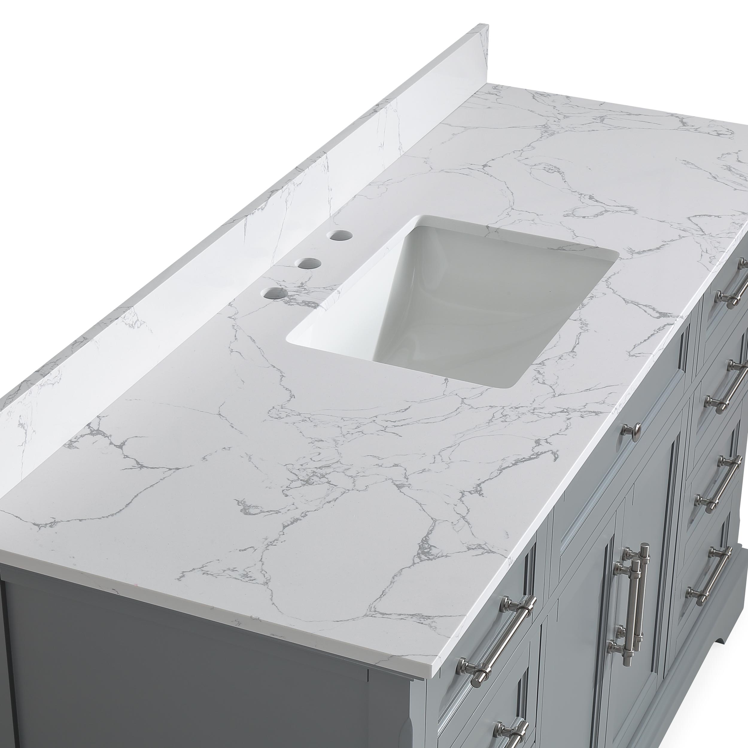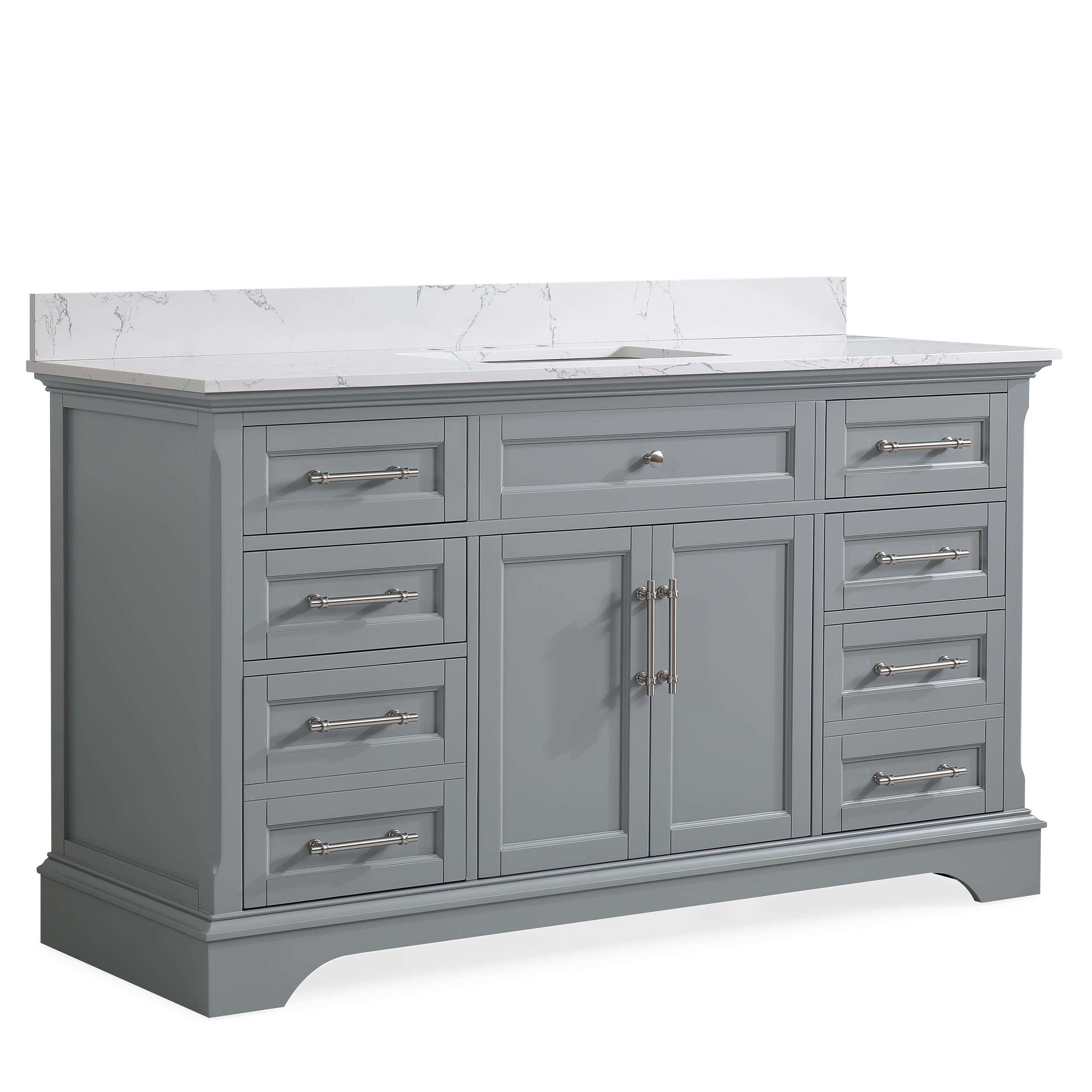 60" Gray Single Sink Bathroom Vanity Calacatta White Cultured Marble Top Cabinet