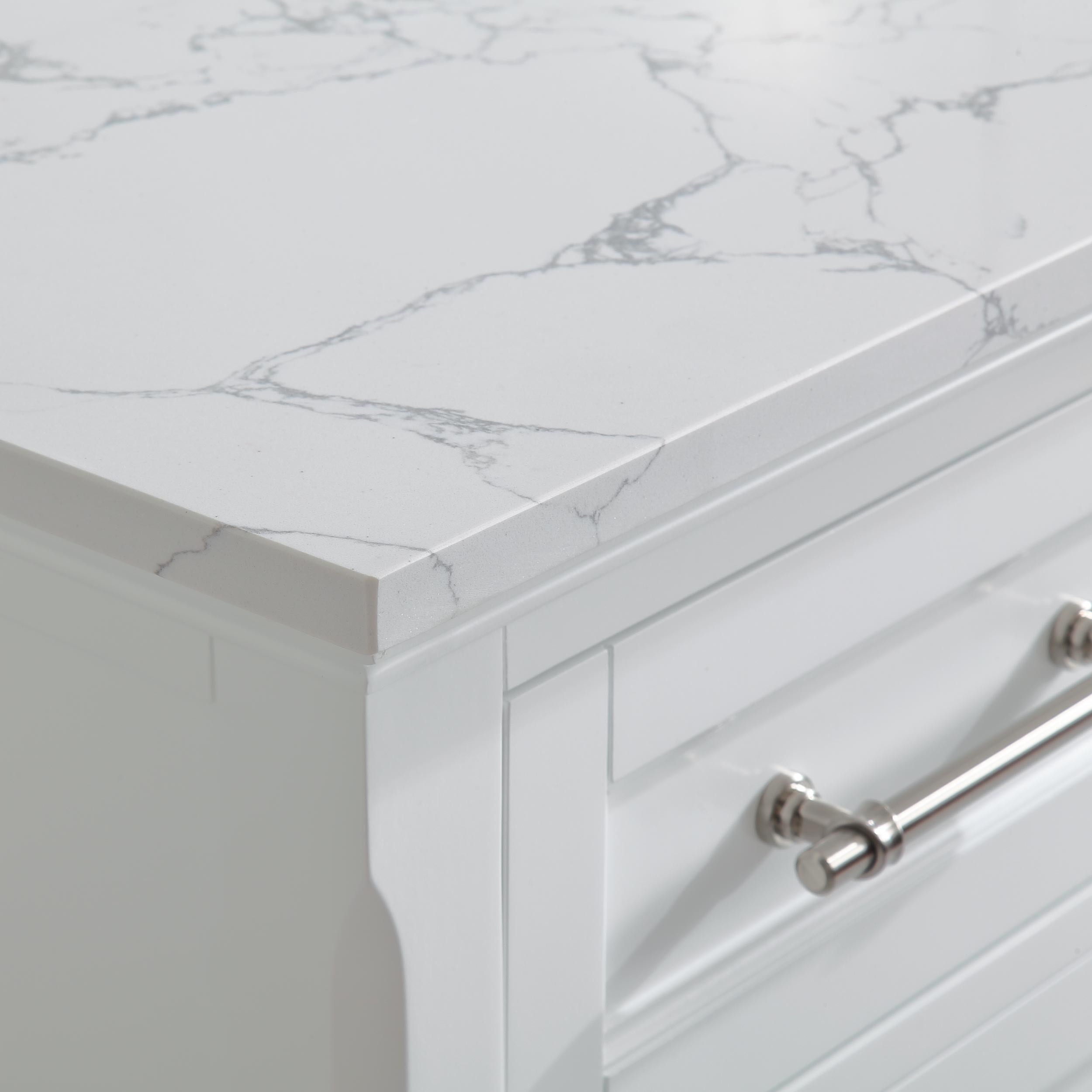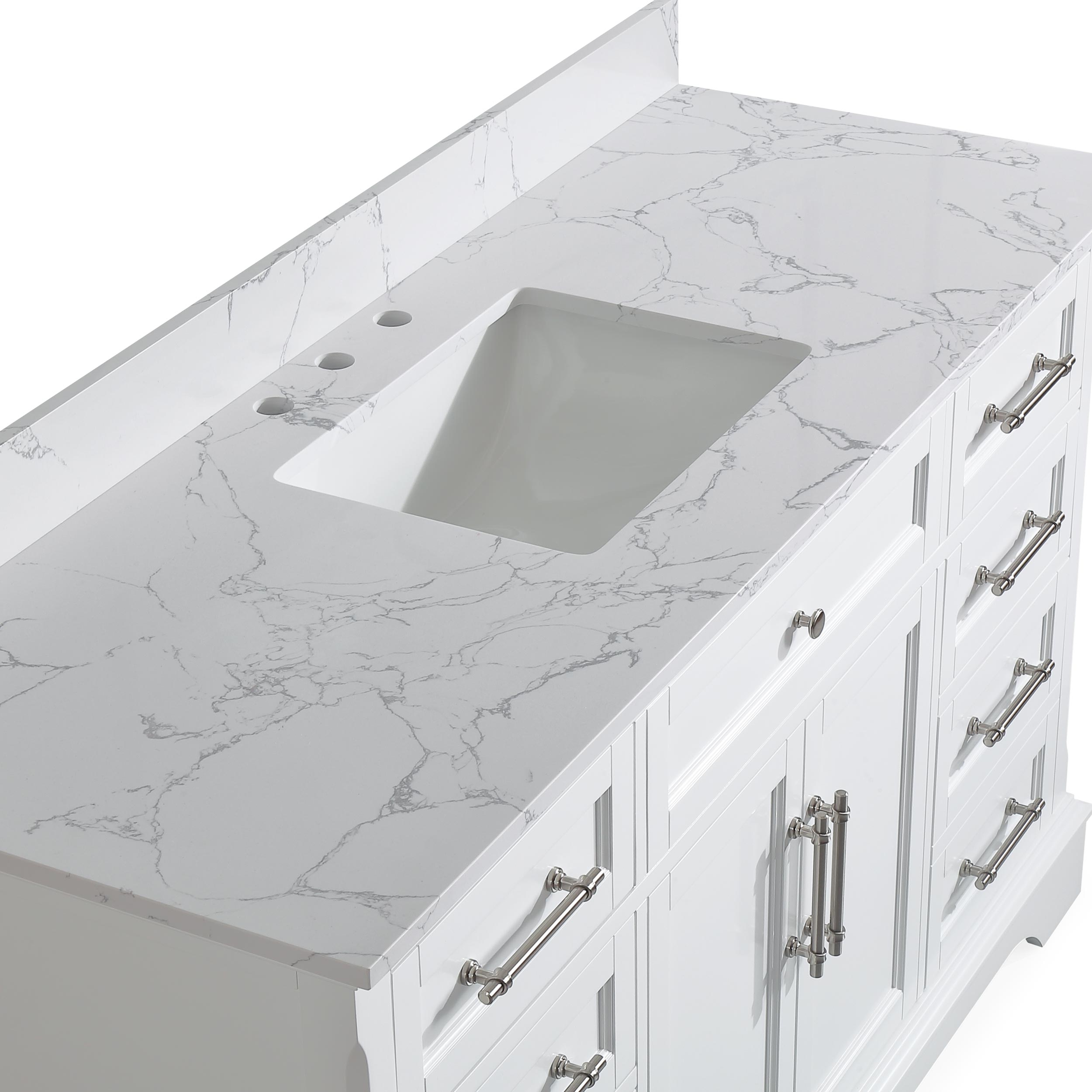 60" White Single Sink Bathroom Vanity Calacatta White Cultured Marble Top Cabine