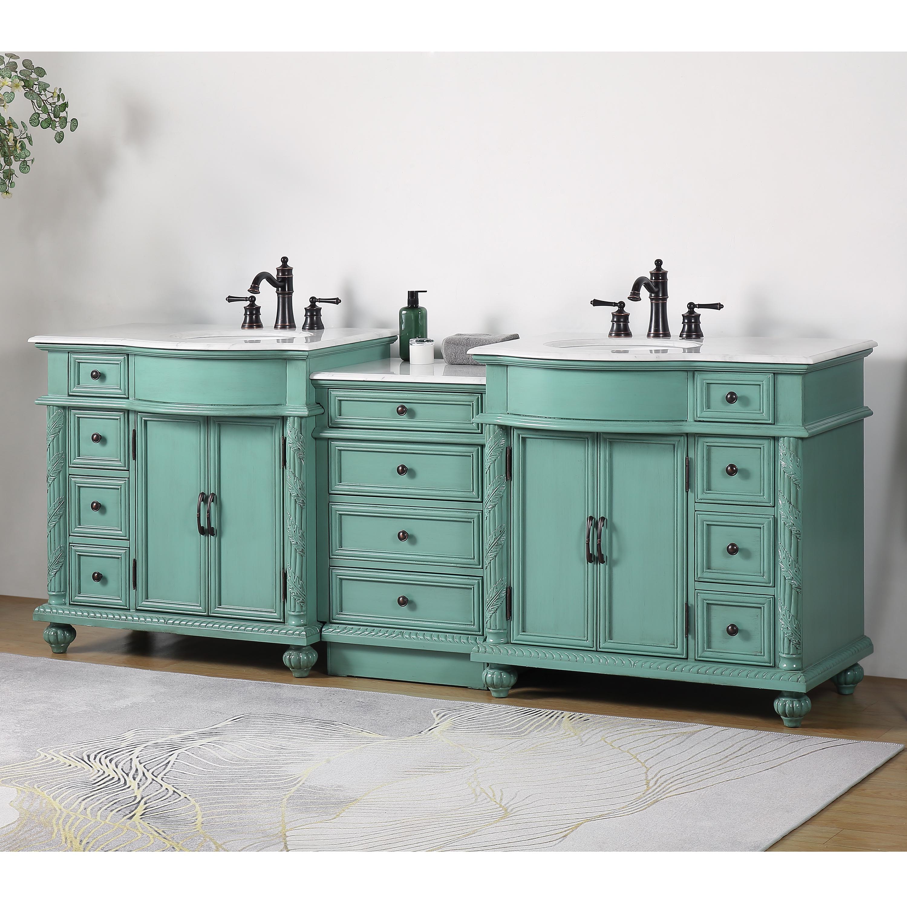 90.25" Vintage Green Bathroom Cabinet Carrara Top Double Sink Vanity