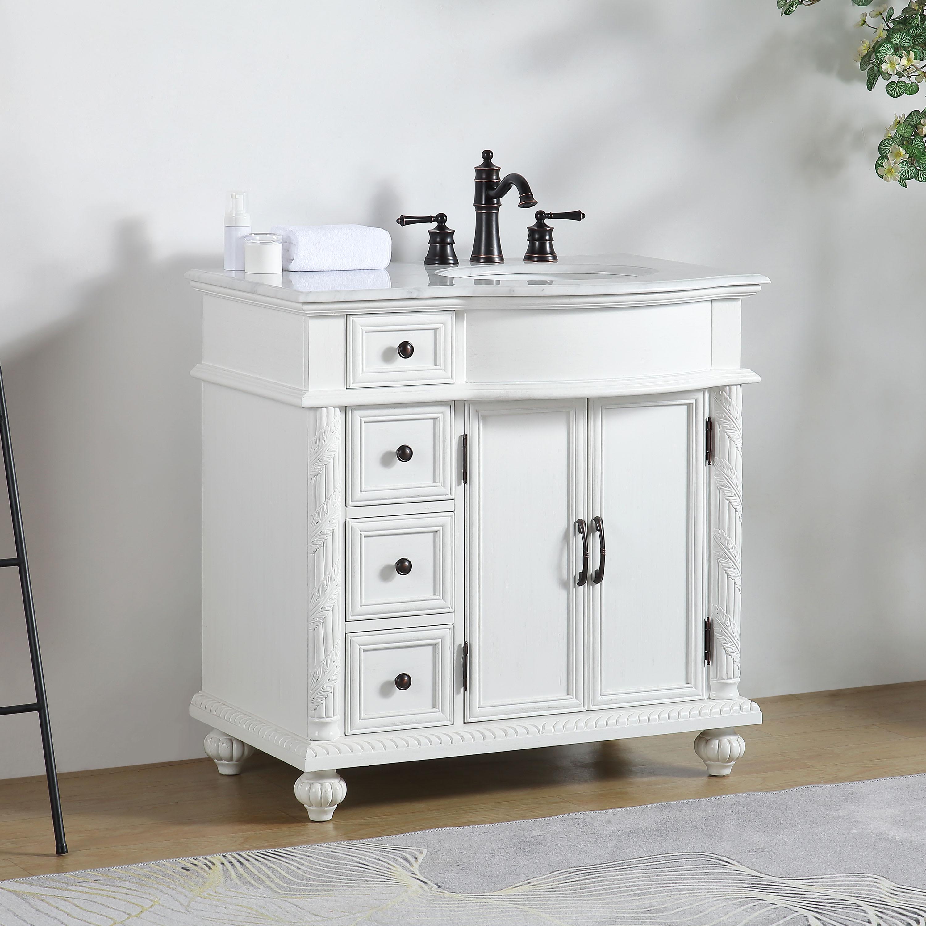 36" Carrara White Marble Top Bathroom Single Vanity Cabinet - Right Sink