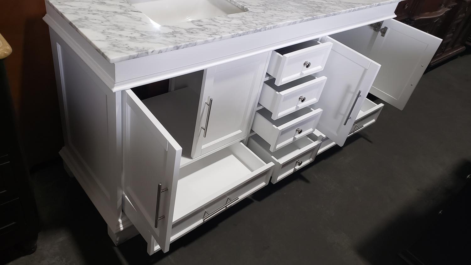 72" Double Sink Vanity Carrara White Marble Top Cabinet