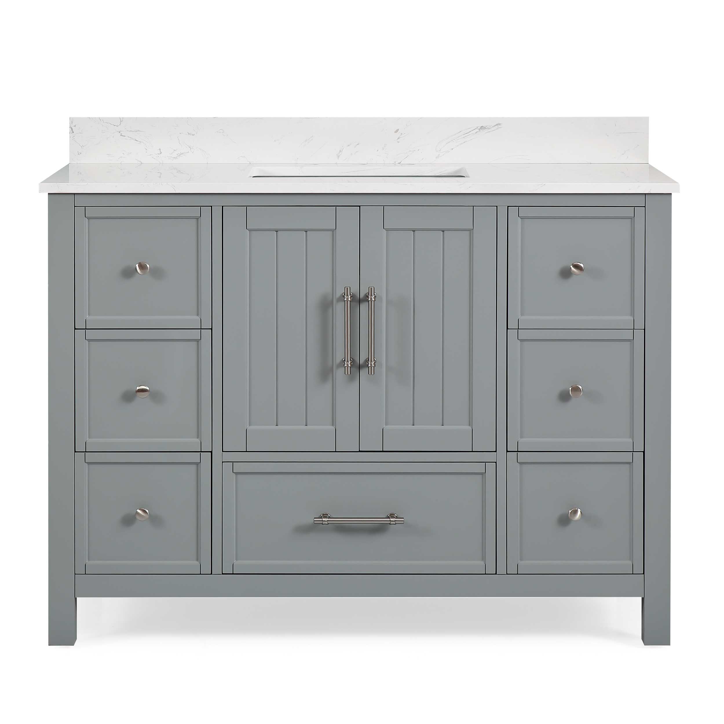 48" Single Sink Vanity Cultured Marble Top Bathroom Cabinet
