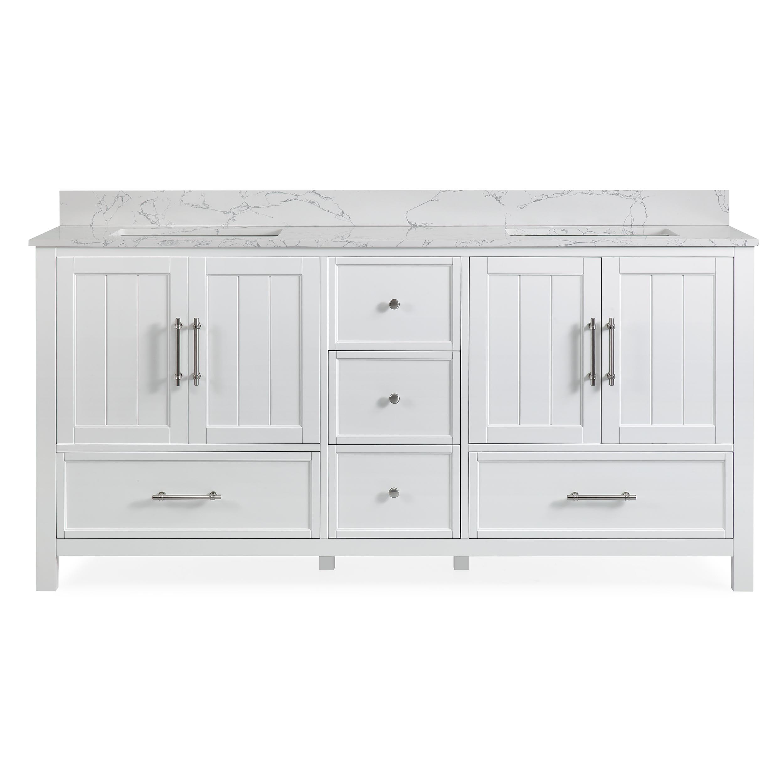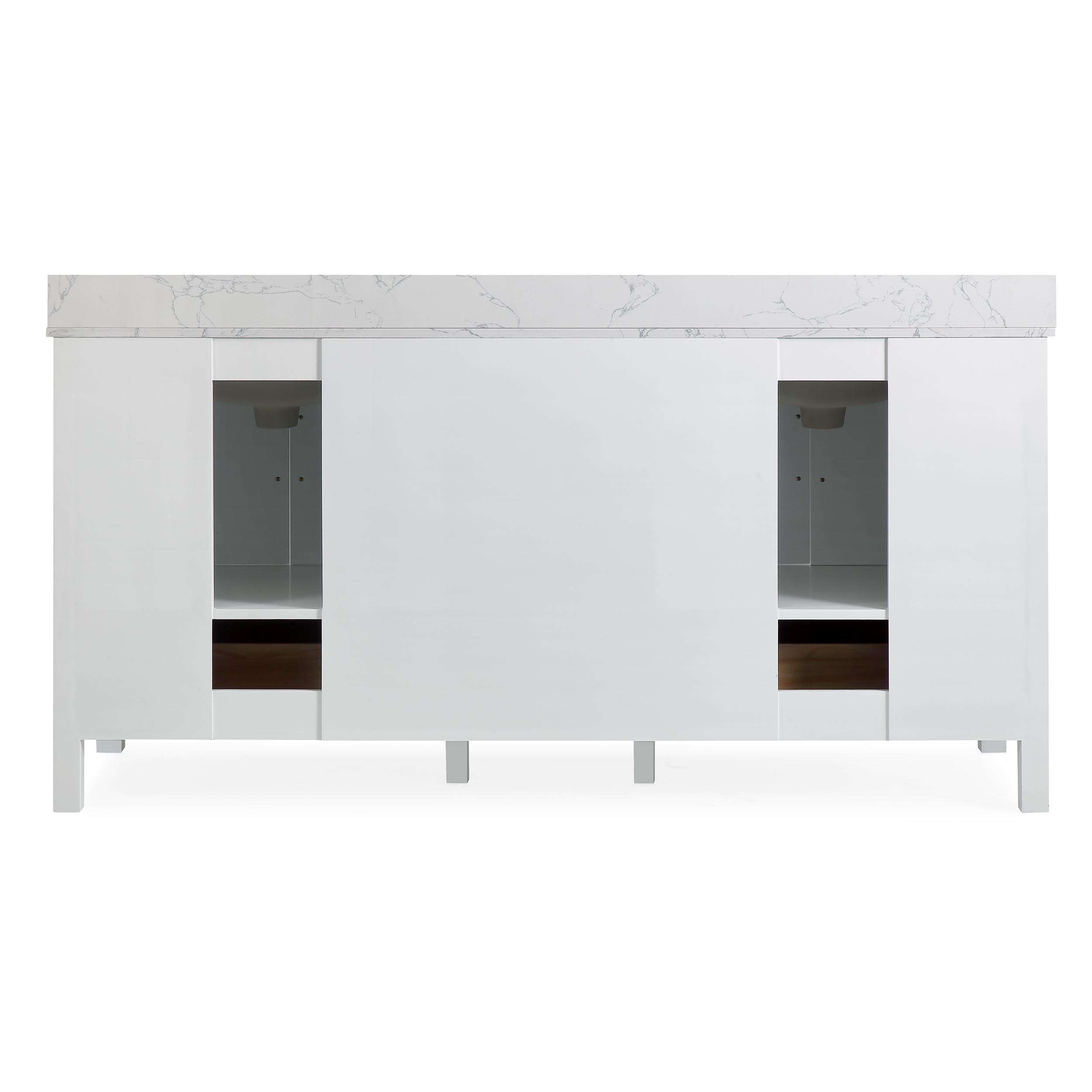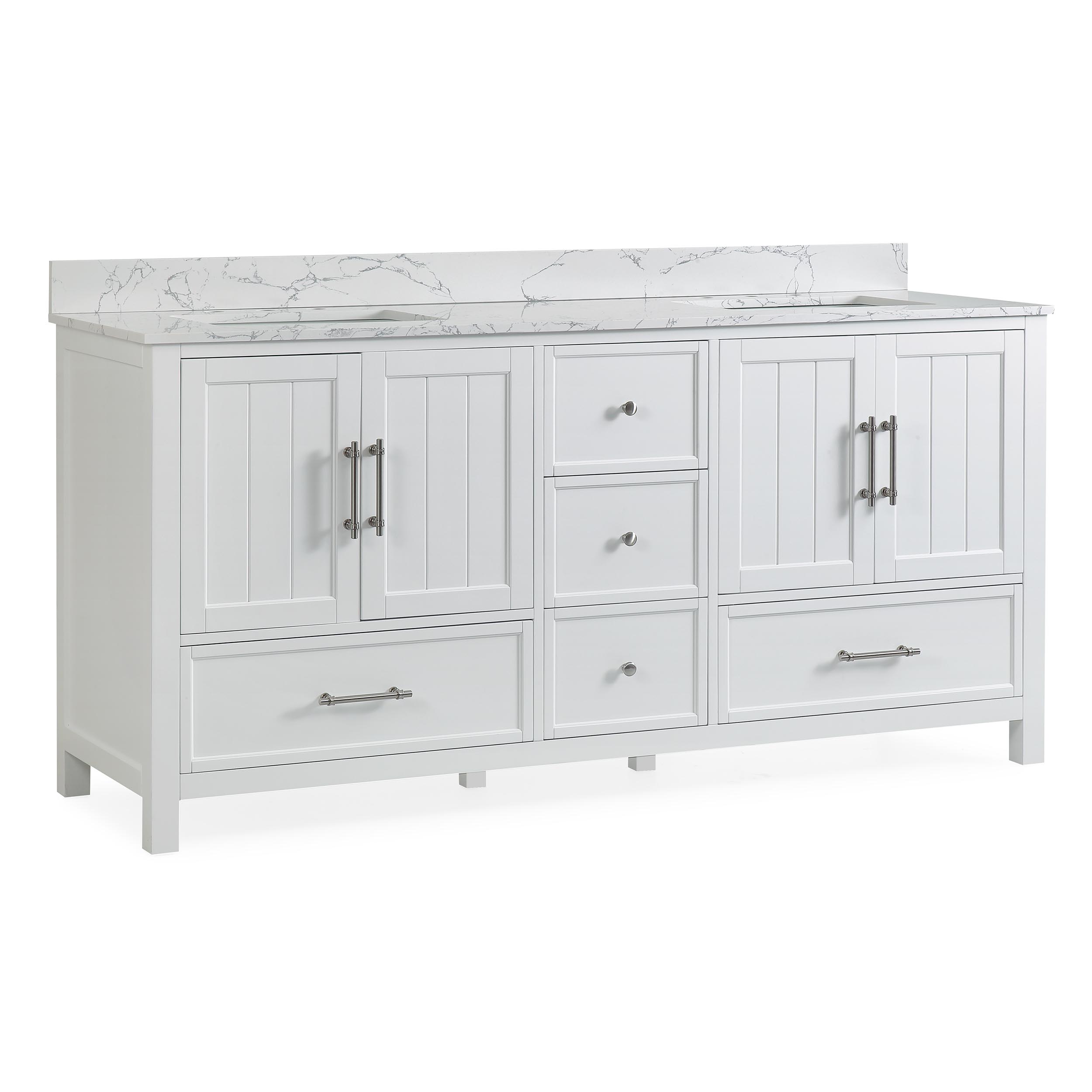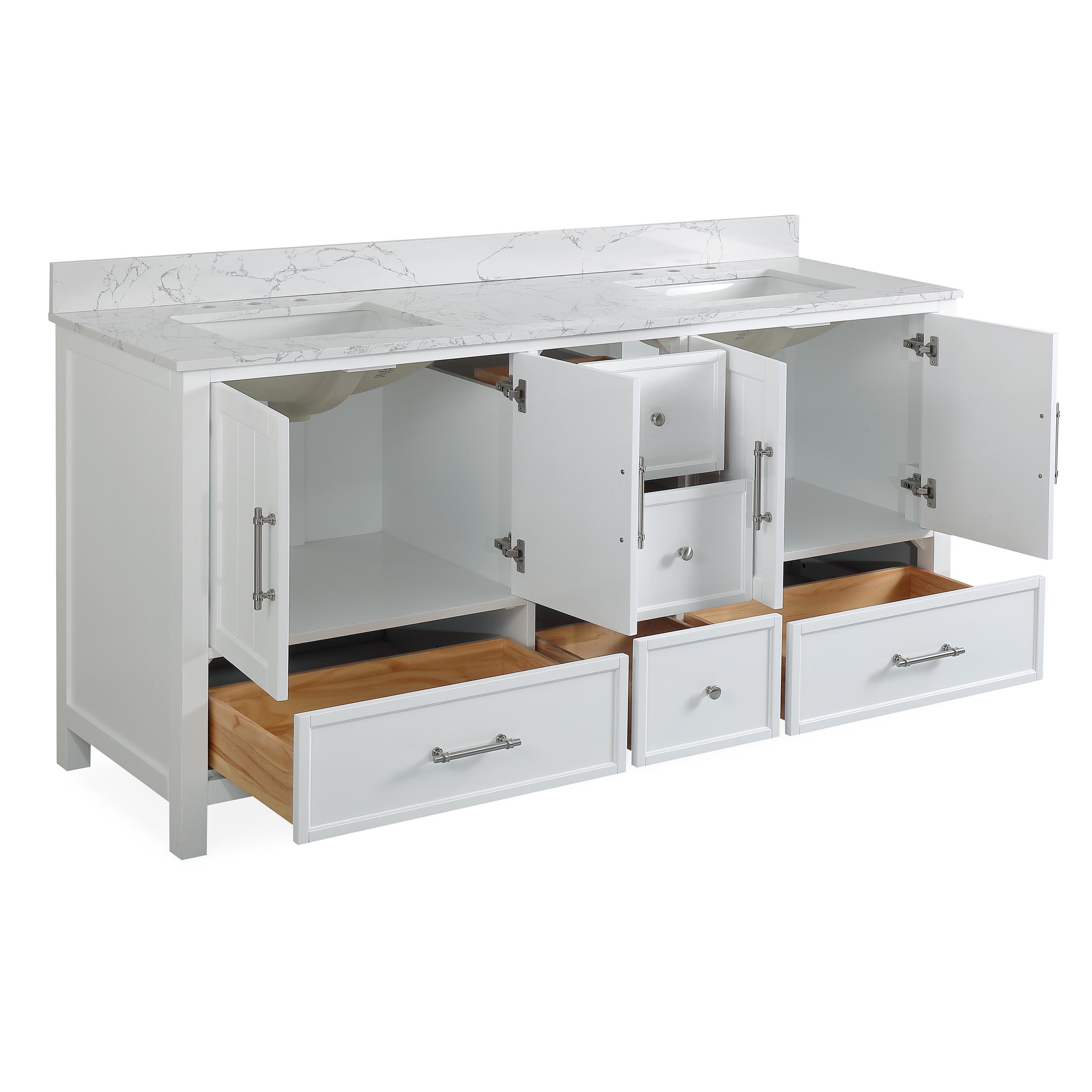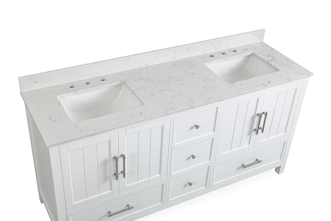 72" Double Sink Vanity Cultured Marble Top Bathroom Cabinet