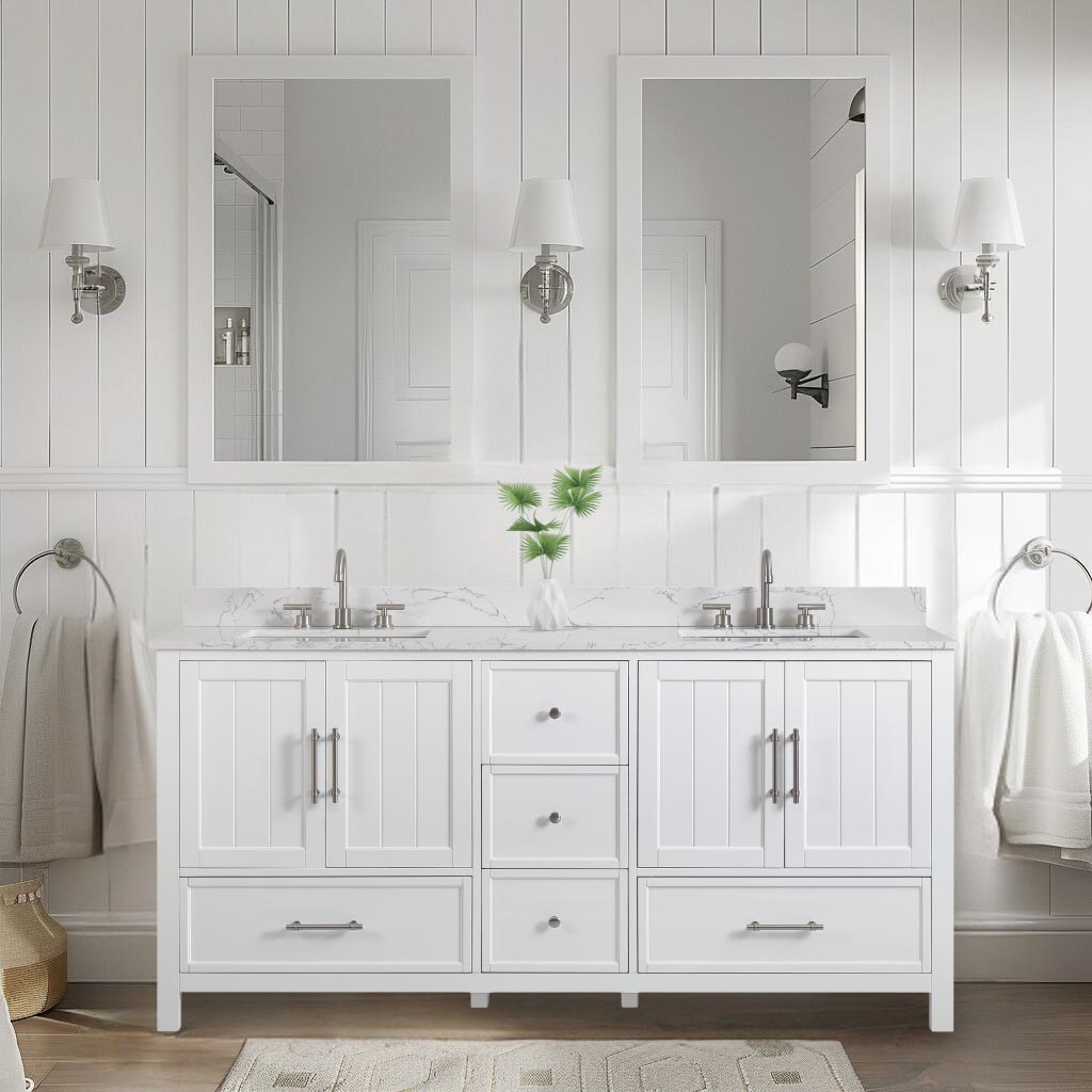Made of Cultured Marble Top with Solid Wood Structure & CARB Ph2 Certified Panels