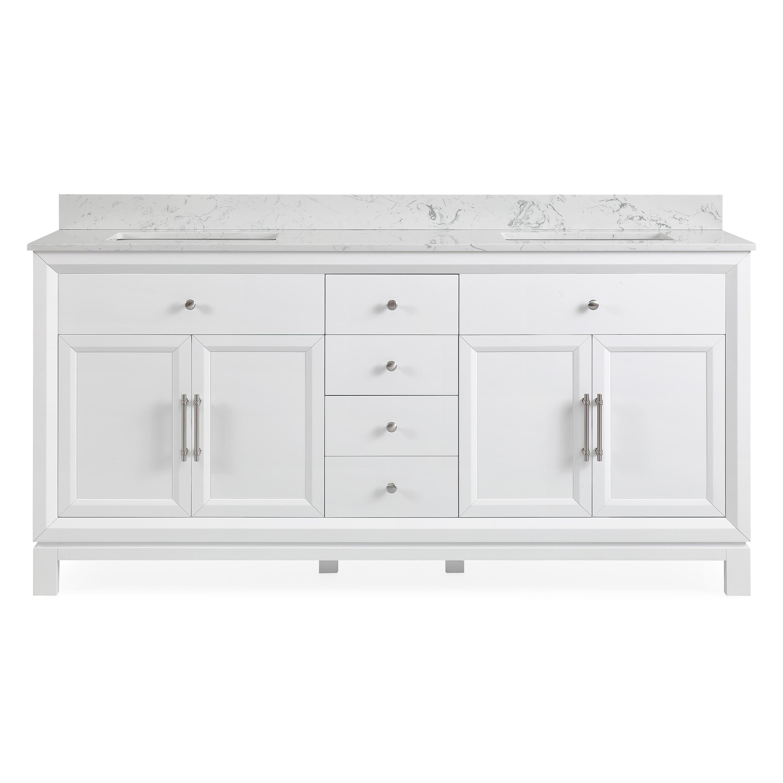 72" Double Sink Vanity Cultured Marble Top Bathroom Cabinet