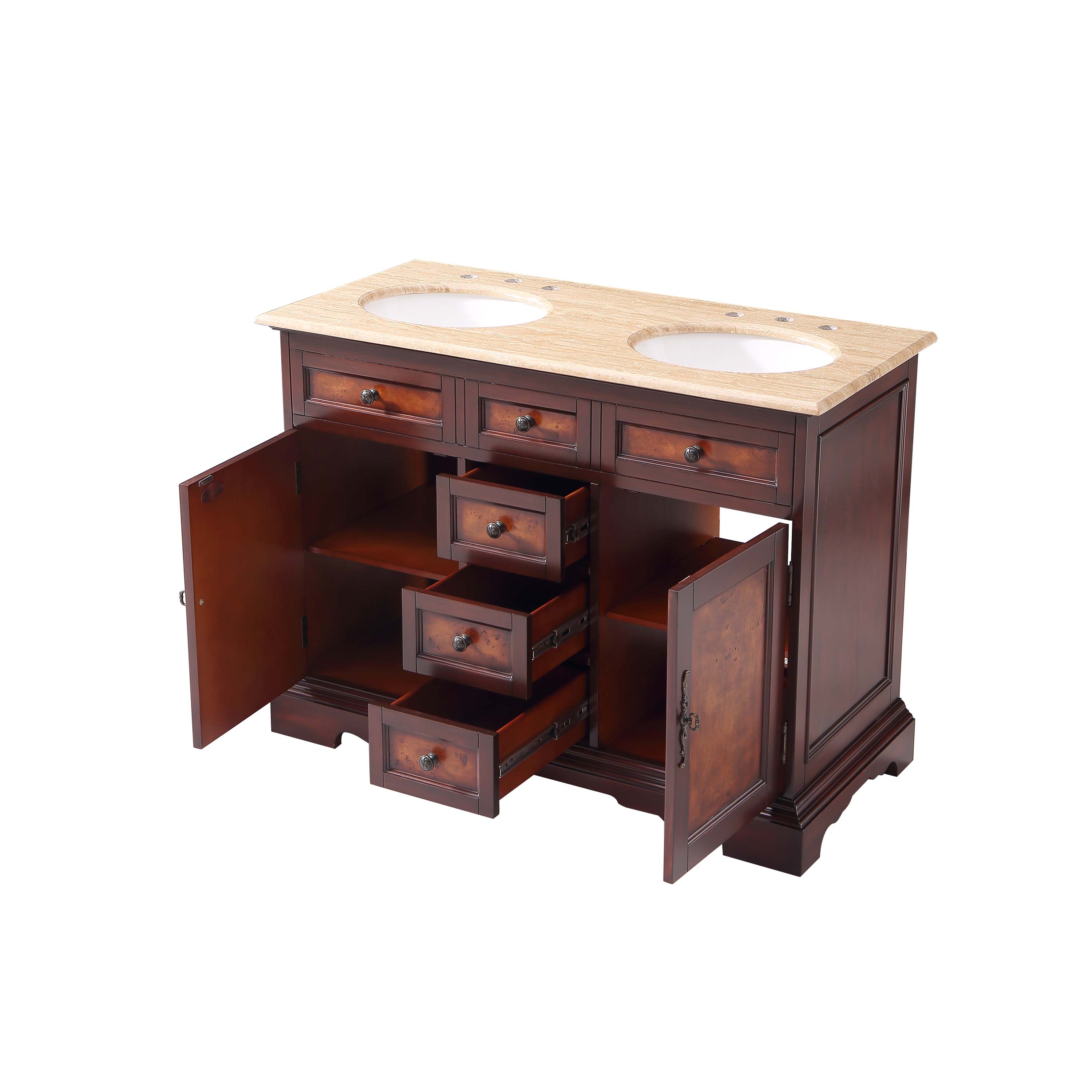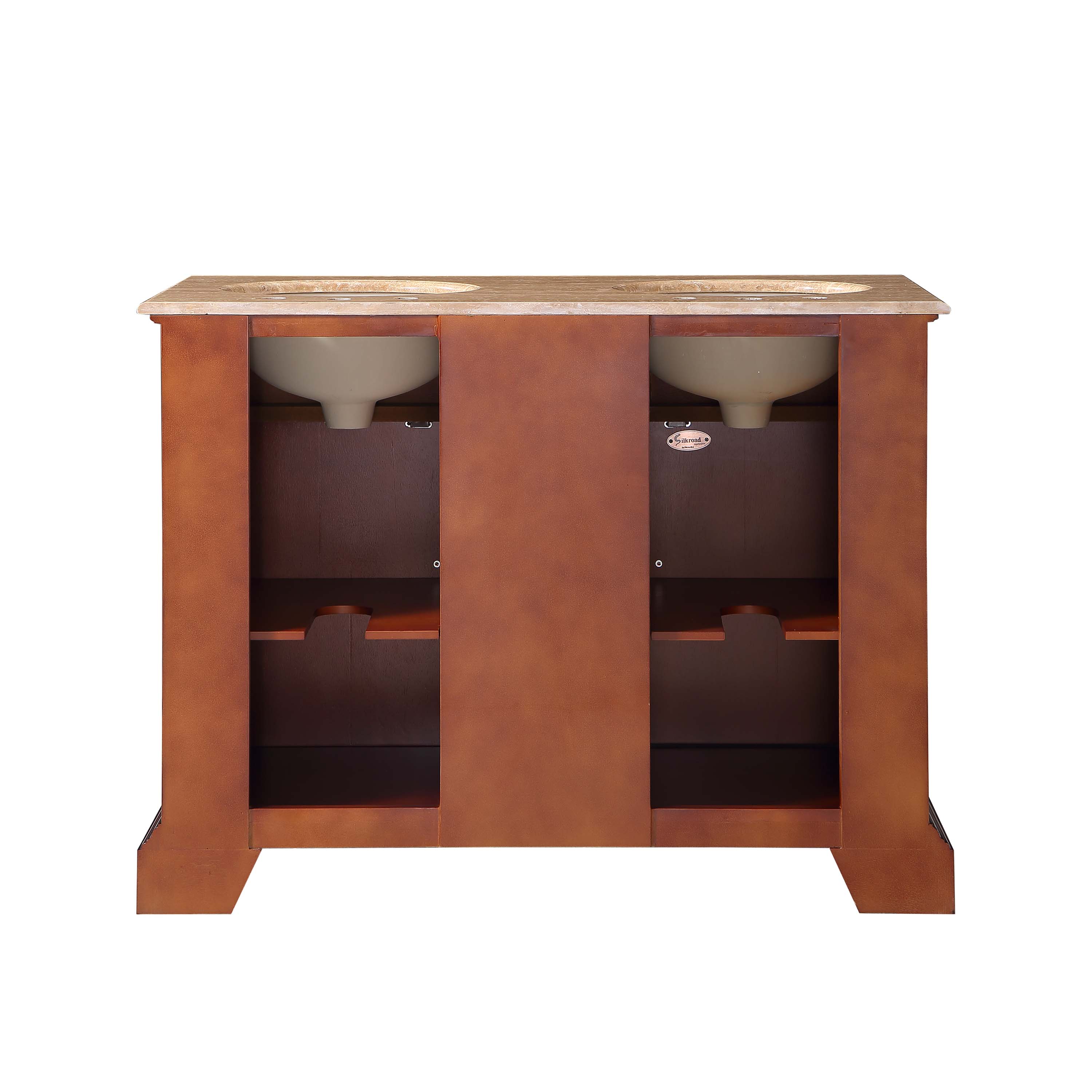 48" Double Sink Vanity Travertine Stone Top Cabinet