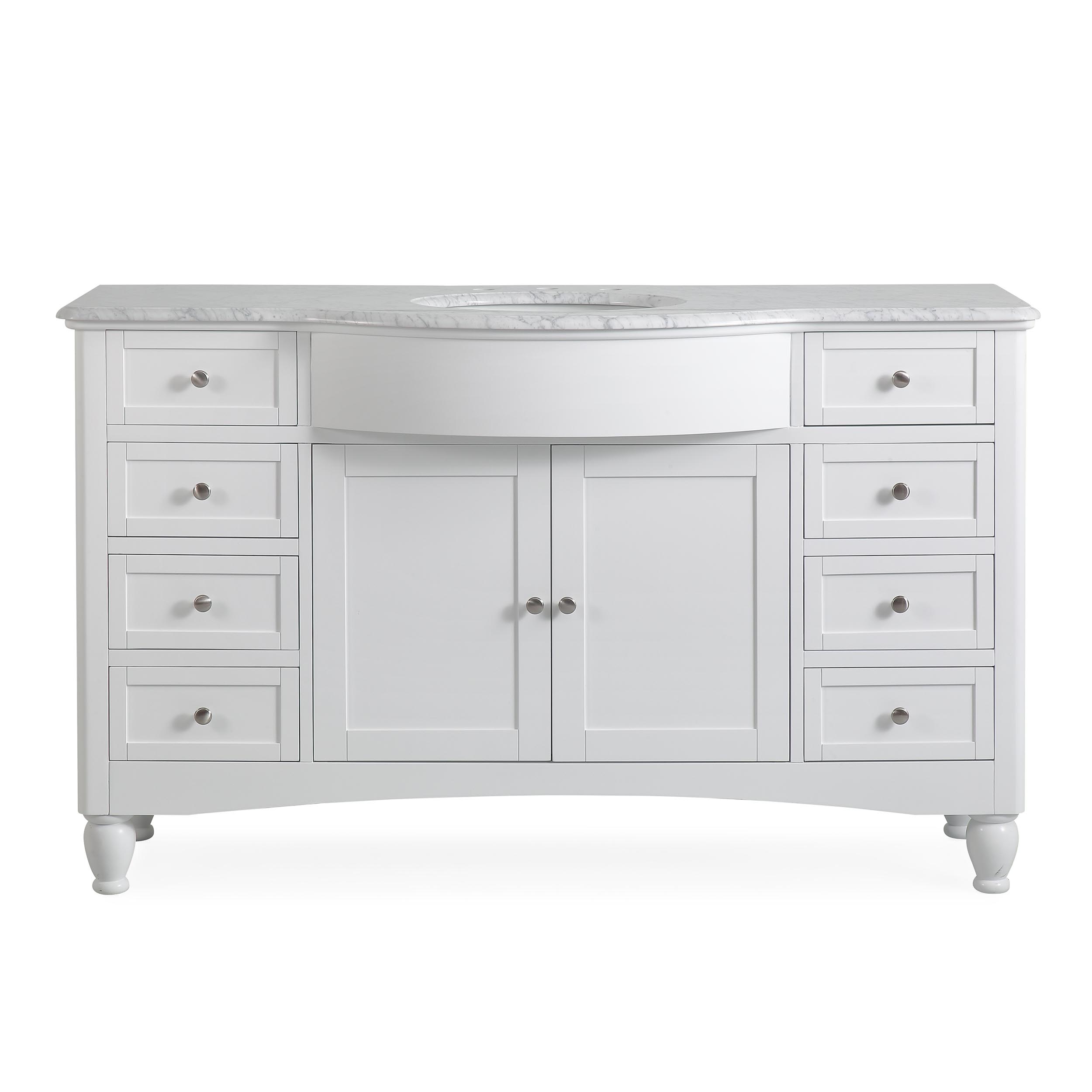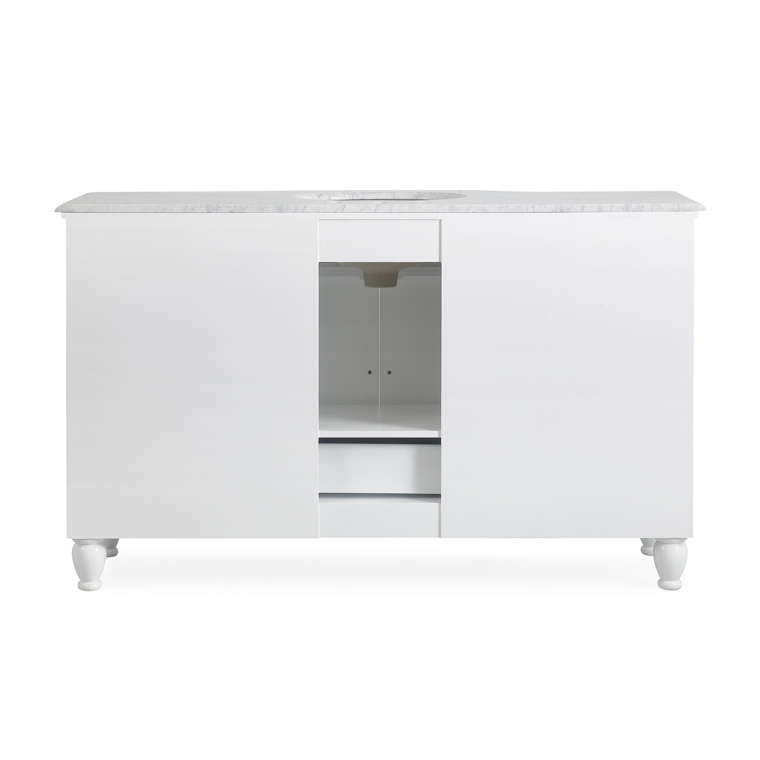 58" Single Sink Vanity Carrara White Marble Top Cabinet