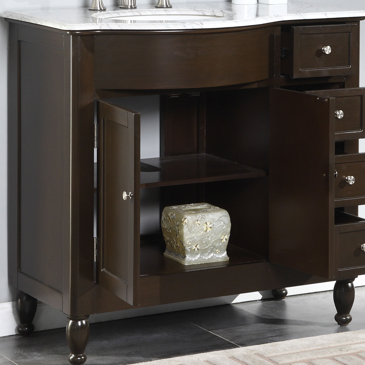 36" Single Sink Vanity Carrara White Marble Top Cabinet