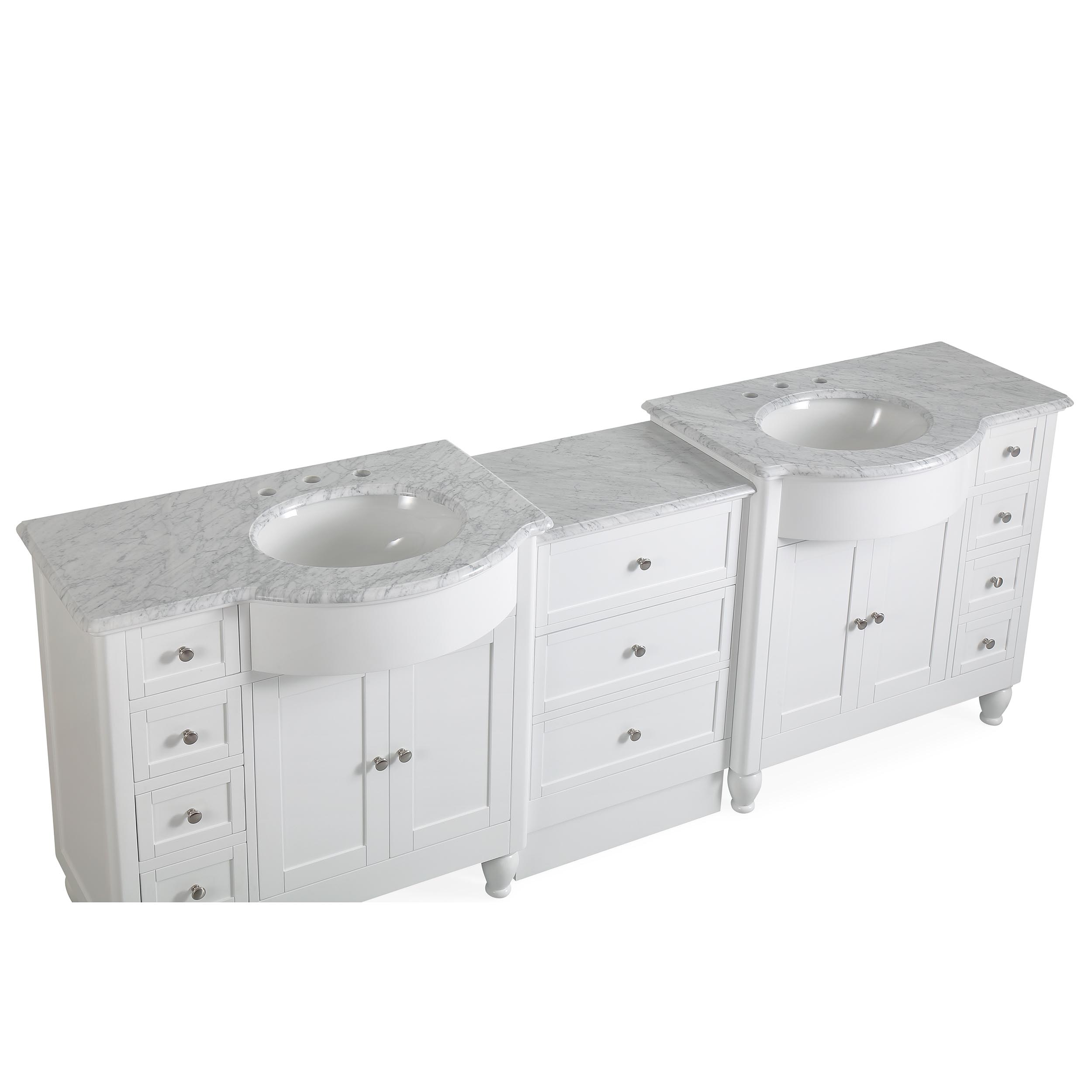 91" Double Sink Vanity Carrara White Marble Top Cabinet