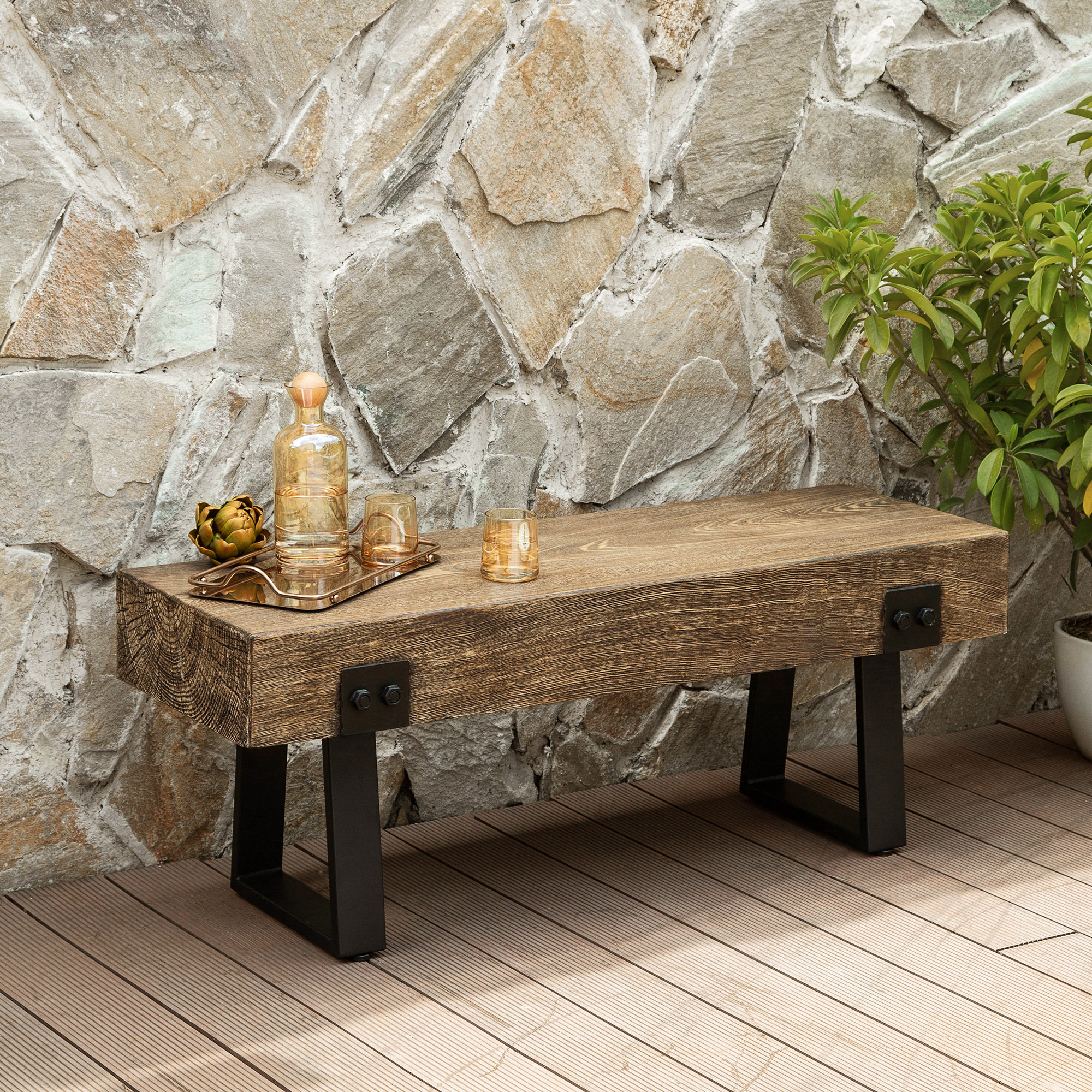 - Low maintenance Wood-look bench with steel legs