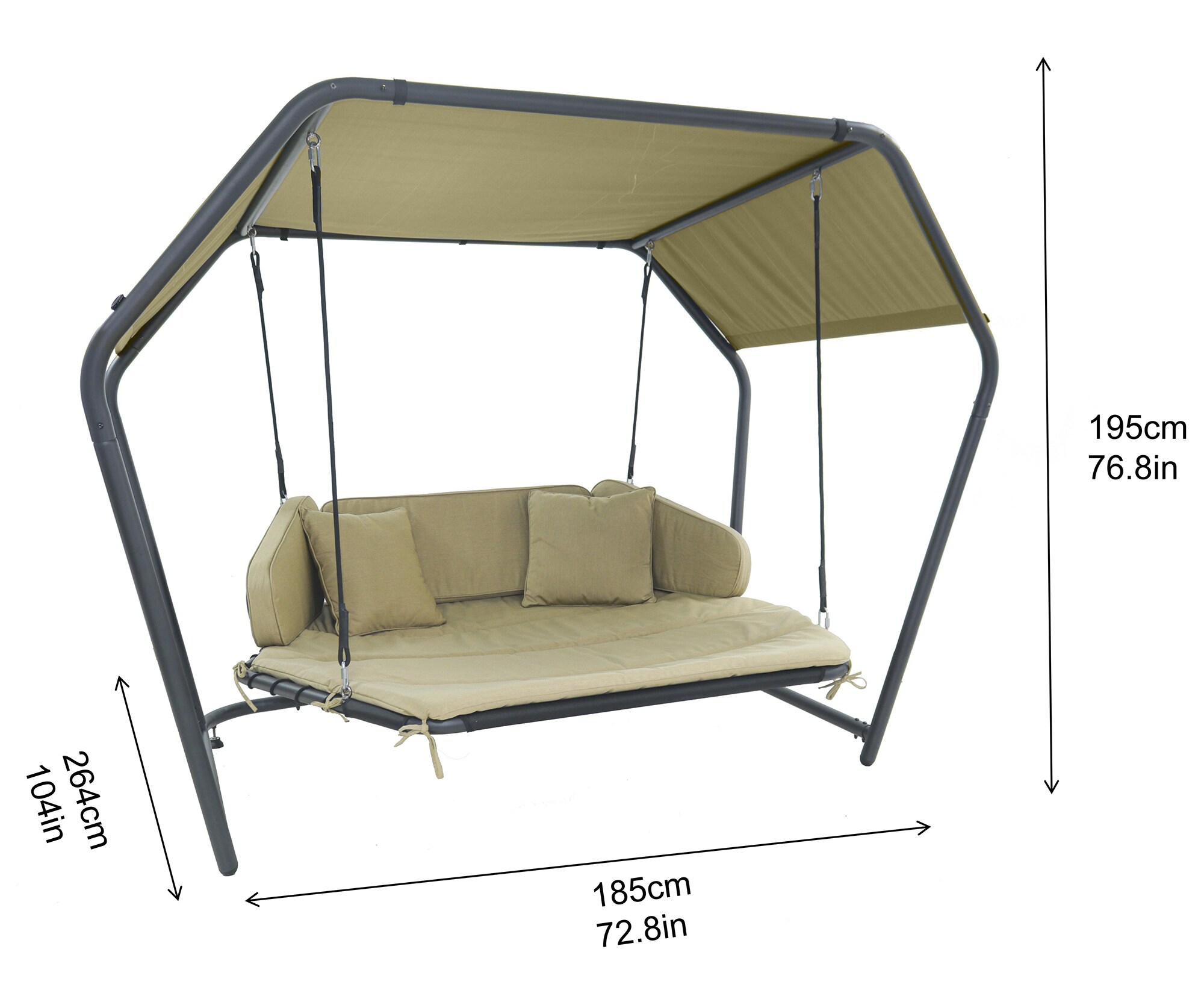 104"W x 73"L x 77"H (+/- 0.5 inch)