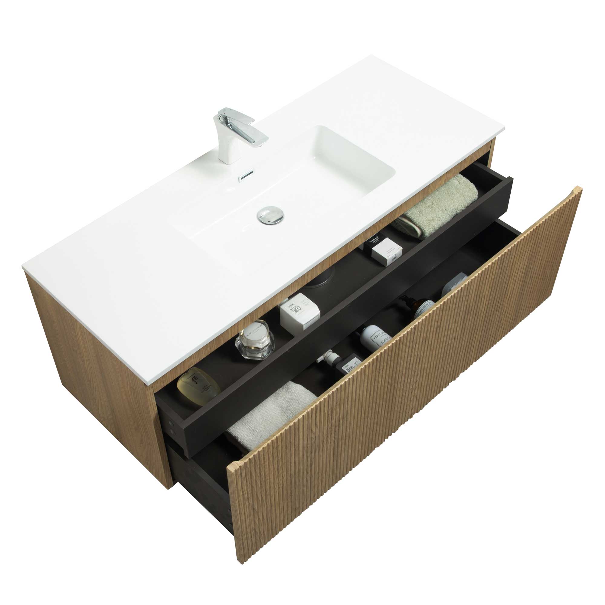 Integrated Stone Resin Sink Top with White Glossy Coating for Durability